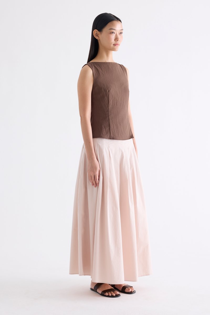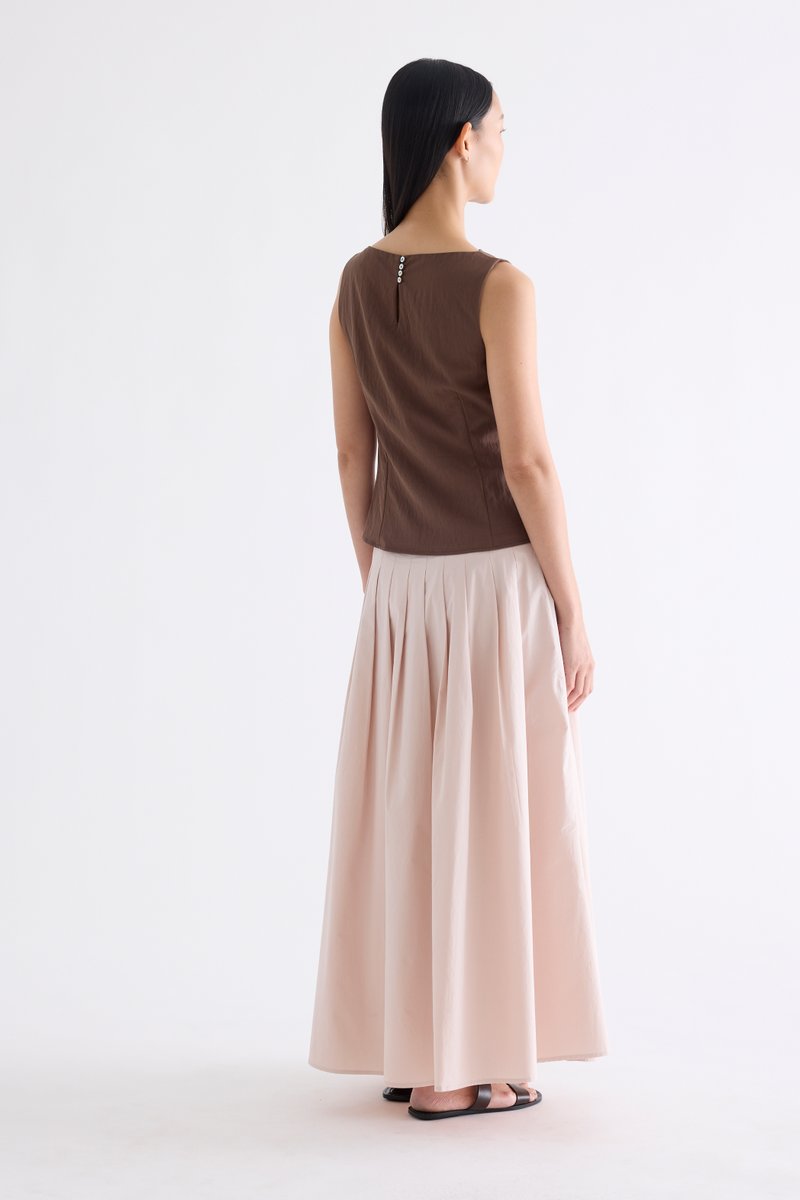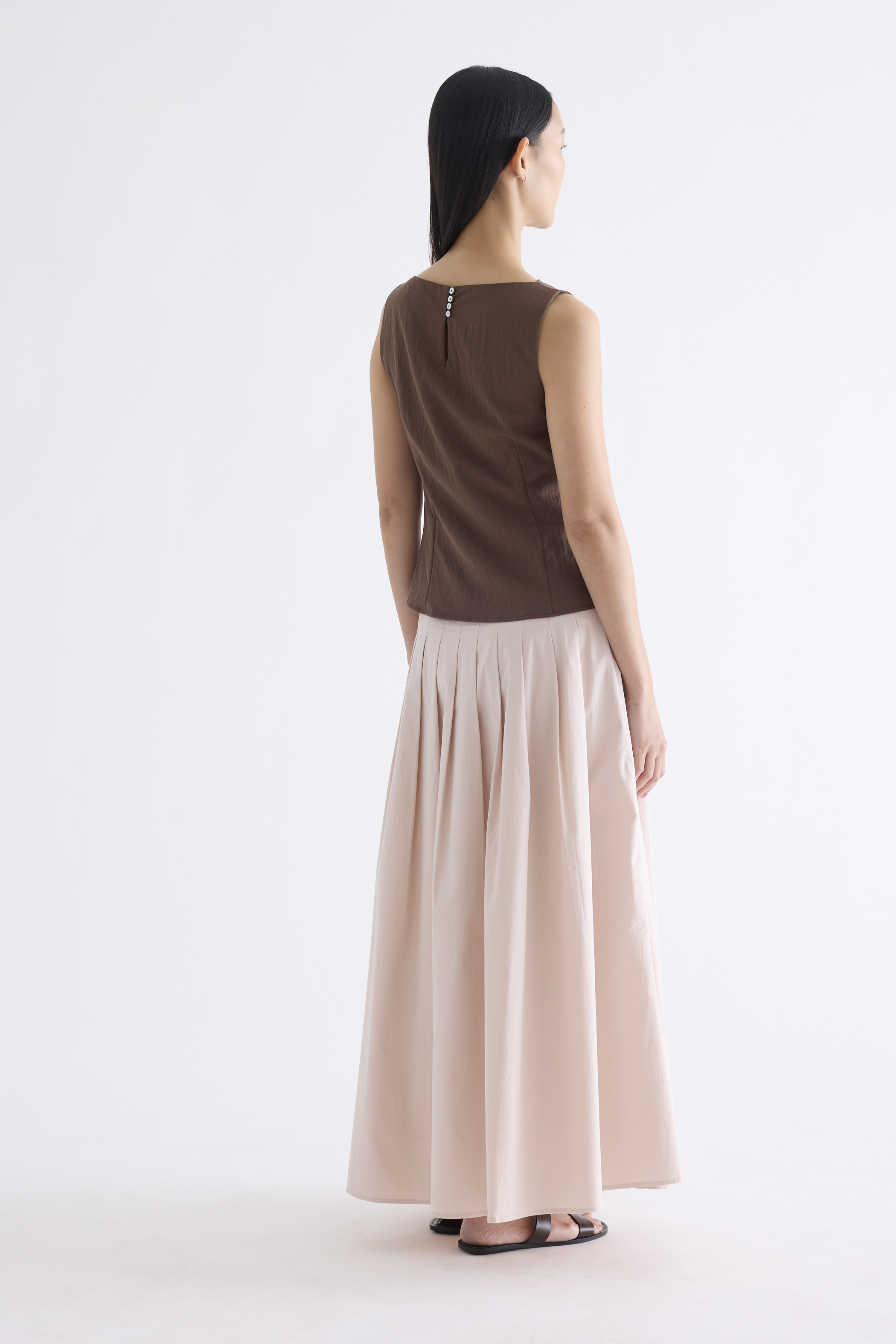 With an element of surprise. Made from smooth and softly structured fabric, this sleeveless tank features a boat neckline, panelled construction and buttoned keyhole opening at the back. Worn in a slim fit with a side zip closure.