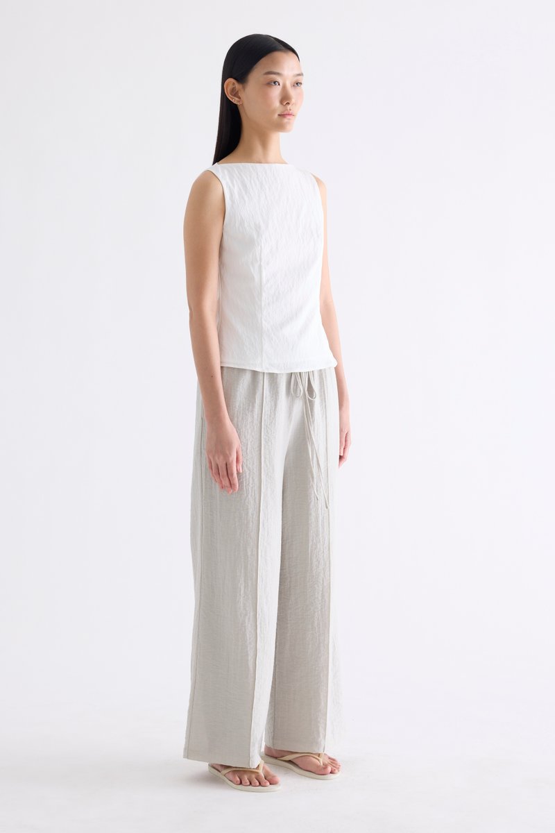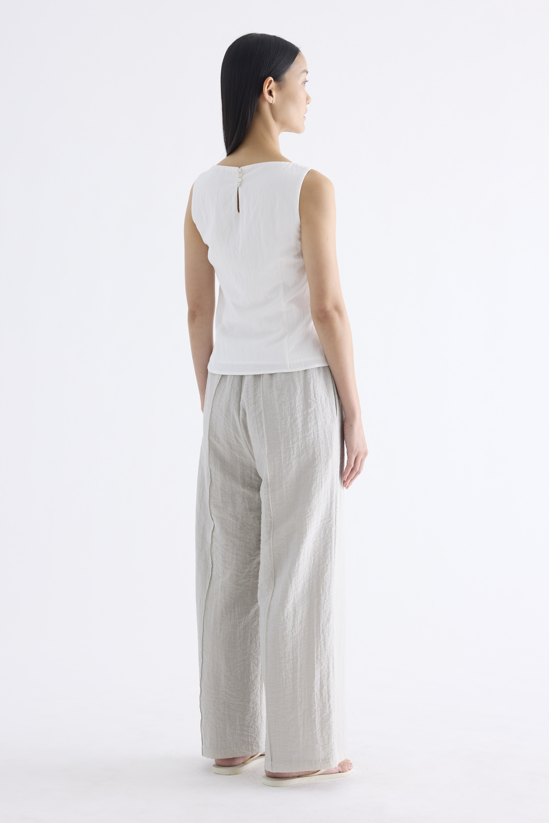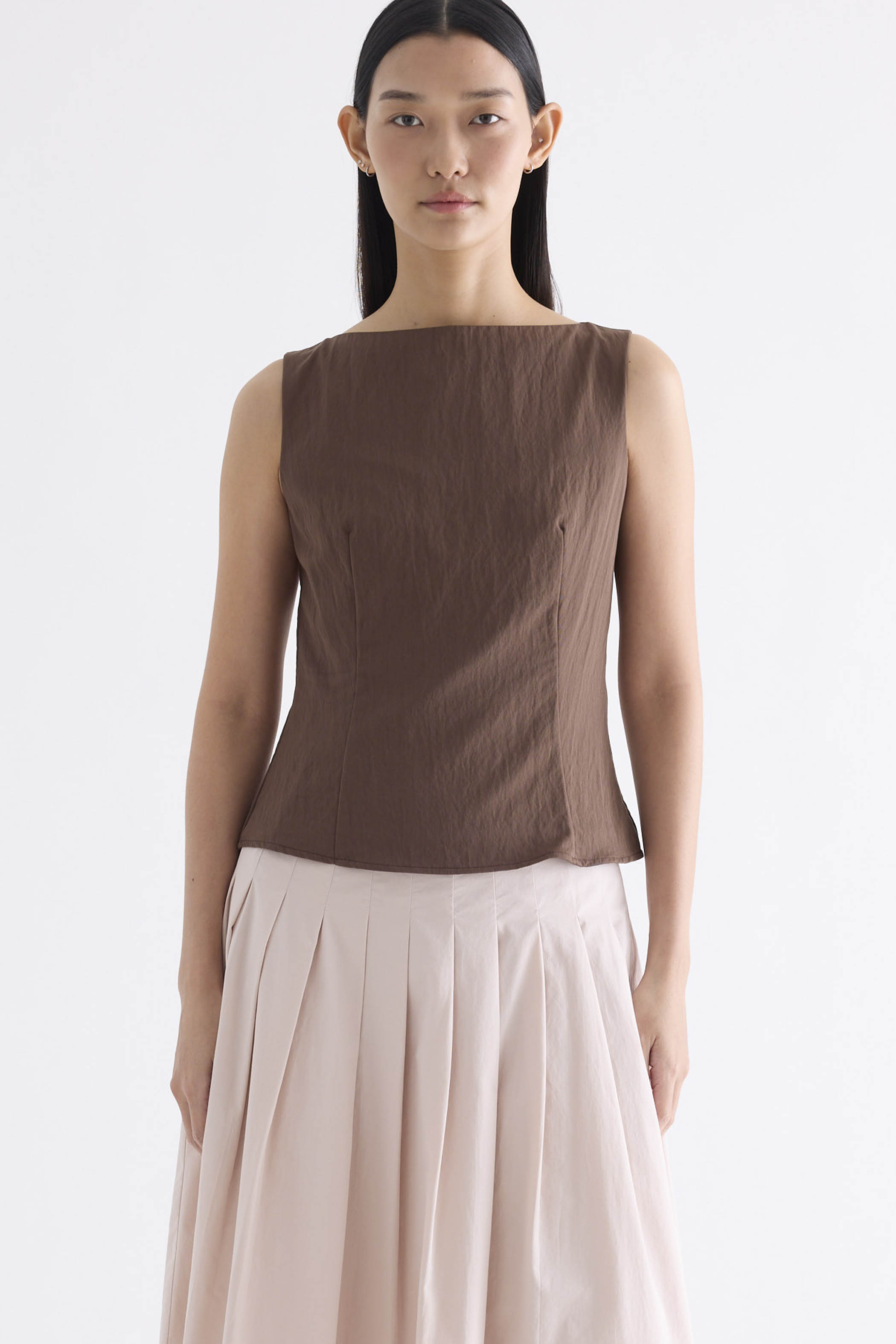 With an element of surprise. Made from smooth and softly structured fabric, this sleeveless tank features a boat neckline, panelled construction and buttoned keyhole opening at the back. Worn in a slim fit with a side zip closure.