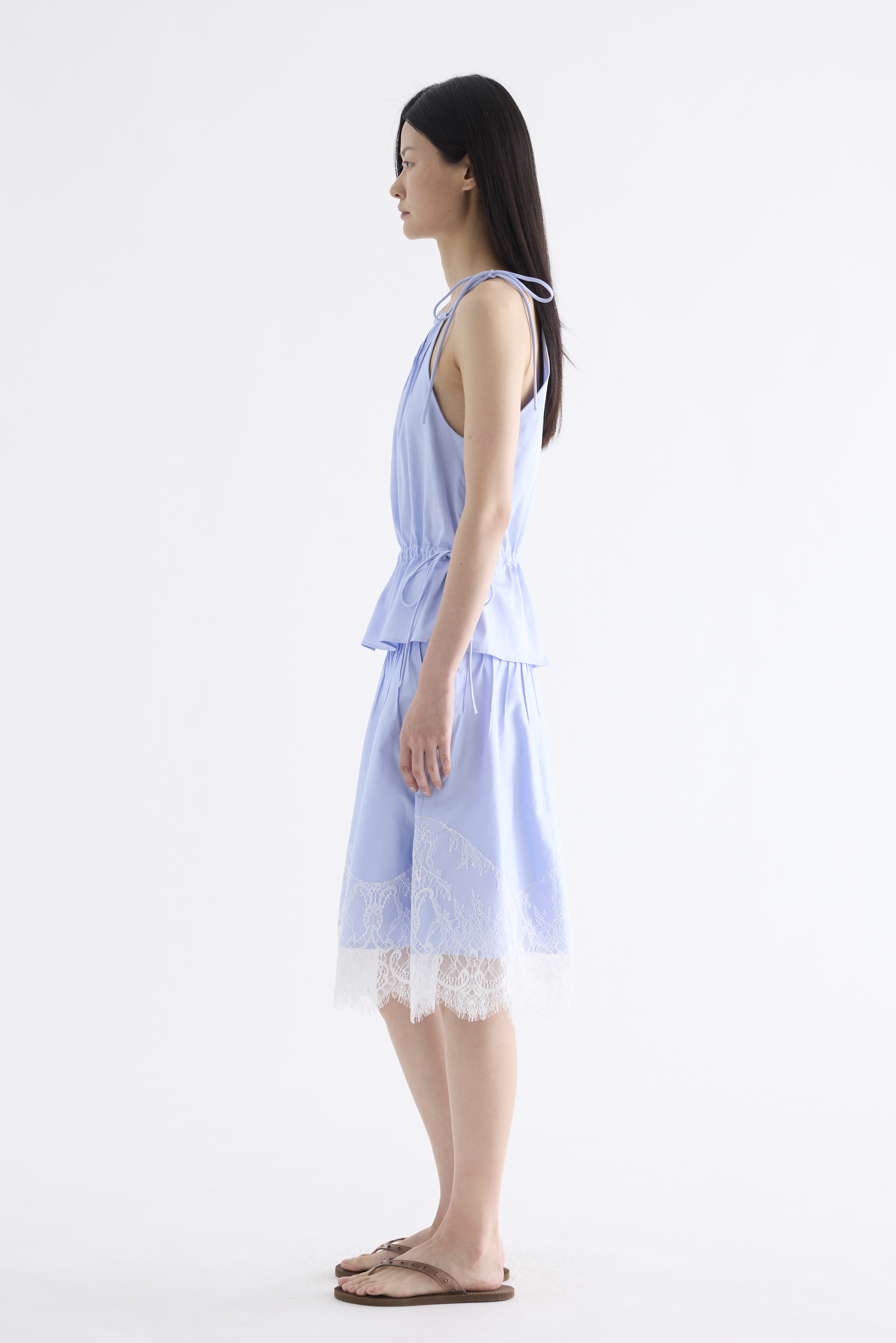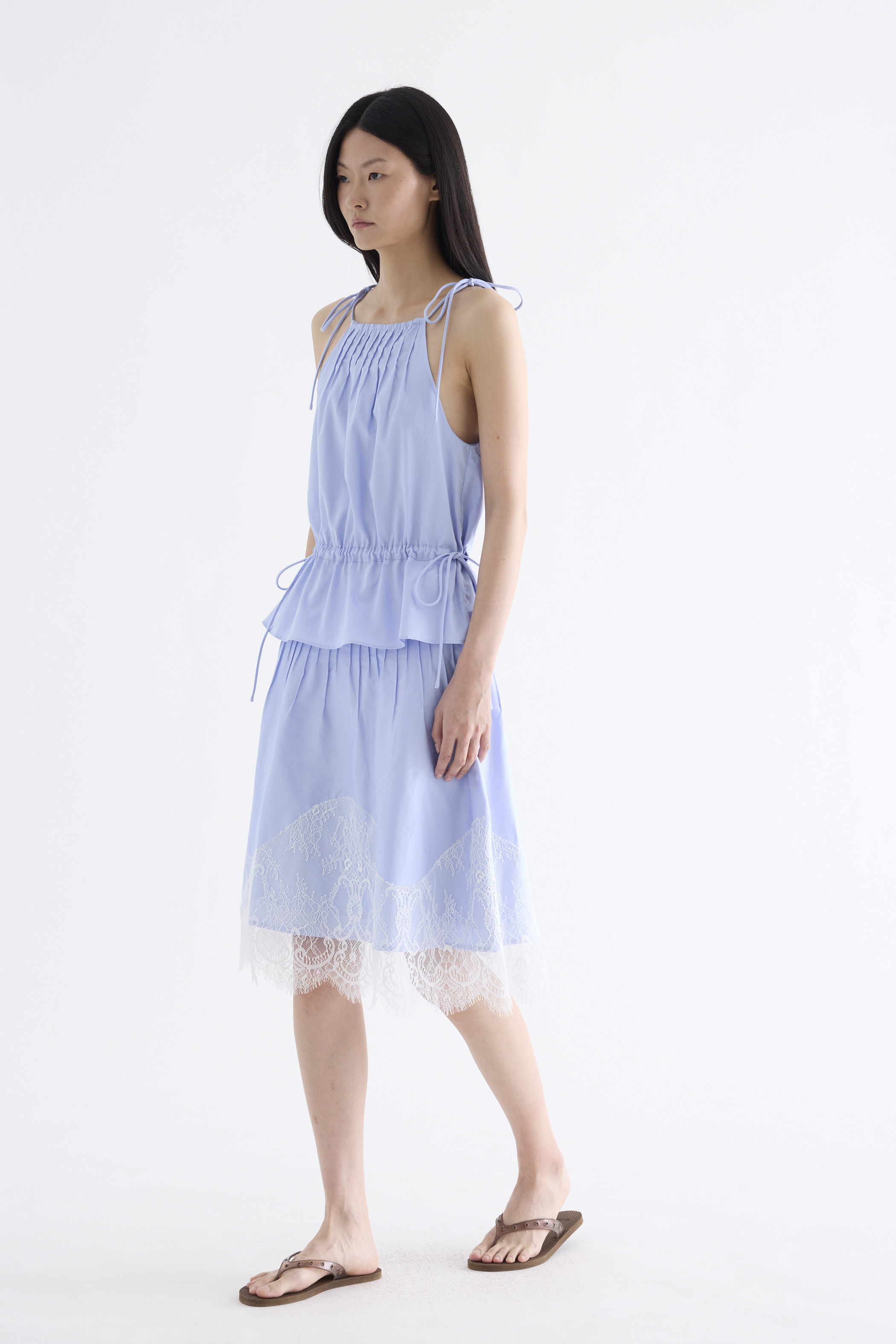 From the Postscript collection. Cut from soft and smooth cotton, this sleeveless top features an adjustable drawstring halter neckline, self-tying shoulder straps, front pleats and a statement back slit. Its fit is adjustable via a drawstring waist-tie.