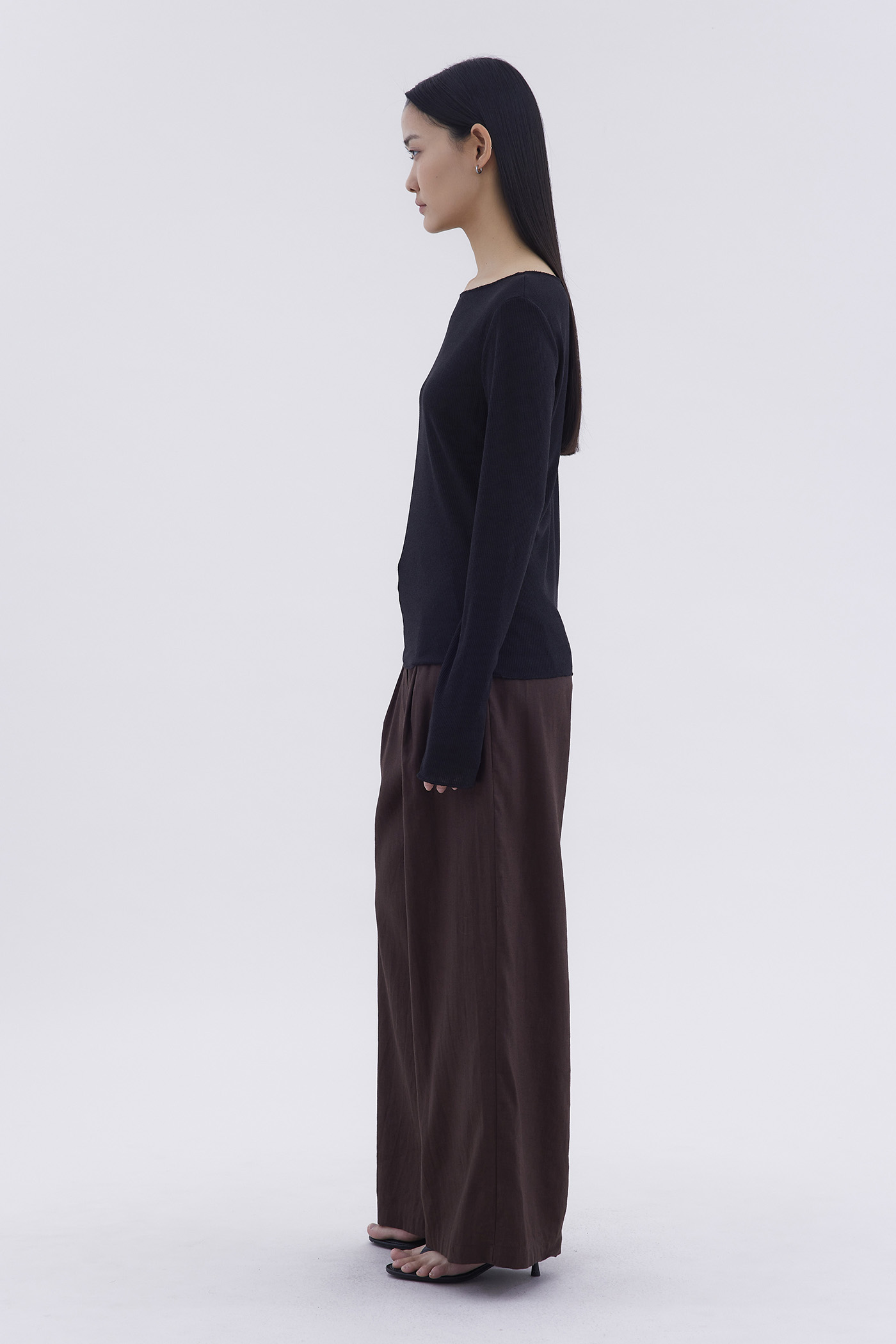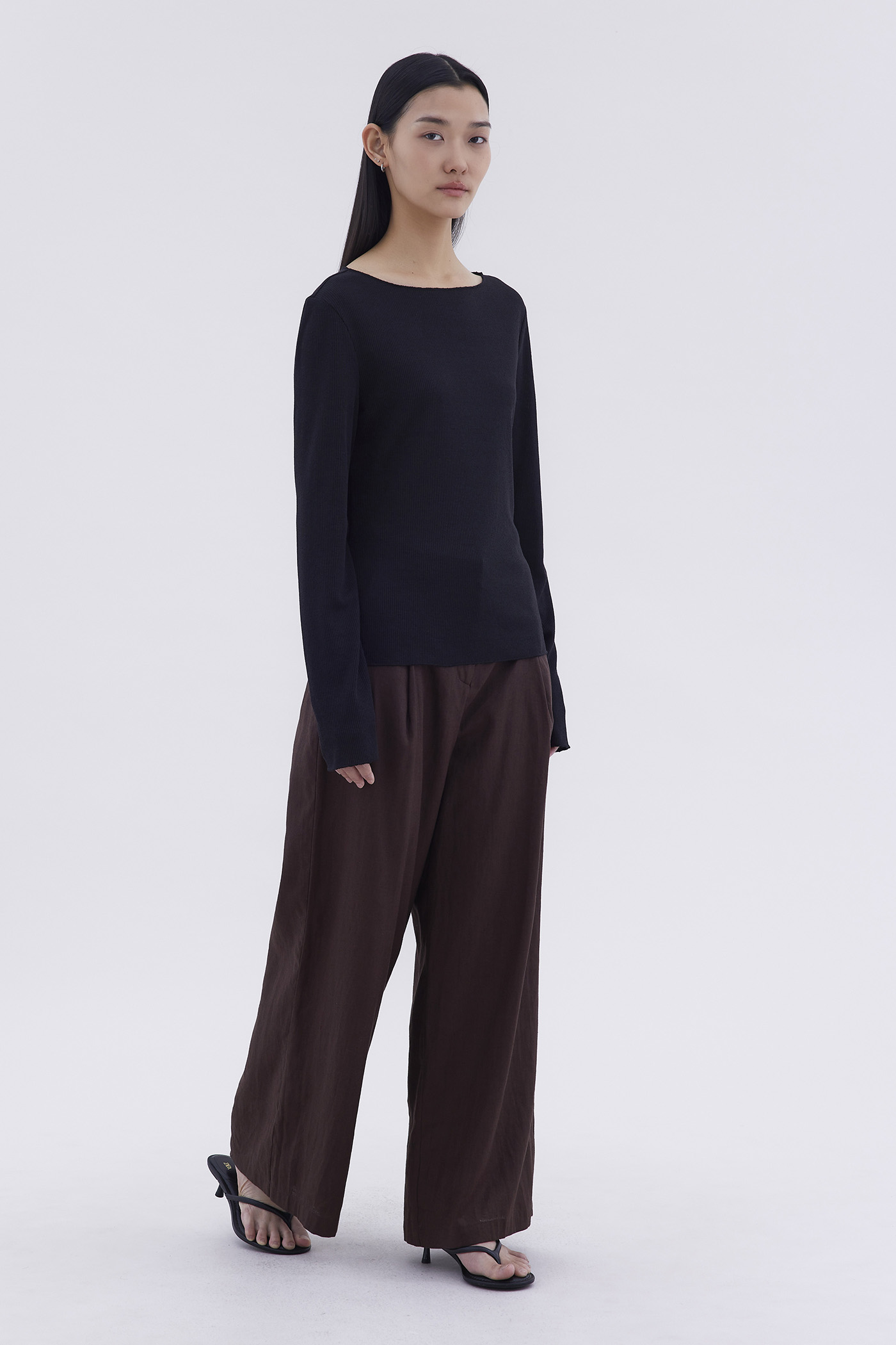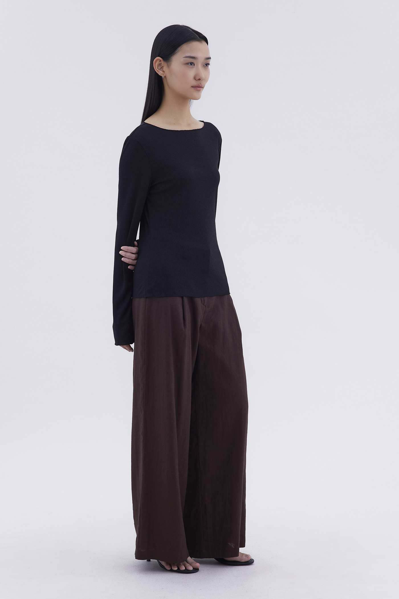 Sheer to impress. Made from soft and light fabric, this top features a wide neckline, long sleeves and a relaxed fit.
