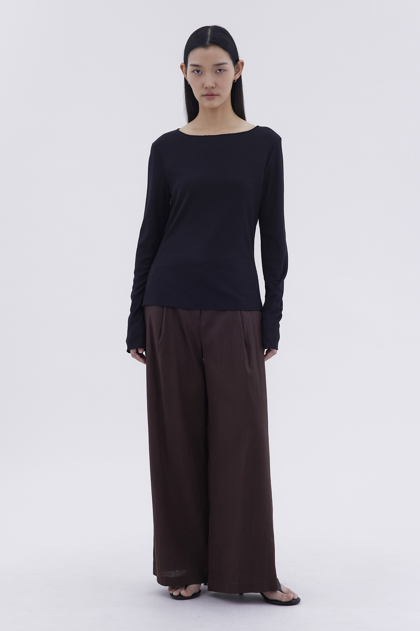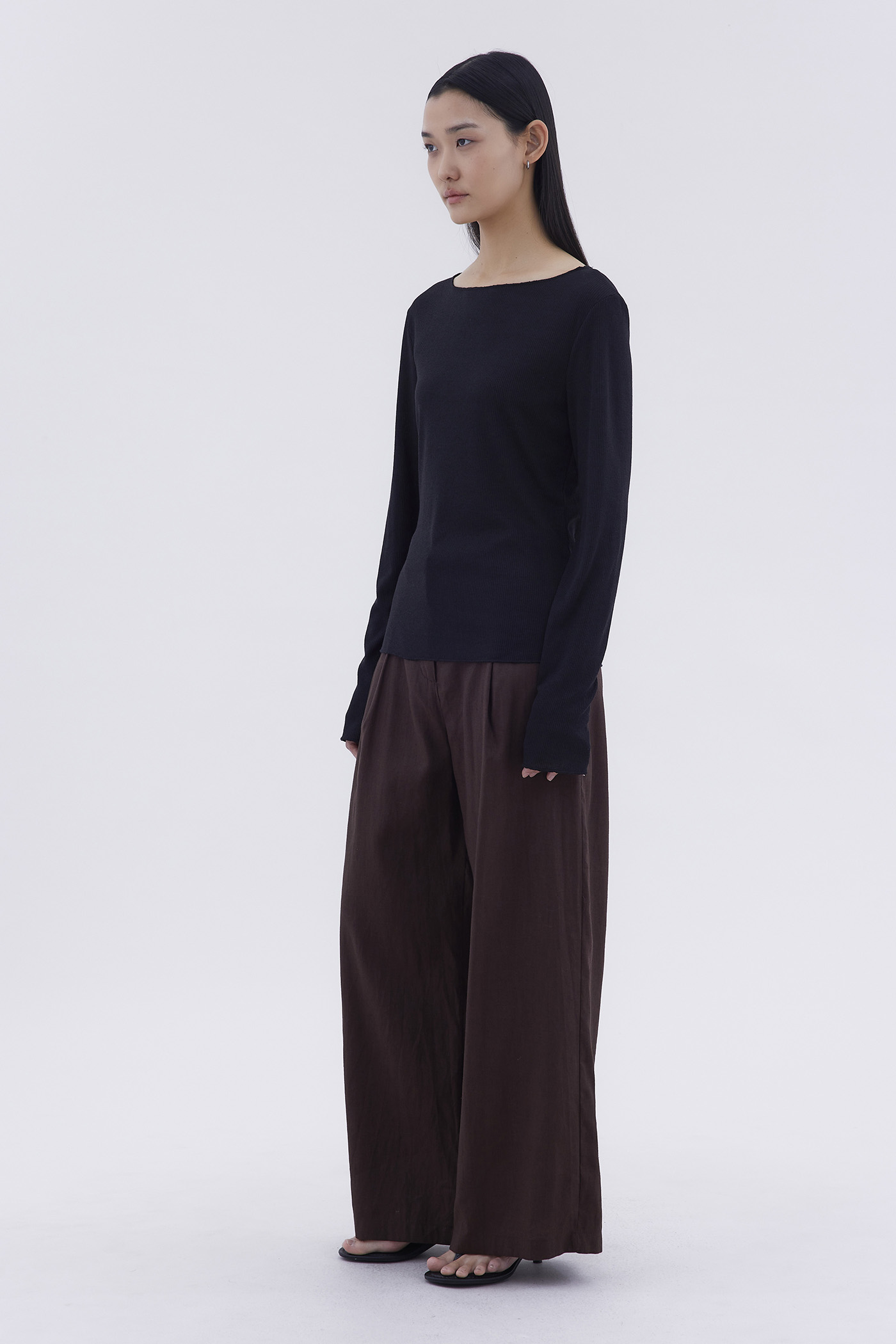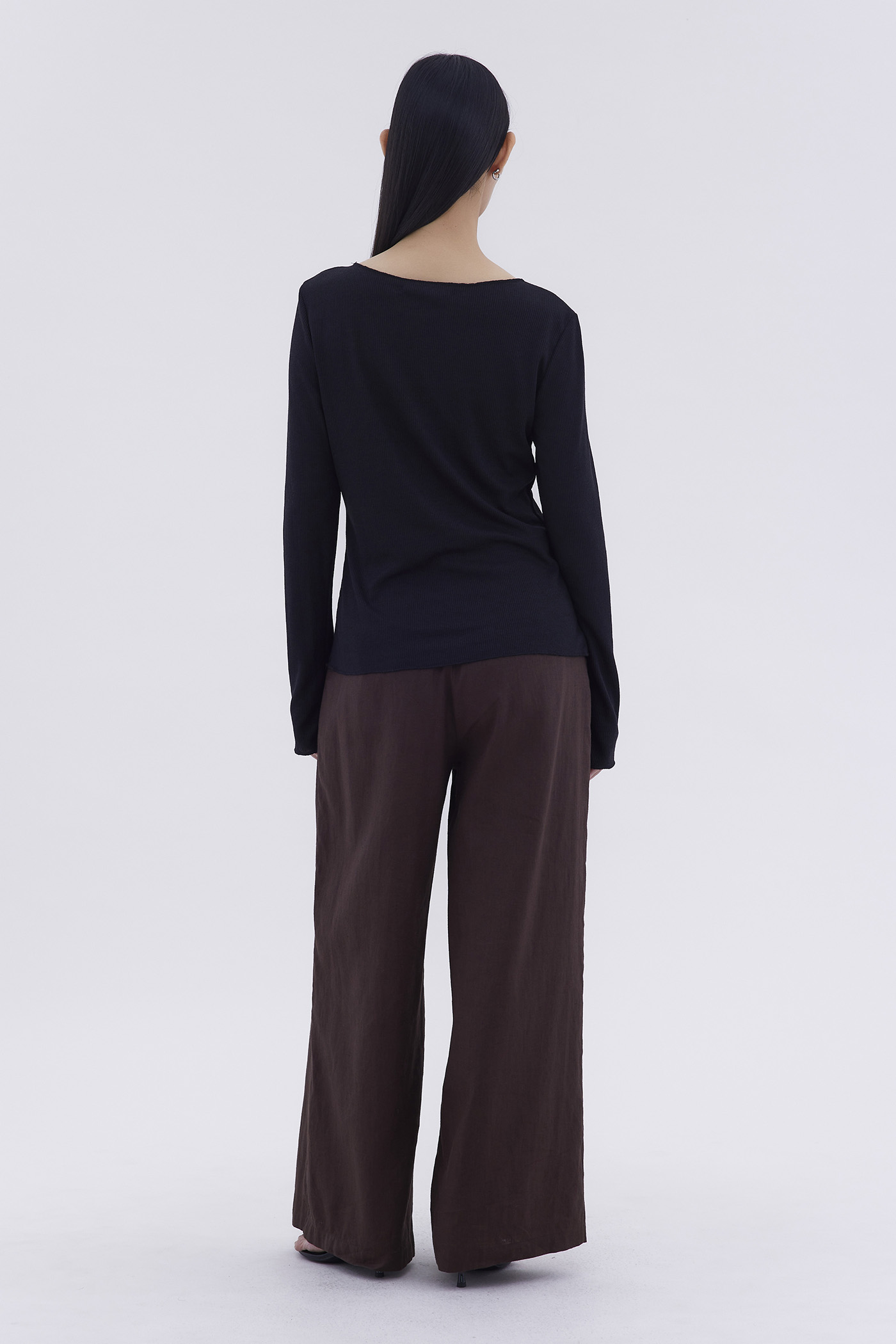 Sheer to impress. Made from soft and light fabric, this top features a wide neckline, long sleeves and a relaxed fit.
