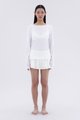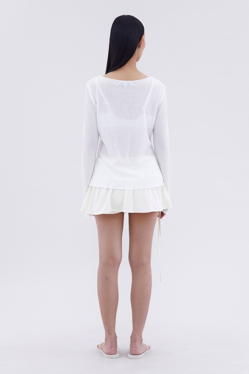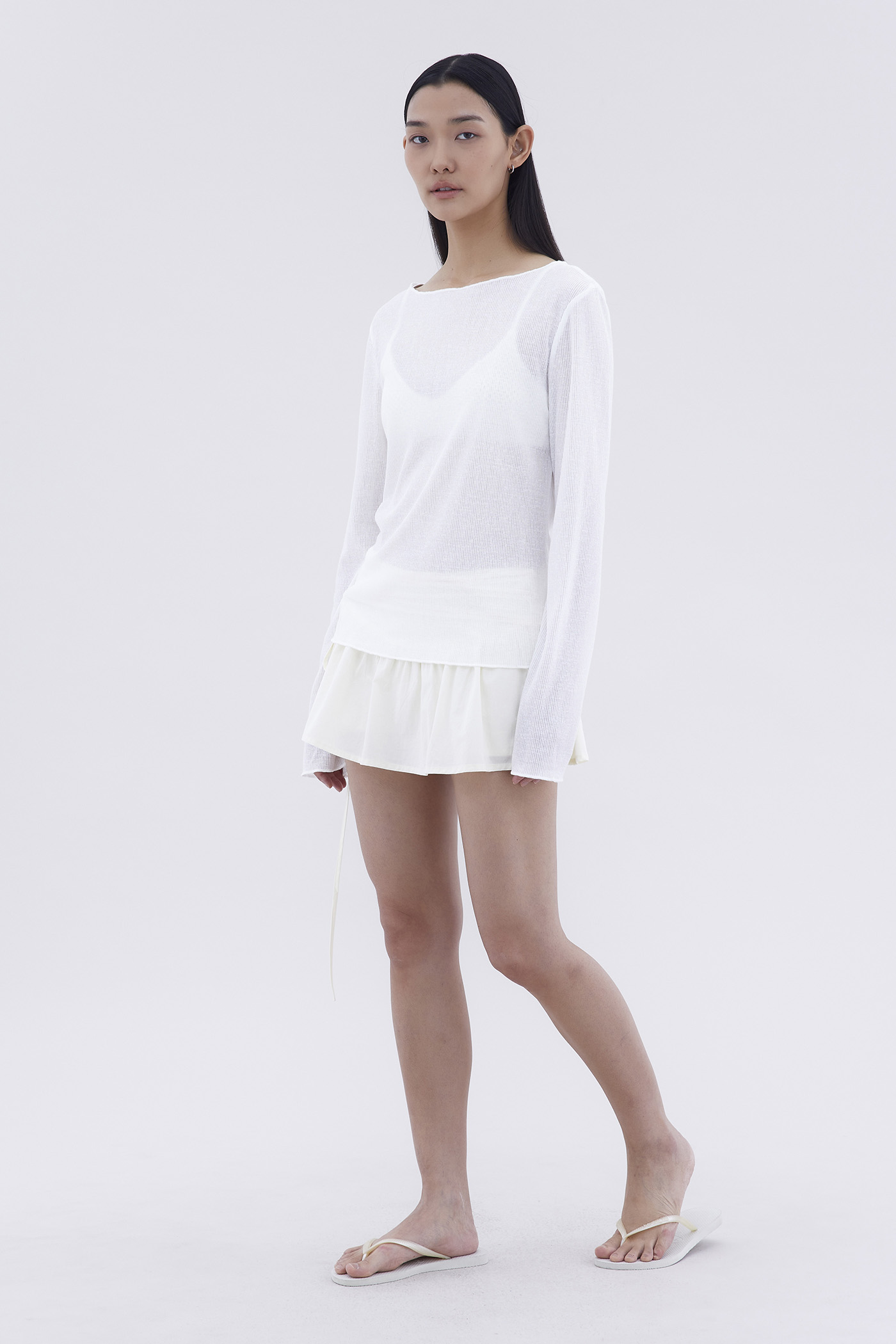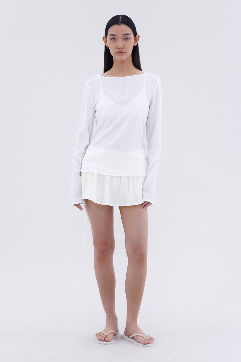 Sheer to impress. Made from soft and light fabric, this top features a wide neckline, long sleeves and a relaxed fit.