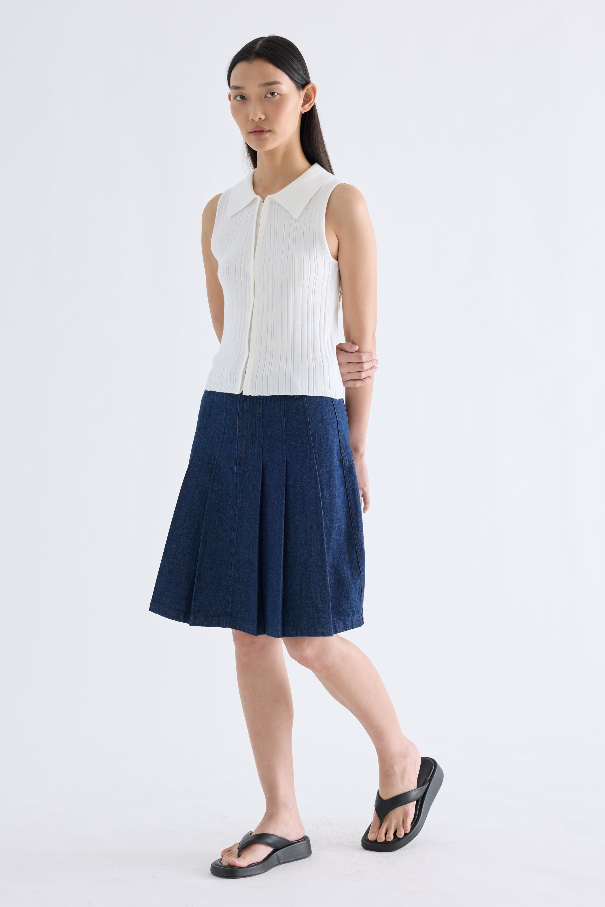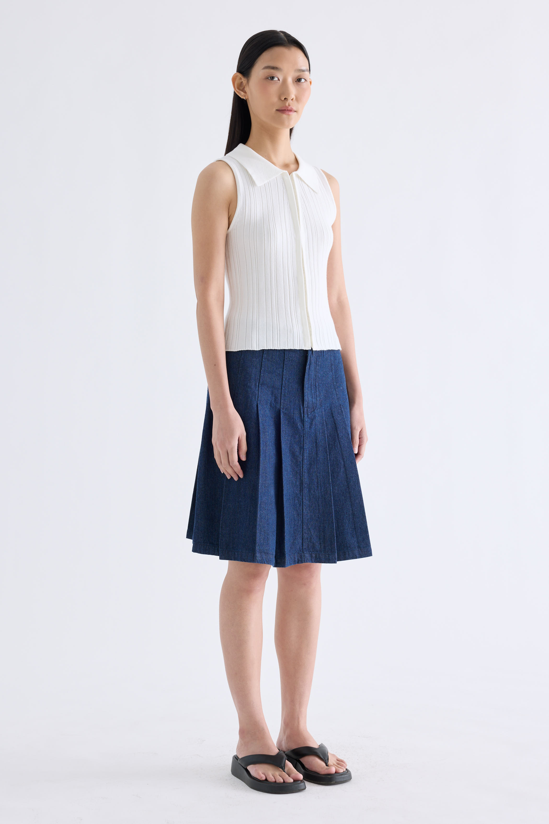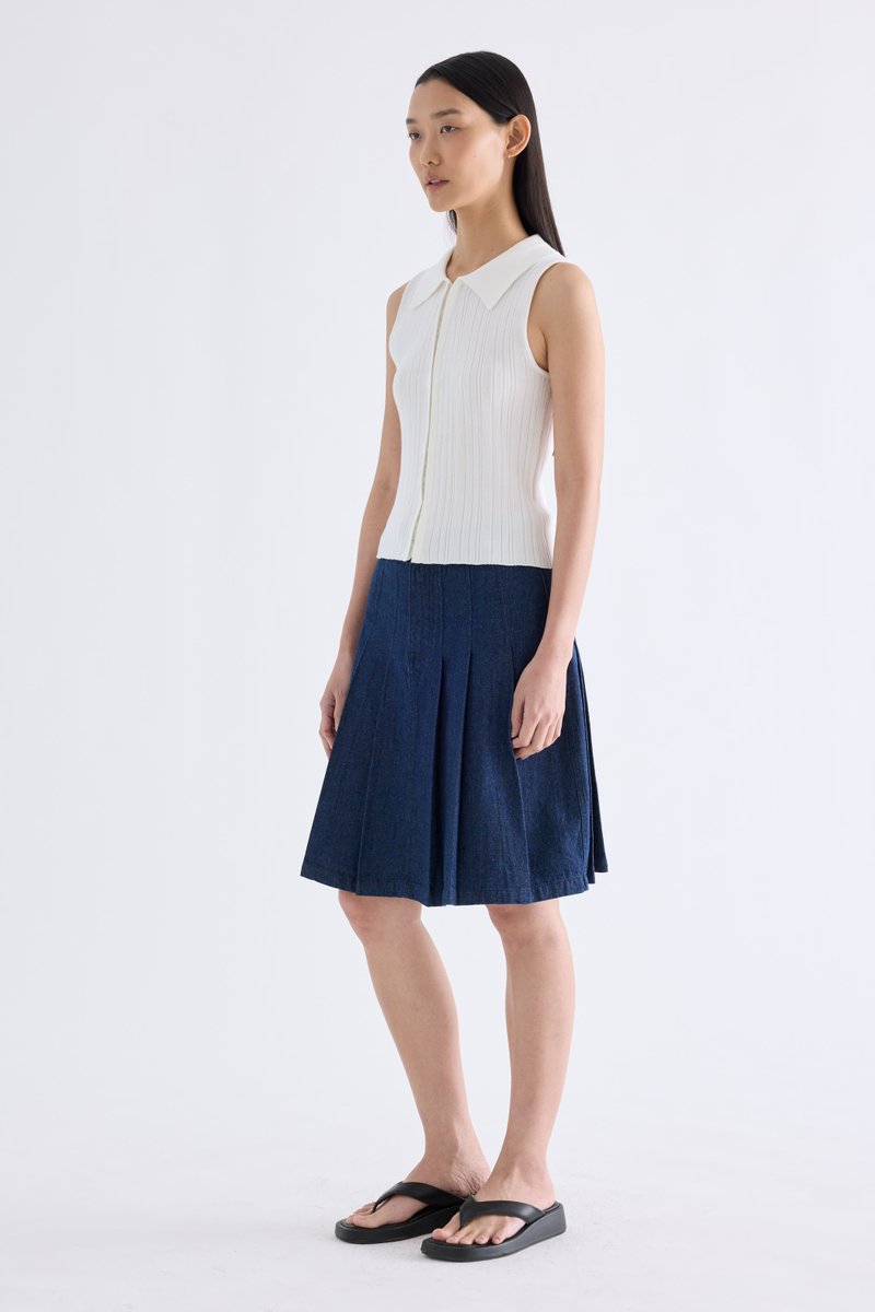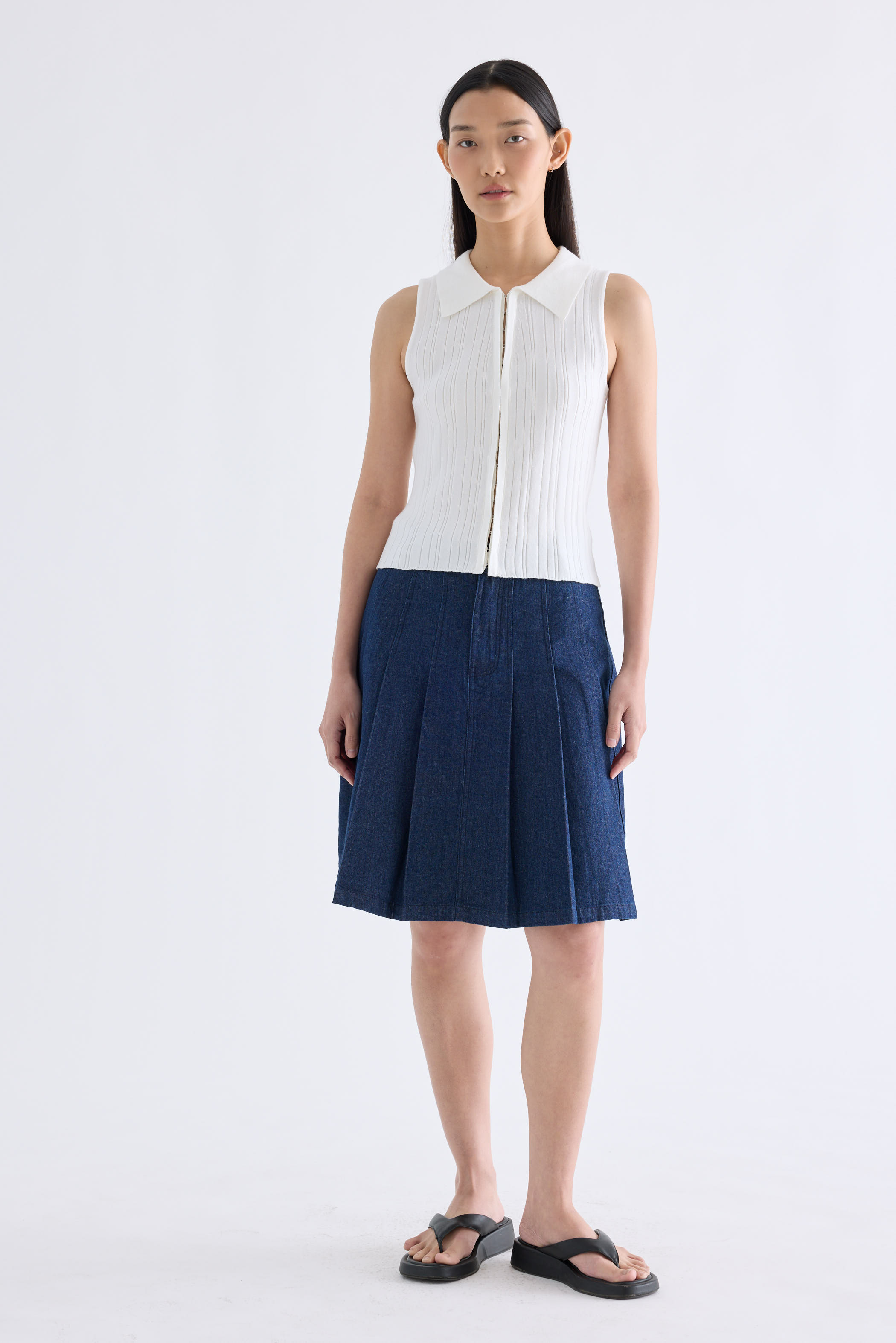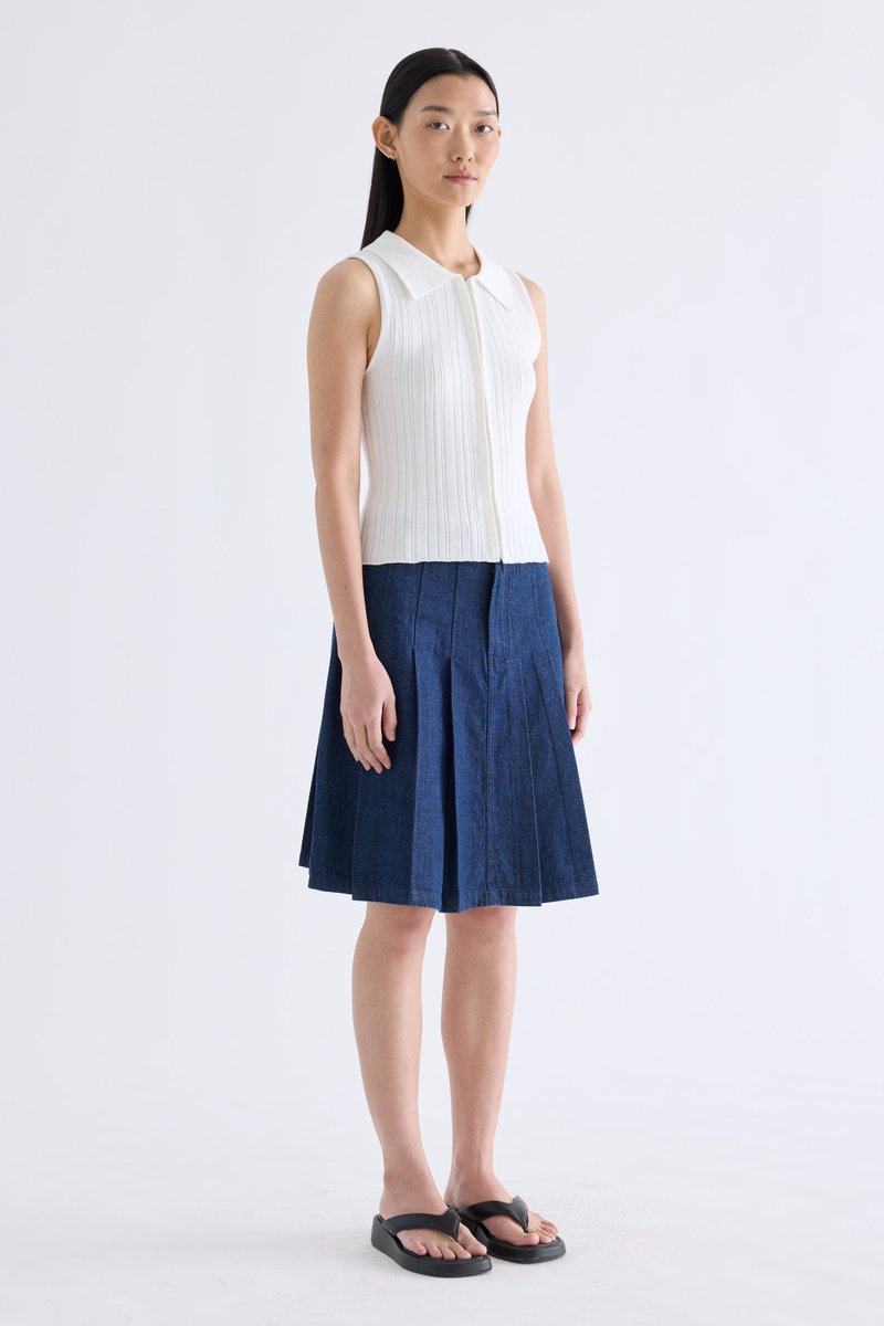 Cosy. Made from soft and ribbed knit, this sleeveless tank features a collared neckline and front hook-and-eye closures. Worn in a slim fit.