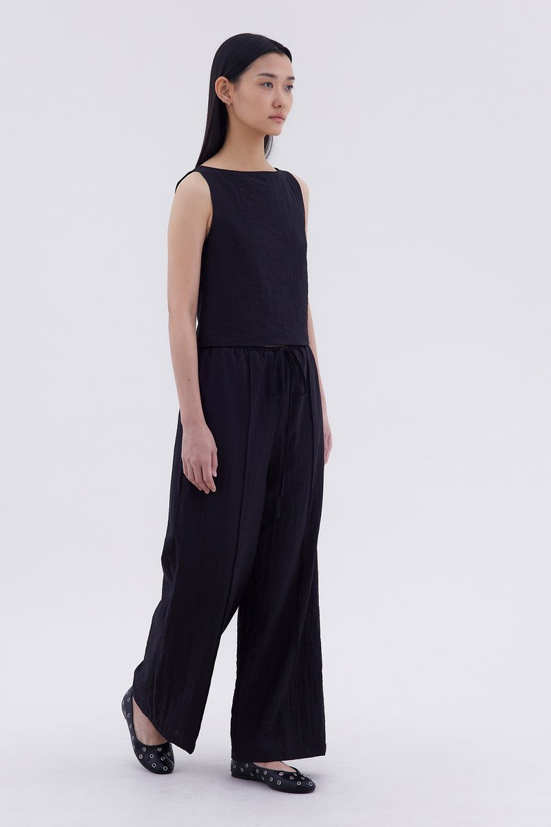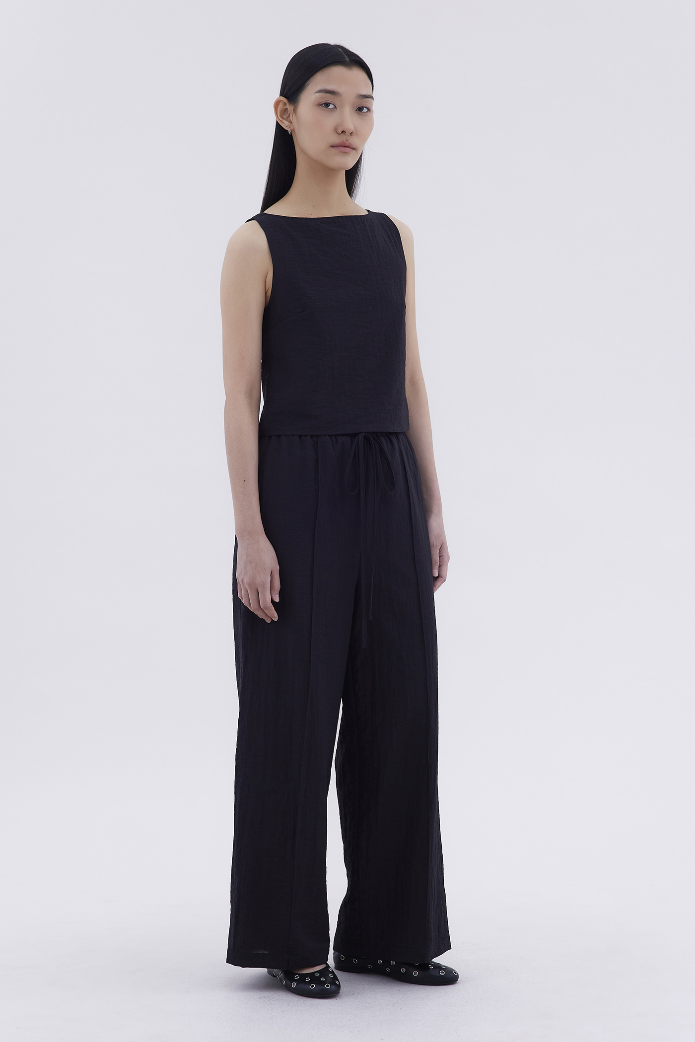 Less is more. Made from light and textured fabric, this sleeveless top features a boat neckline and side buttons. Worn in a relaxed, boxy fit.