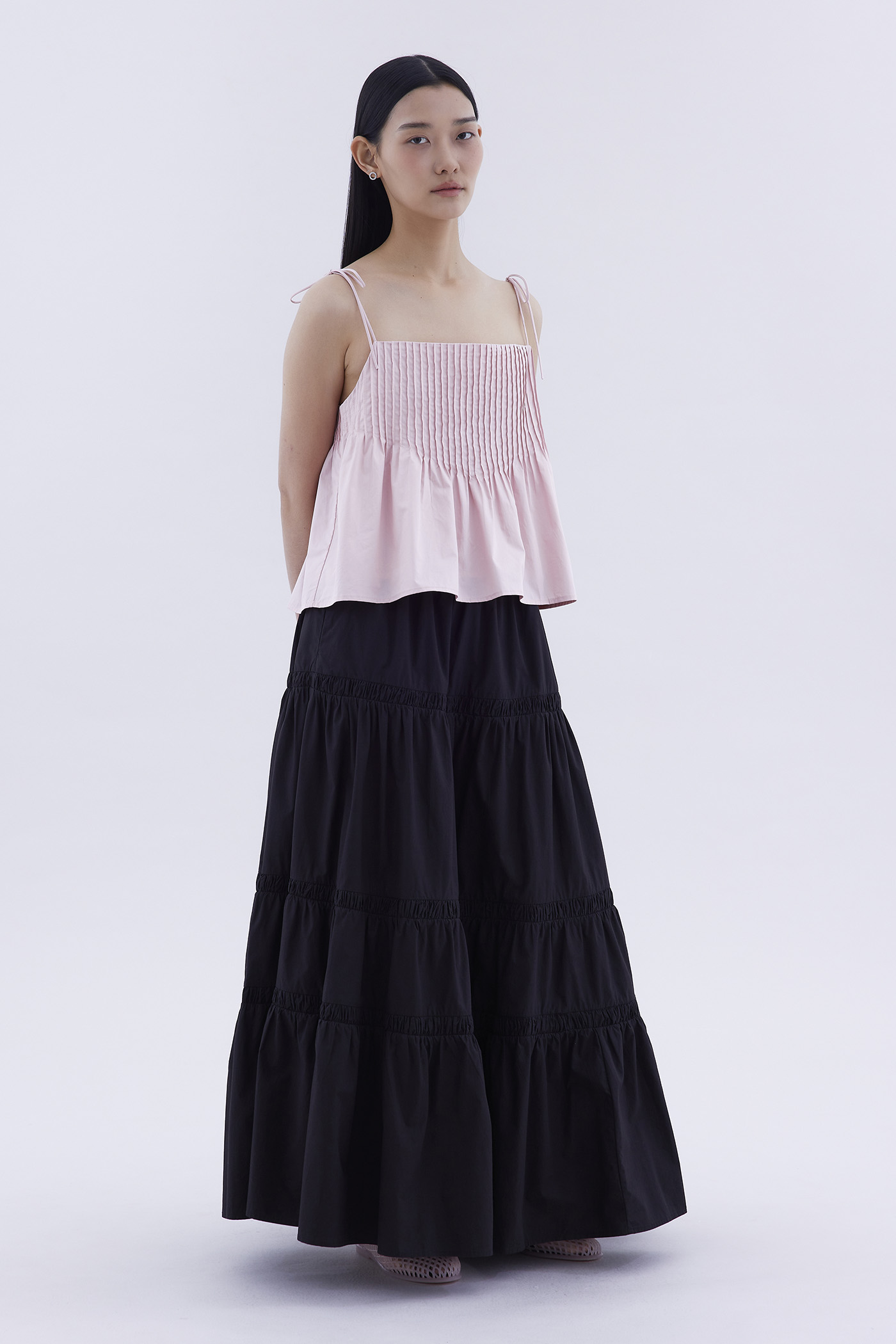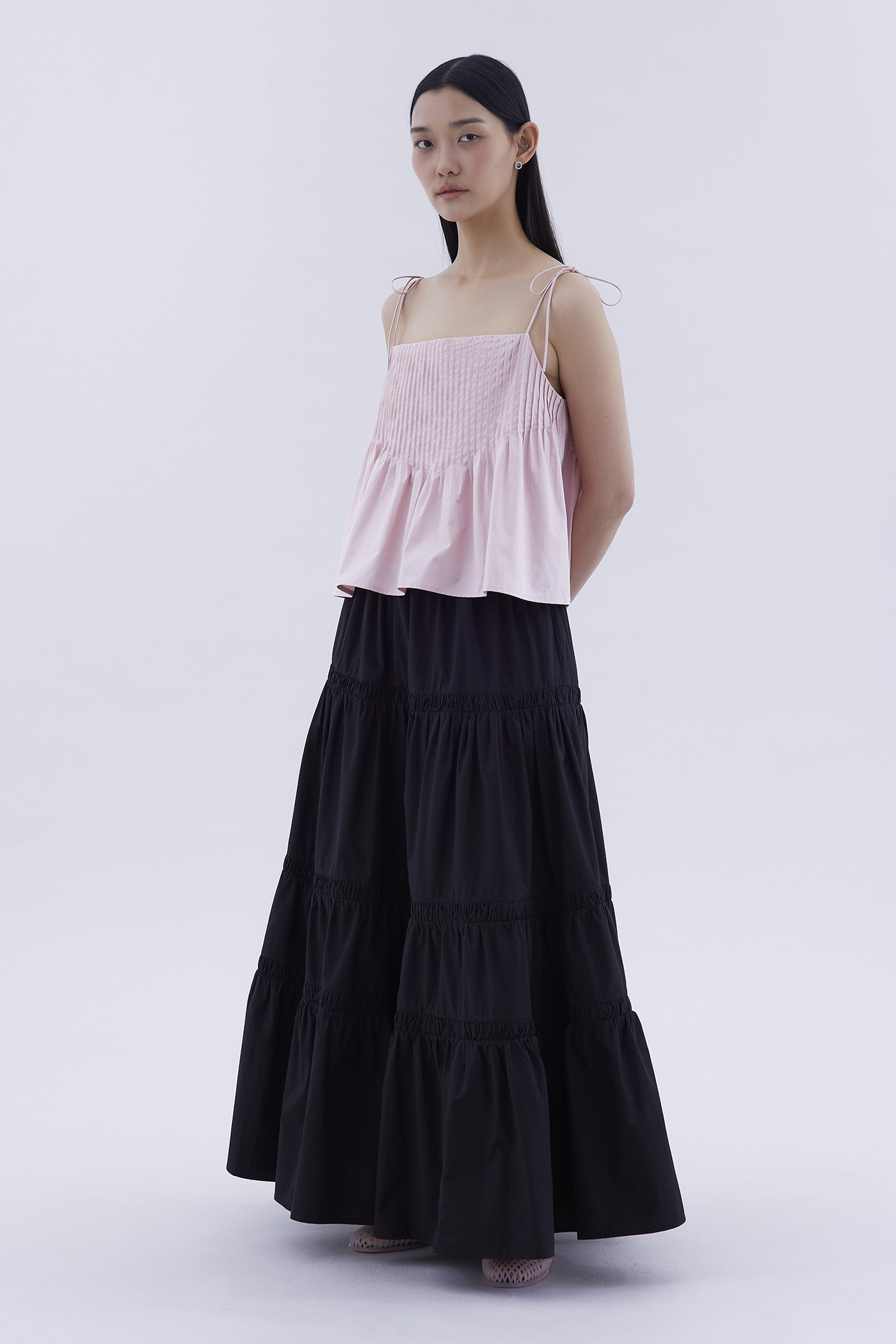 Tactile. Made from light and crisp cotton, this sleeveless top features pin-tuck pleats, a straight neckline and slim self-tying shoulder straps. Worn in a relaxed fit.
