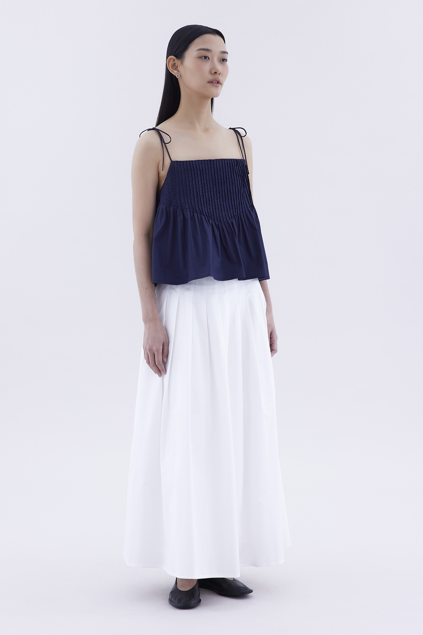 Tactile. Made from light and crisp cotton, this sleeveless top features pin-tuck pleats, a straight neckline and slim self-tying shoulder straps. Worn in a relaxed fit.