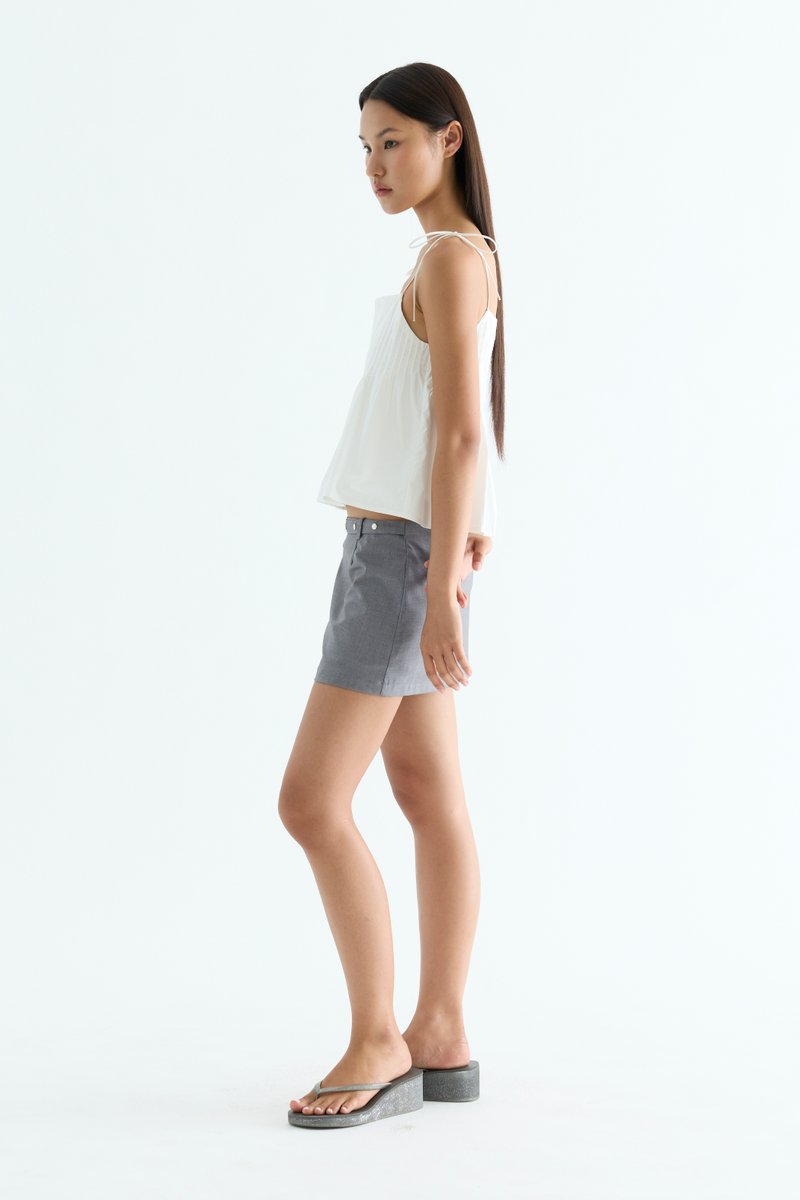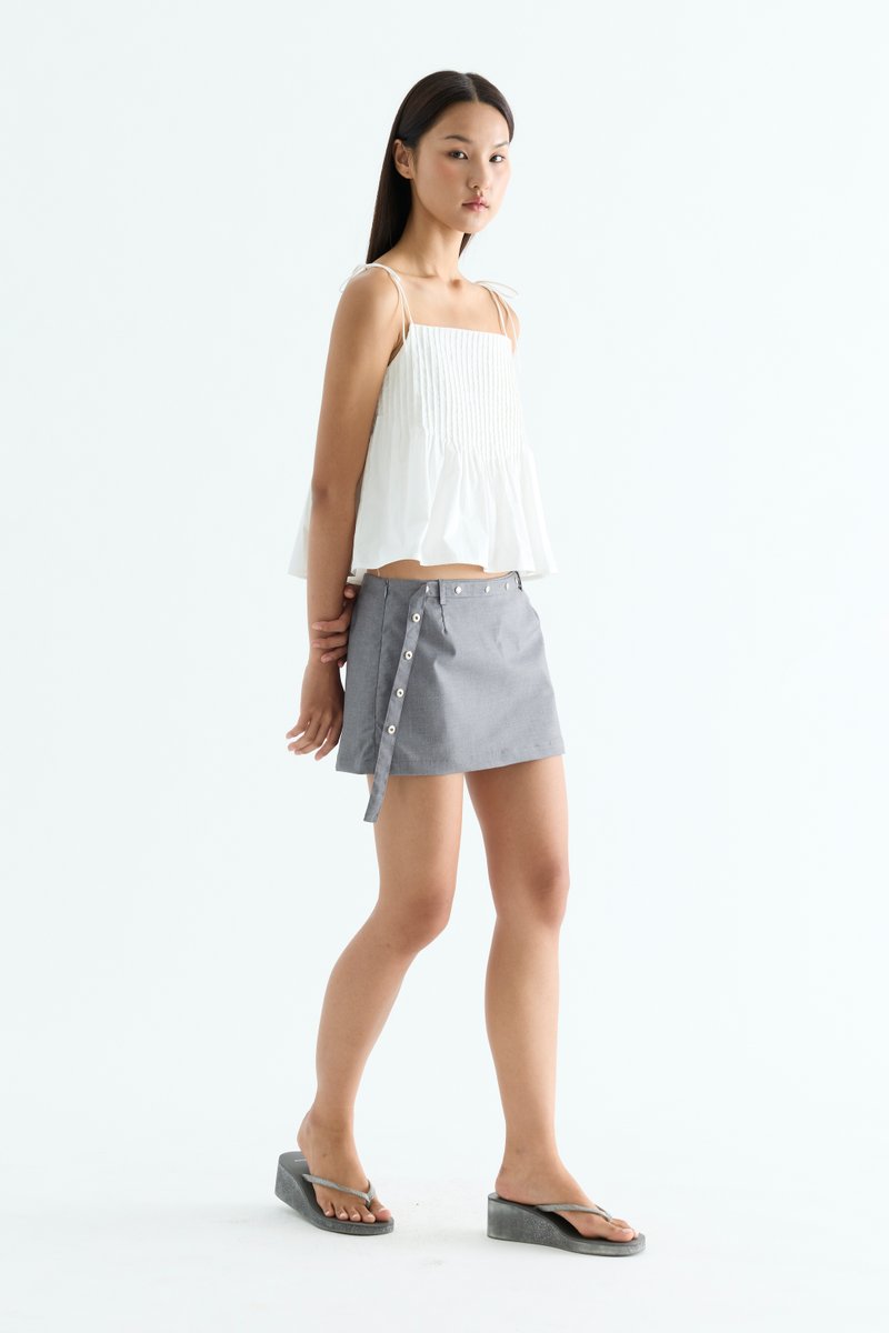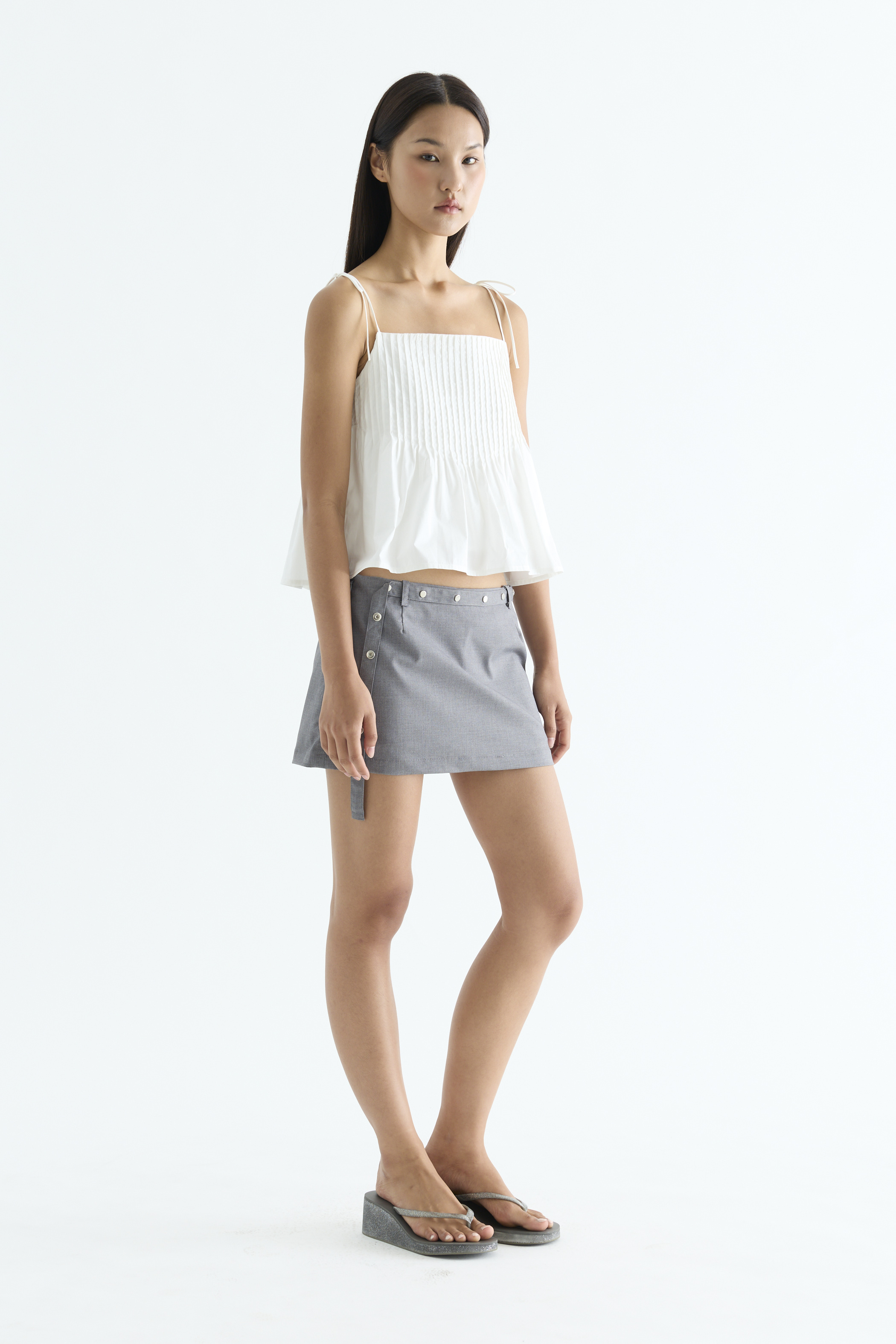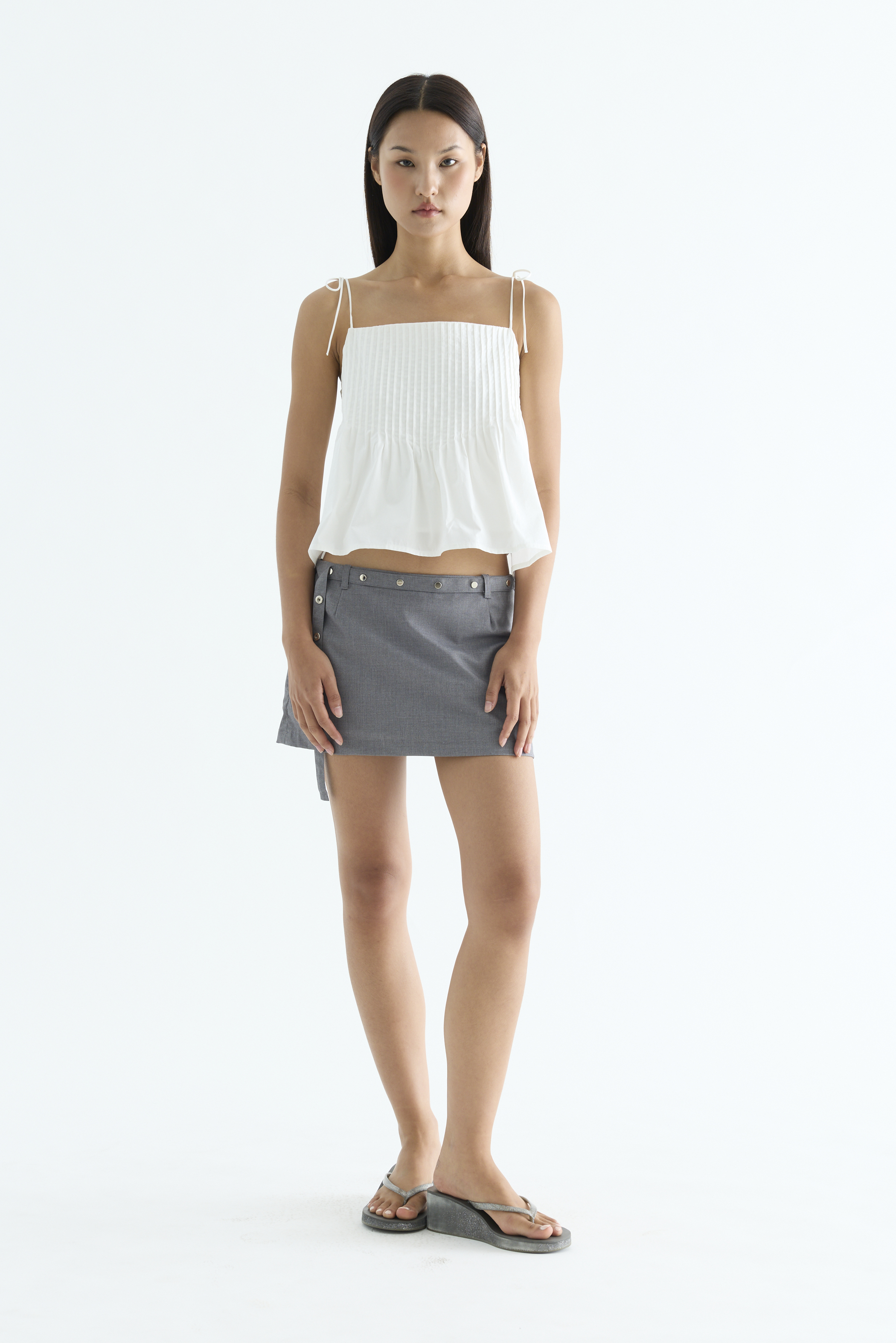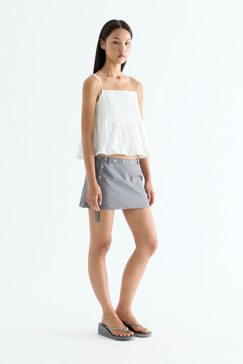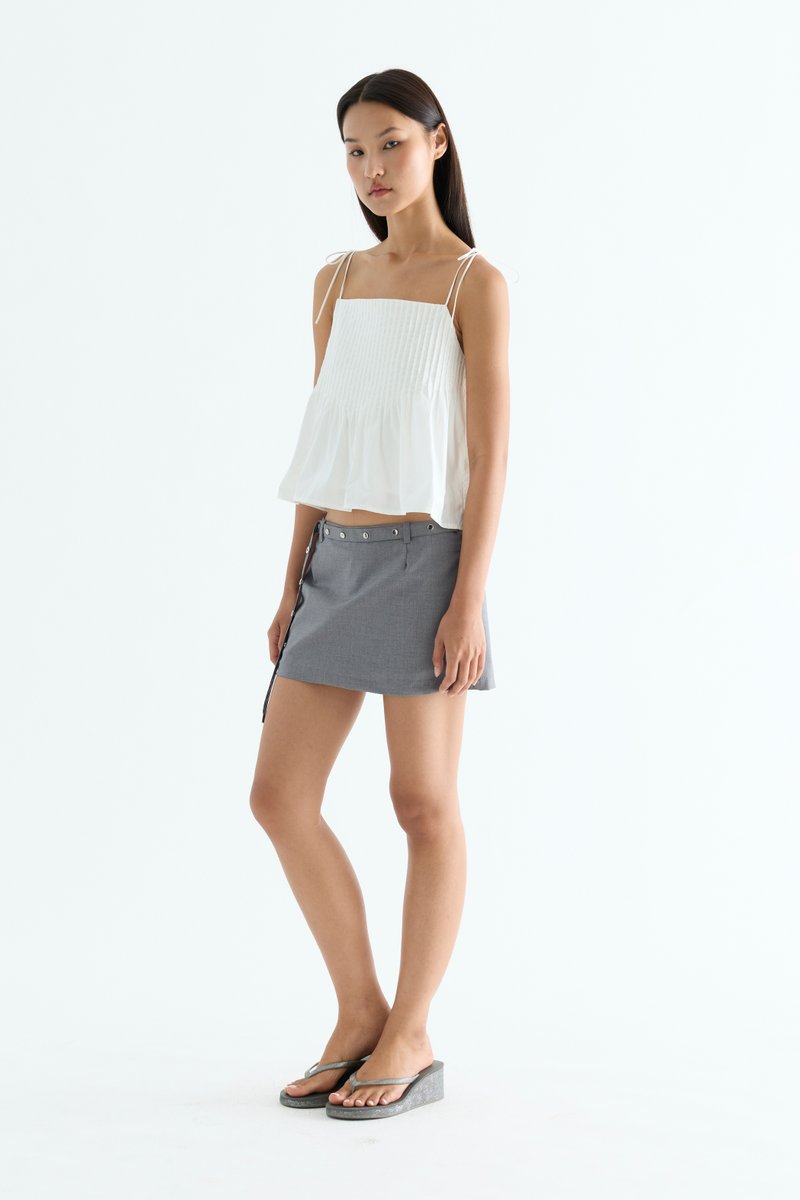 Tactile. Made from light and crisp cotton, this sleeveless top features pin-tuck pleats, a straight neckline and slim self-tying shoulder straps. Worn in a relaxed fit.