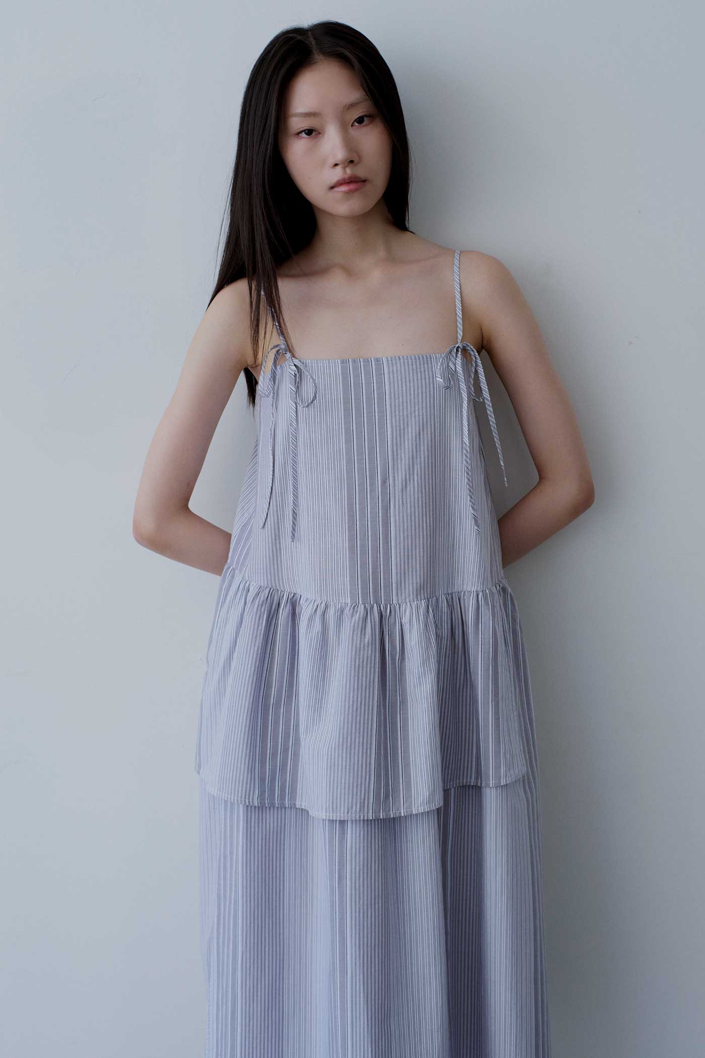 Made from light and airy cotton, this sleeveless dress features self-tying shoulder straps, a straight neckline, an elasticated back, as well as decorative waist and skirt overlays. Fits relaxed in a midi length.