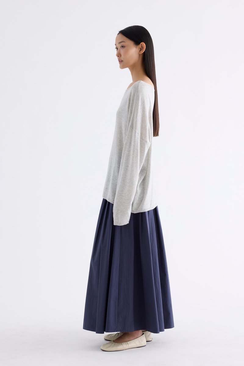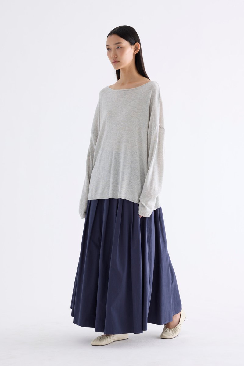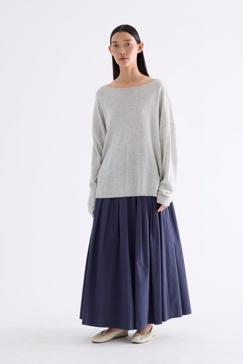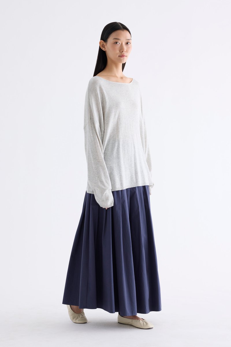 Get cosy. Made from soft and smooth knit, this top features long sleeves, dropped shoulders and a wide neckline. Fits relaxed and oversized.