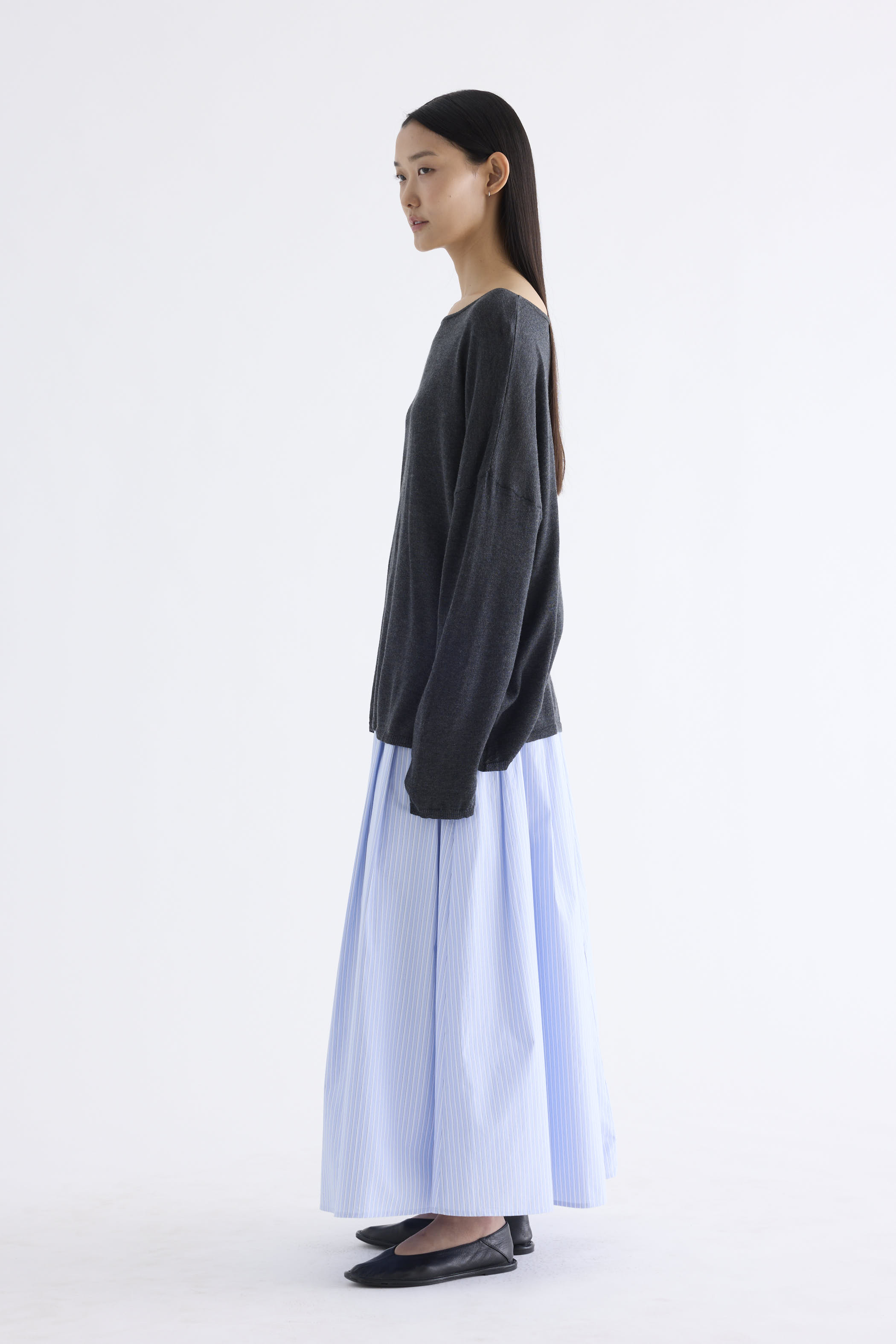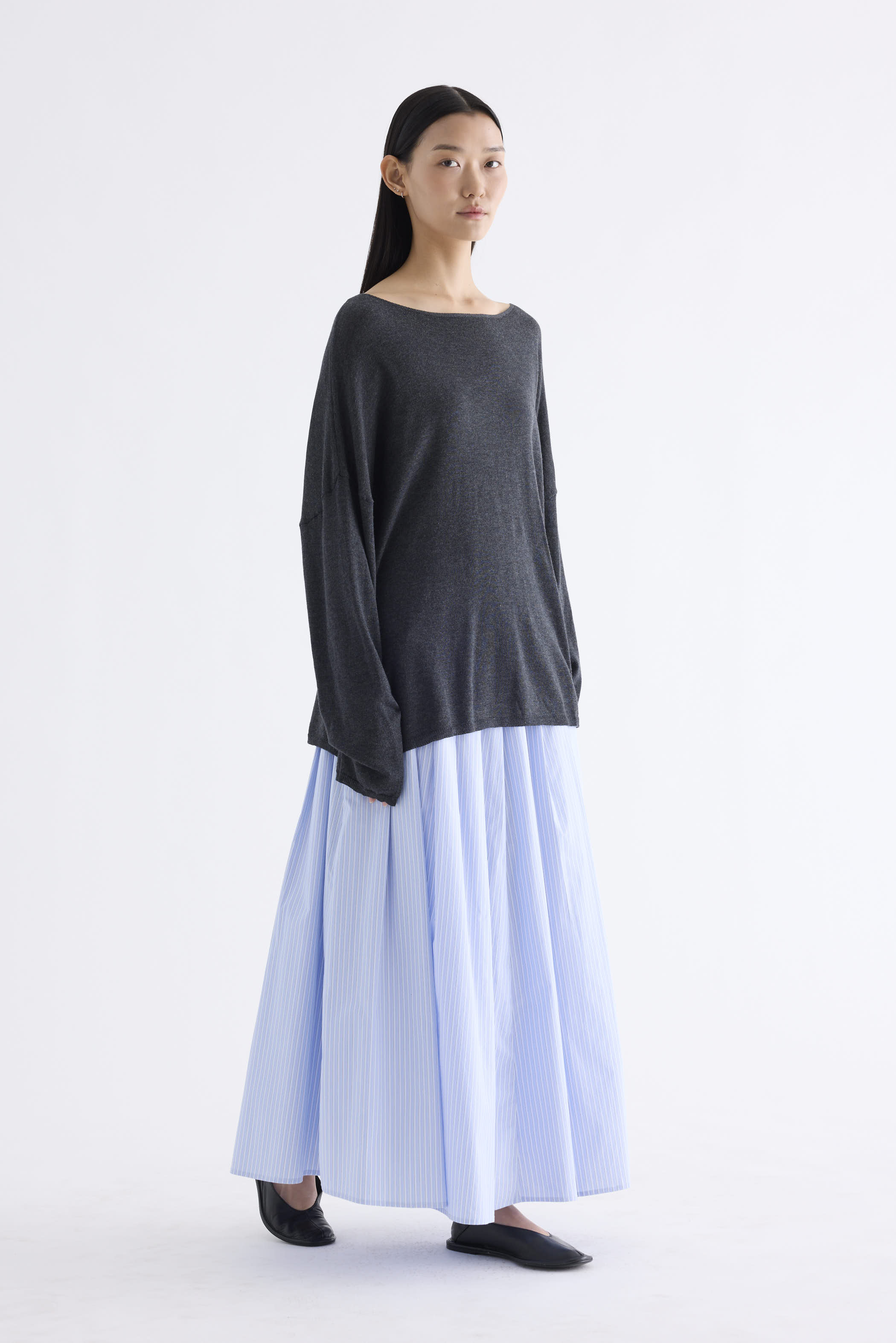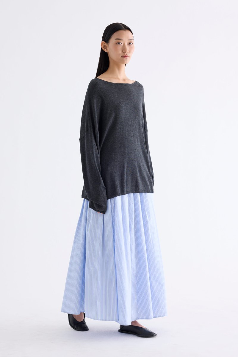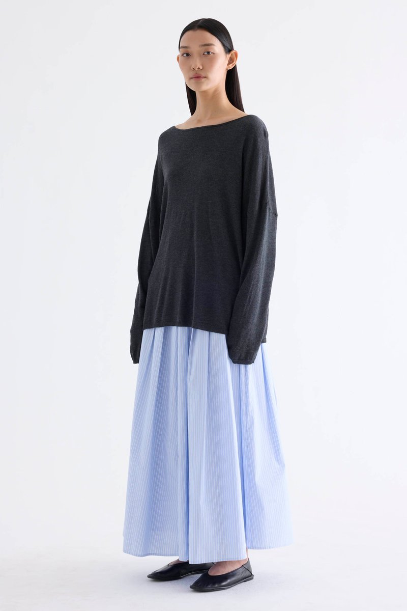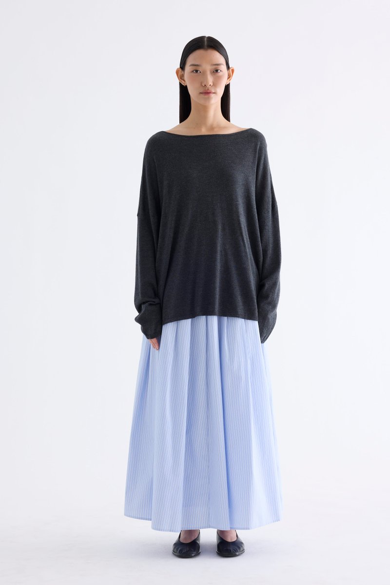 Get cosy. Made from soft and smooth knit, this top features long sleeves, dropped shoulders and a wide neckline. Fits relaxed and oversized.