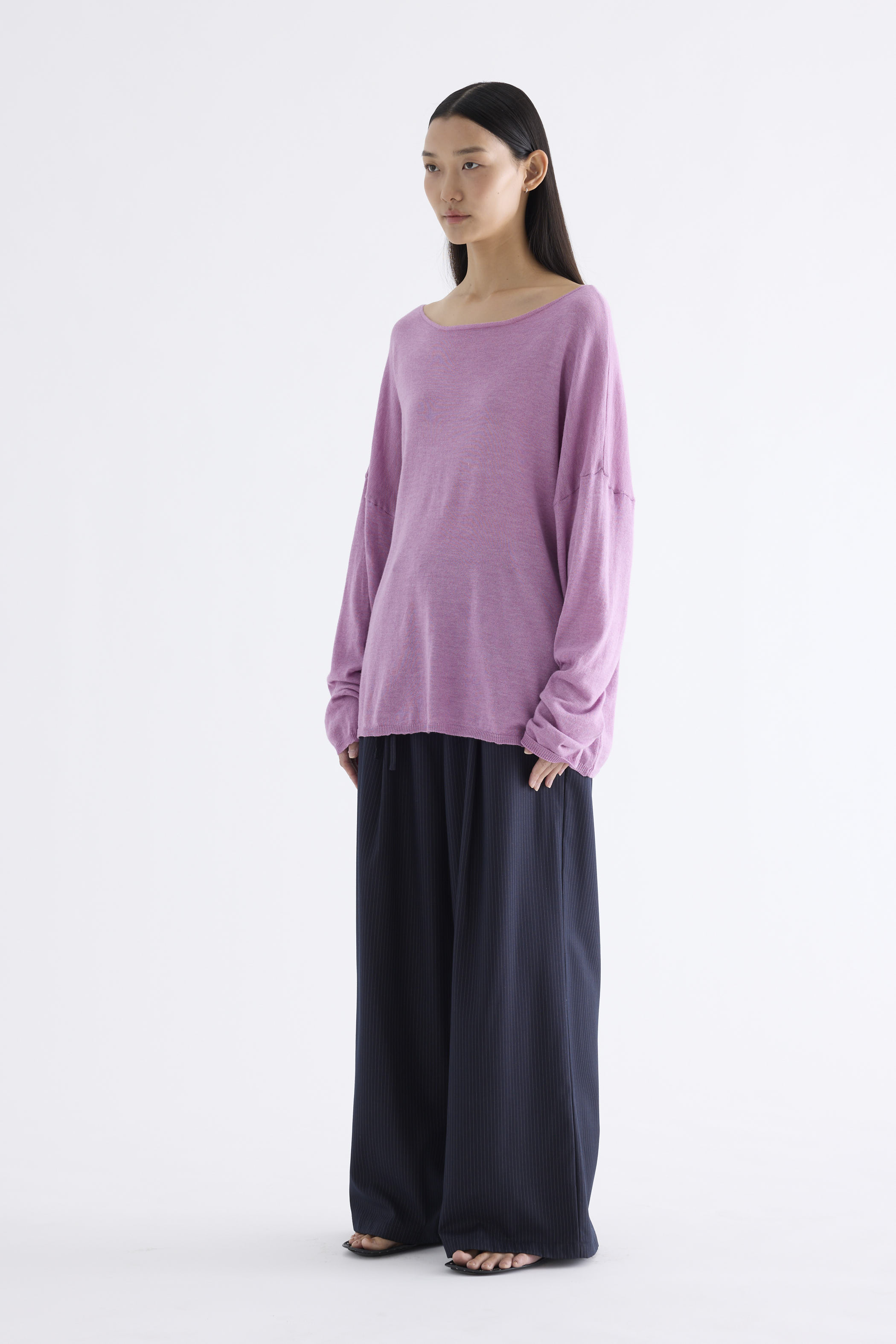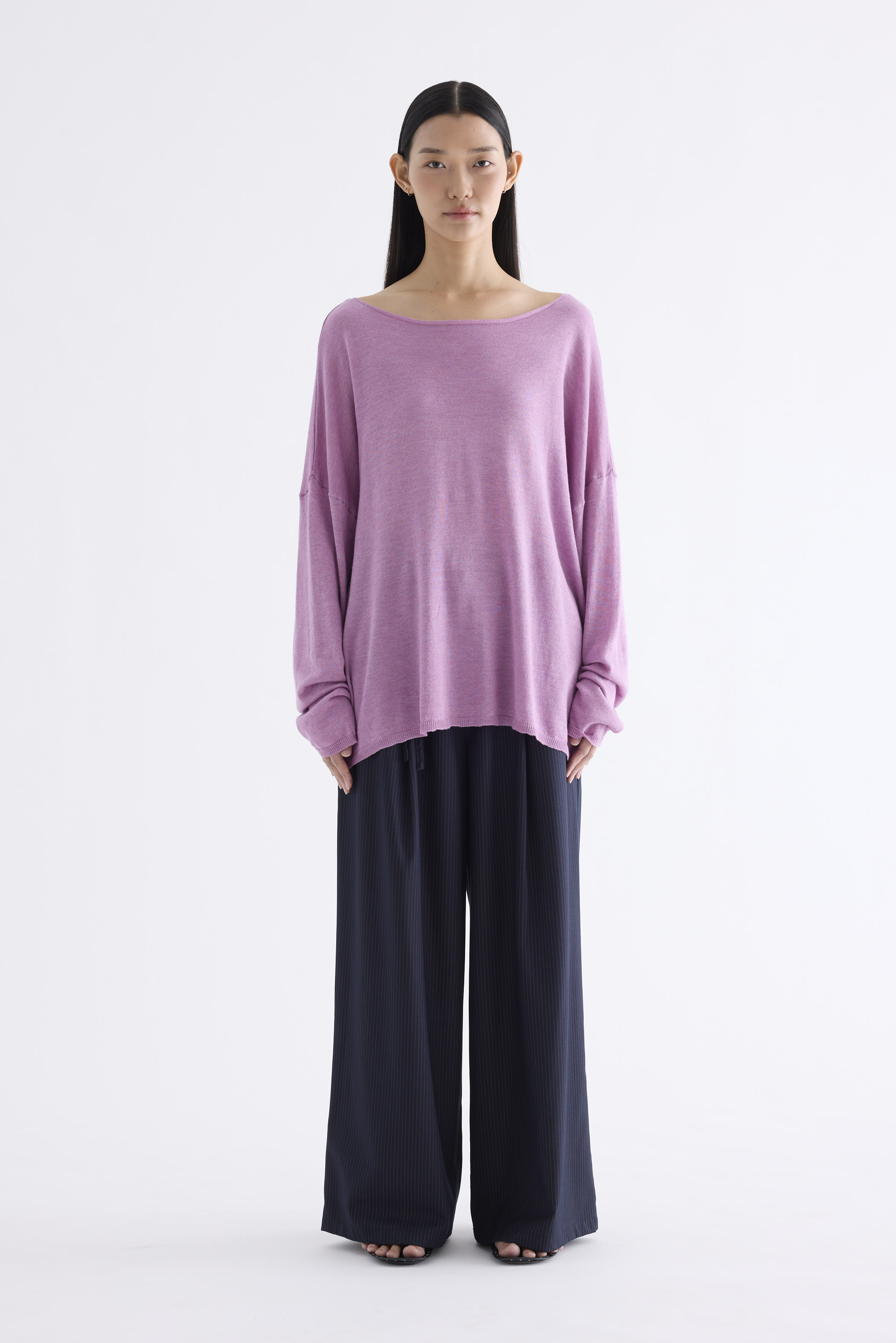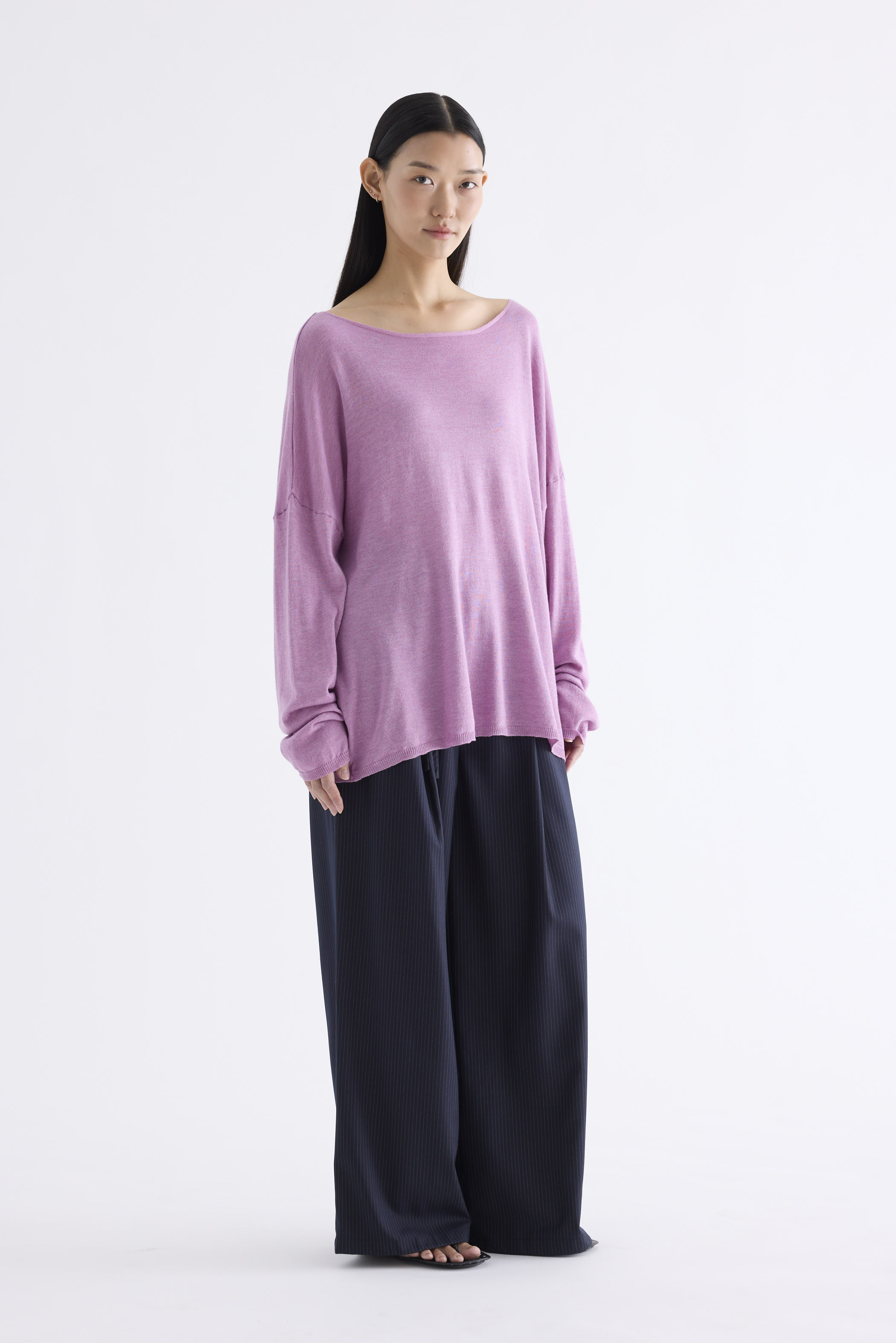 Get cosy. Made from soft and smooth knit, this top features long sleeves, dropped shoulders and a wide neckline. Fits relaxed and oversized.