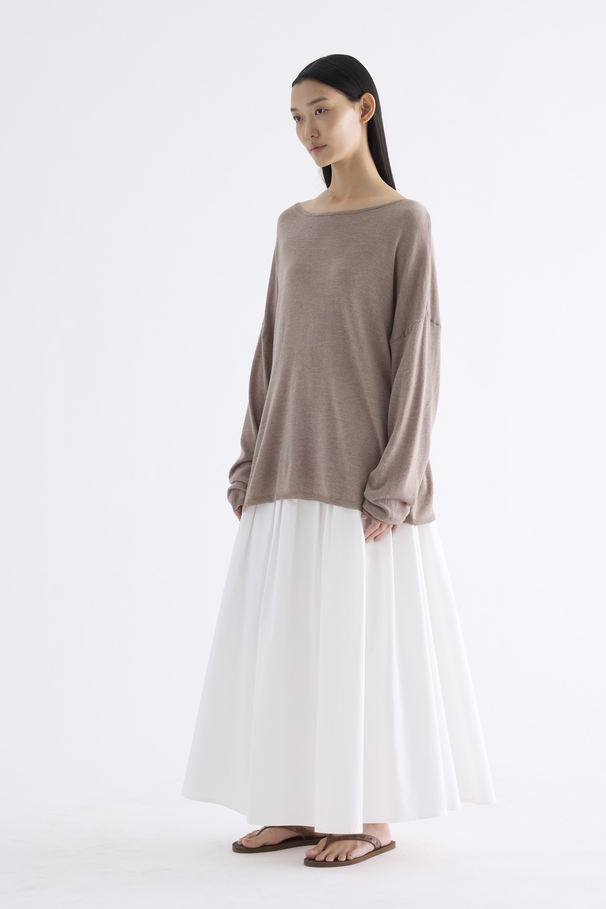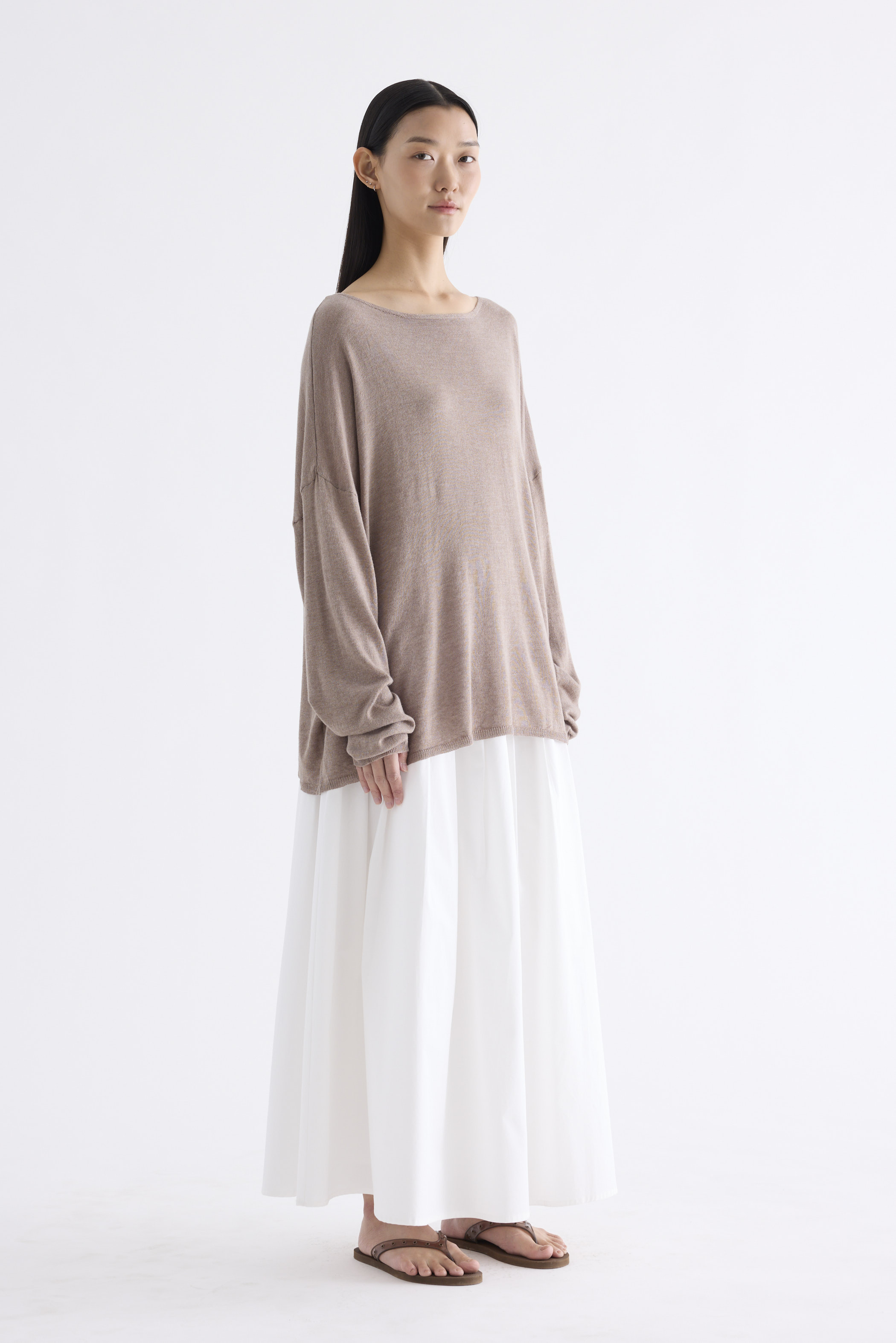 Get cosy. Made from soft and smooth knit, this top features long sleeves, dropped shoulders and a wide neckline. Fits relaxed and oversized.