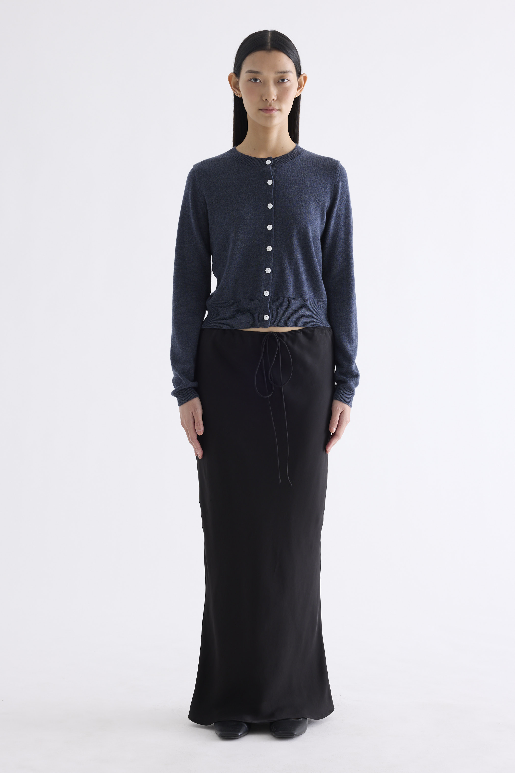 Cosy. Made from soft and smooth knit, this cardigan features a ribbed round neckline, ribbed hem and a button-down front. Worn in a slim fit.