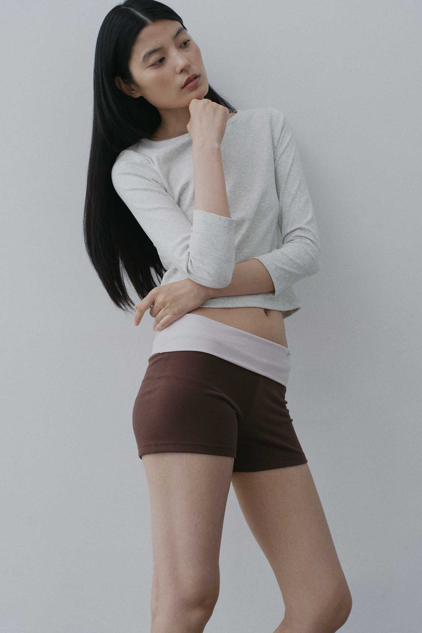 Made from soft and stretchy fabric, these shorts feature a contrast foldover waistband and a round metal label at the front. Fits slim.