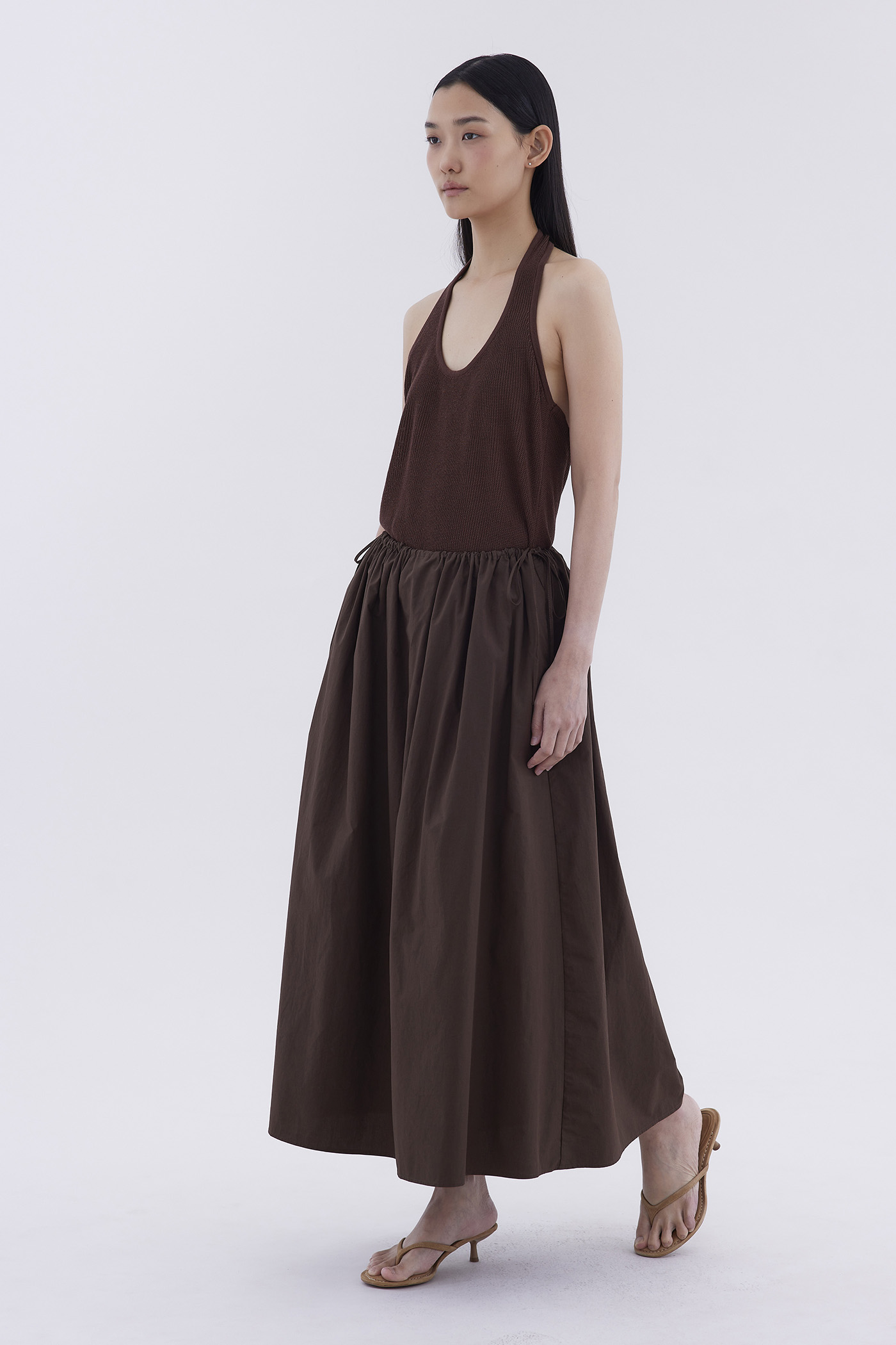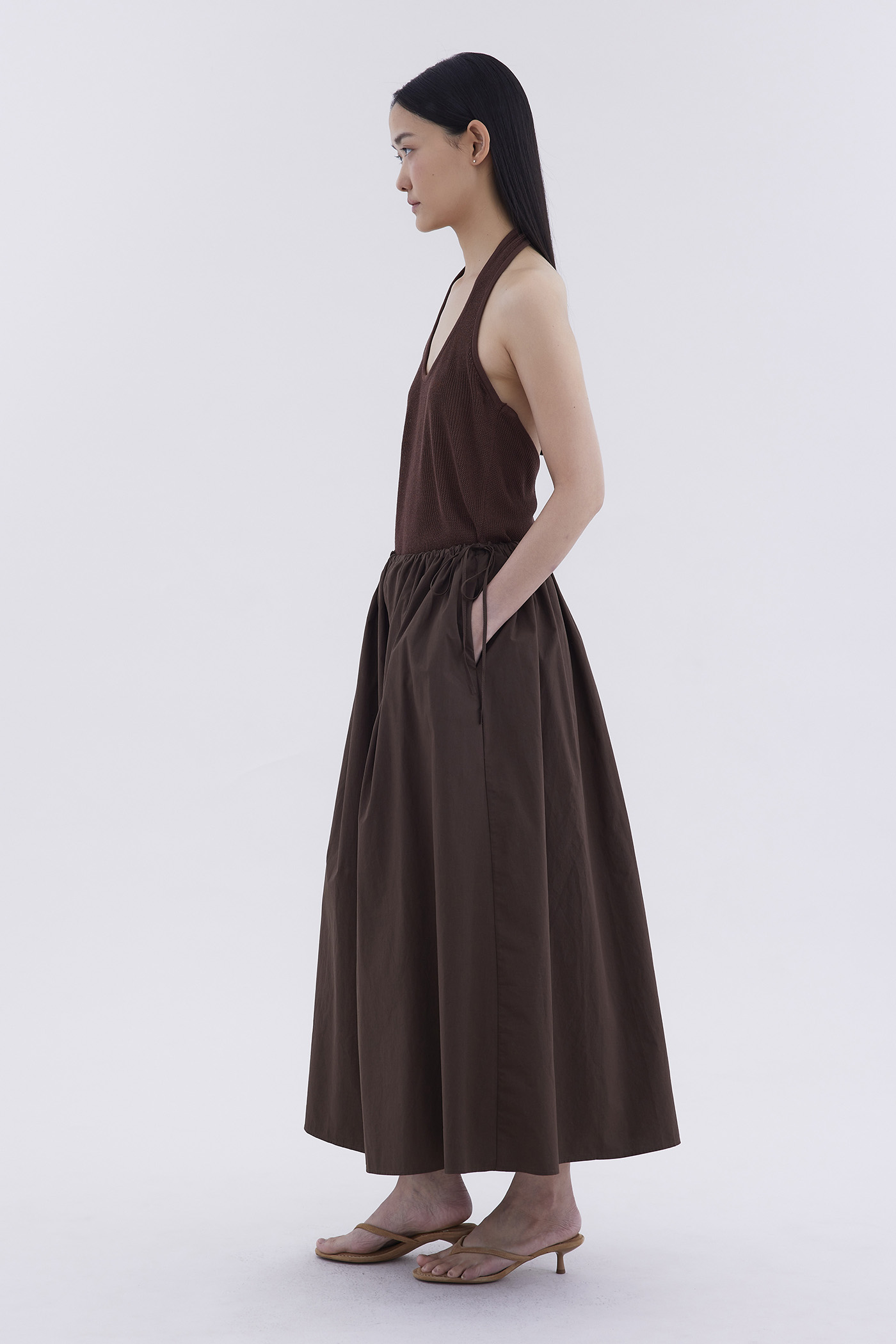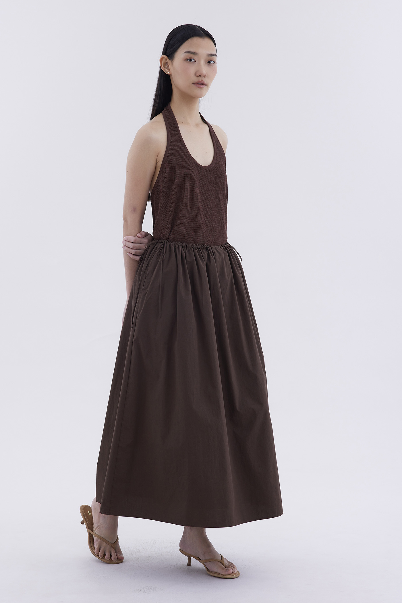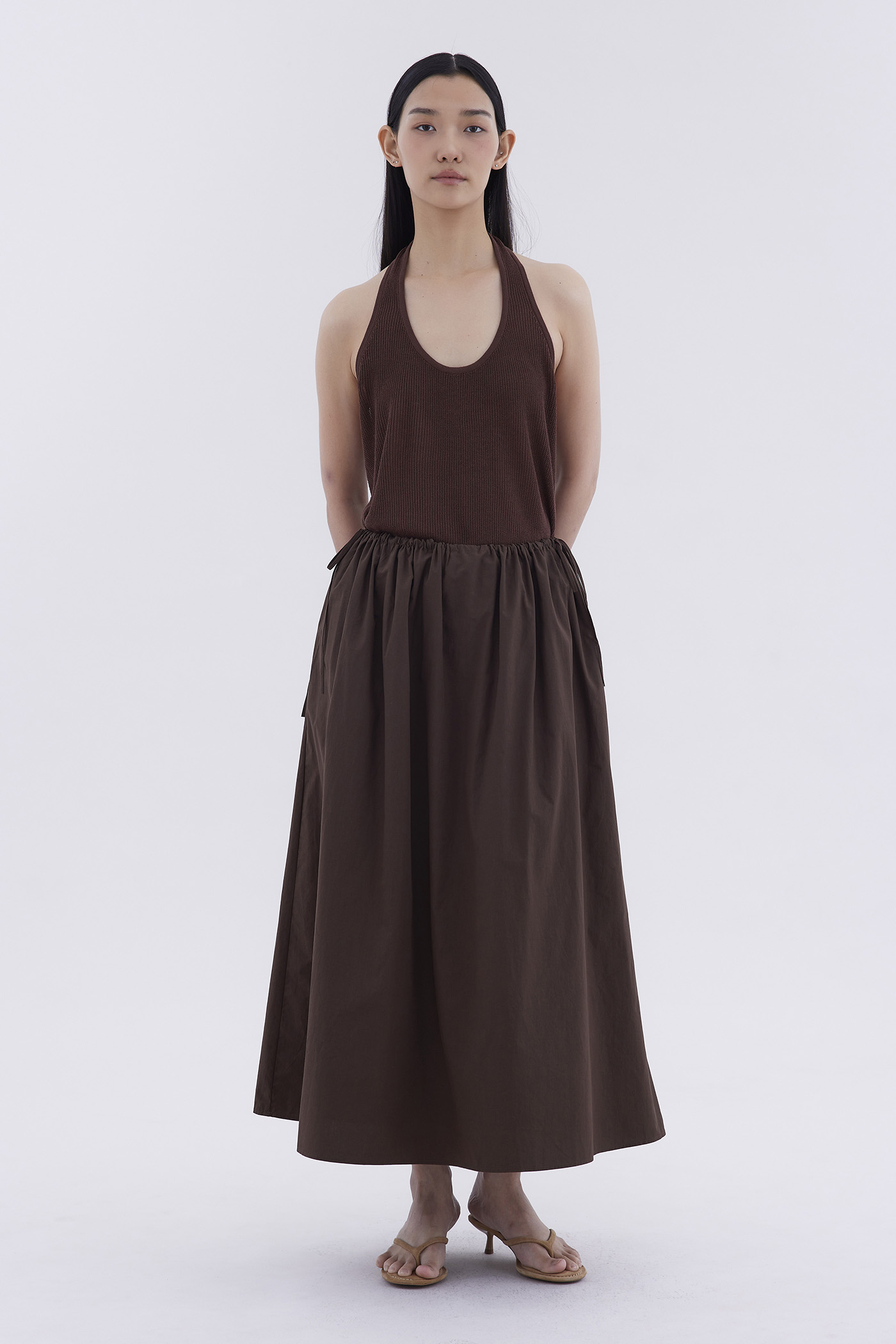 Double the detail. Made from crisp and softly structured cotton, this maxi skirt features a drawstring waistband with side-ties and a flared A-line silhouette.
