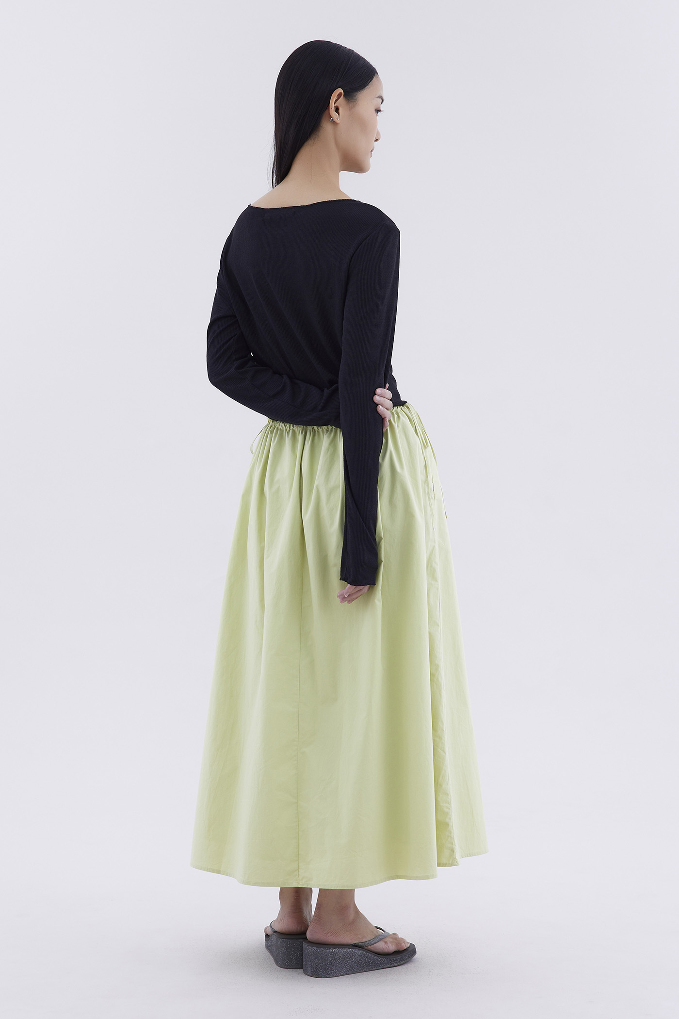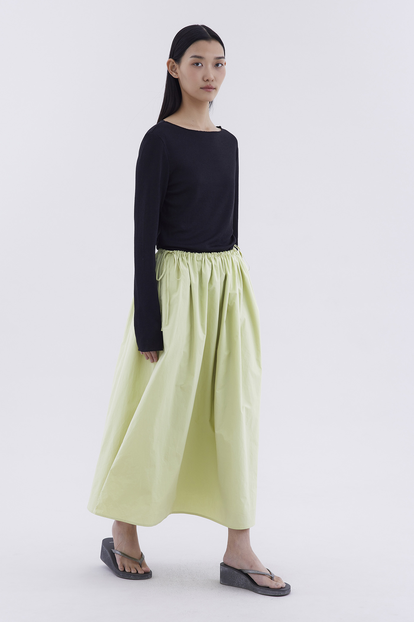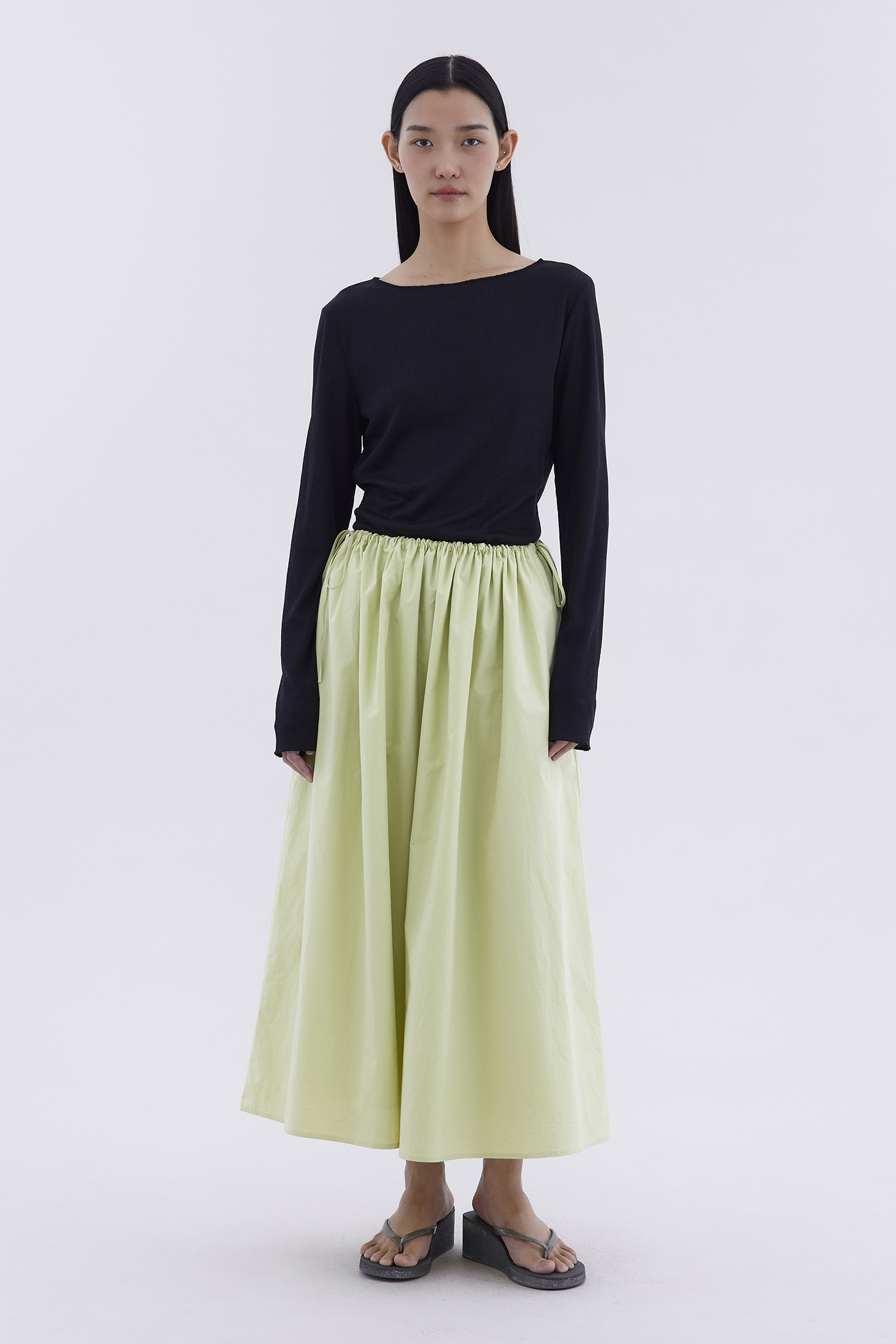 Double the detail. Made from crisp and softly structured cotton, this maxi skirt features a drawstring waistband with side-ties and a flared A-line silhouette.