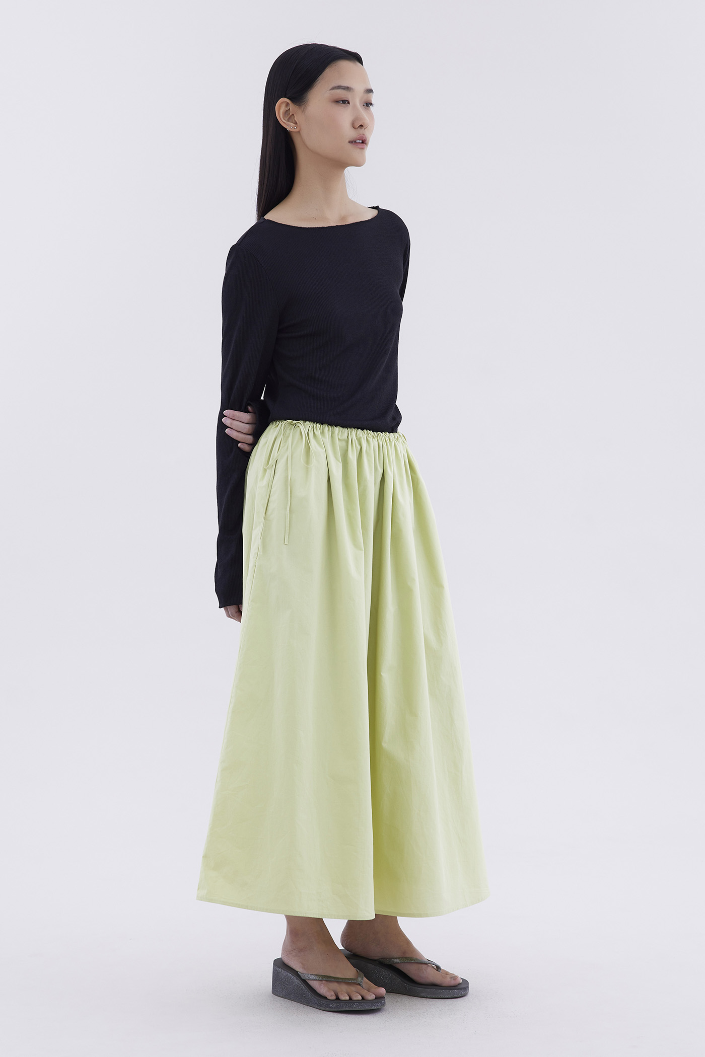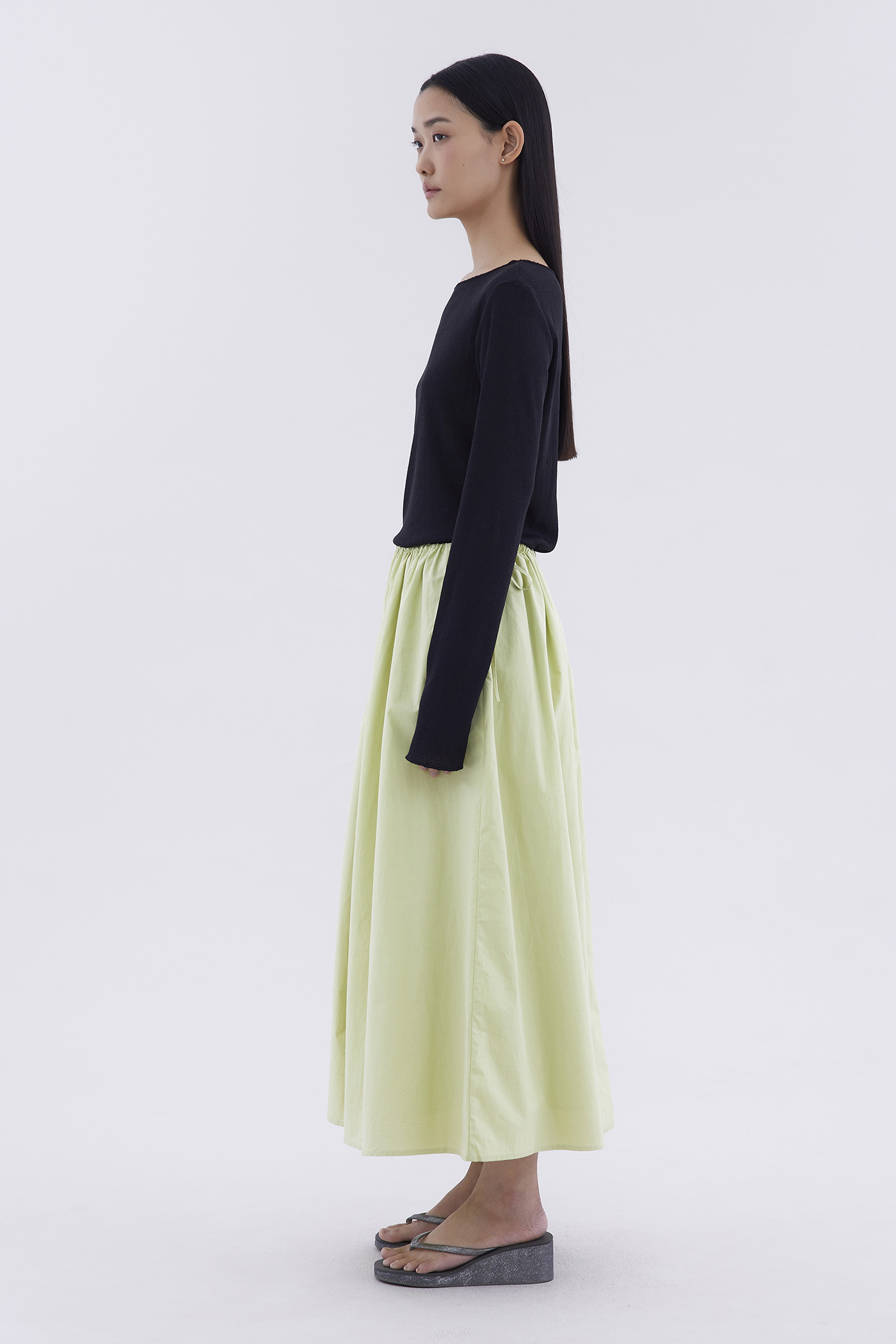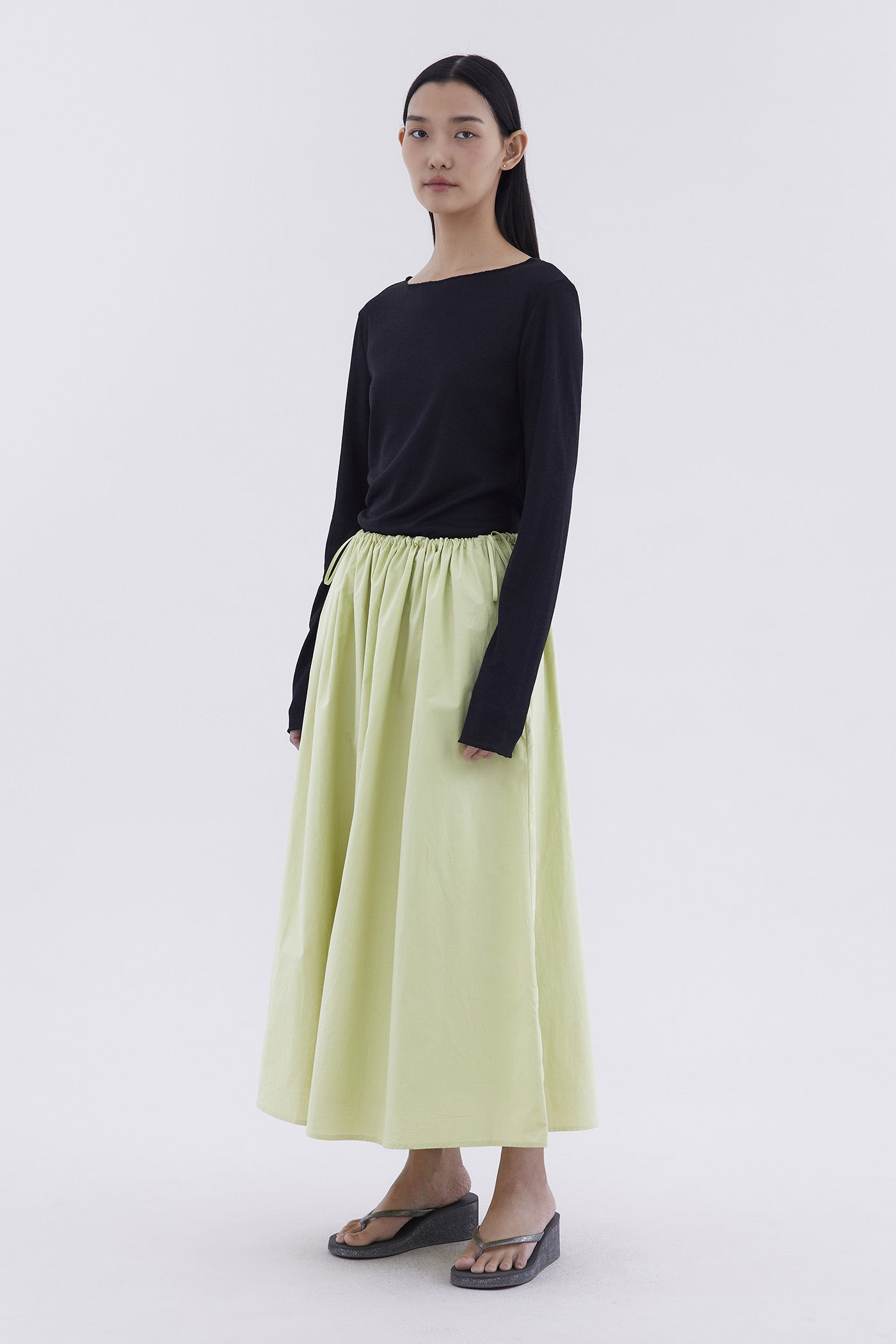 Double the detail. Made from crisp and softly structured cotton, this maxi skirt features a drawstring waistband with side-ties and a flared A-line silhouette.