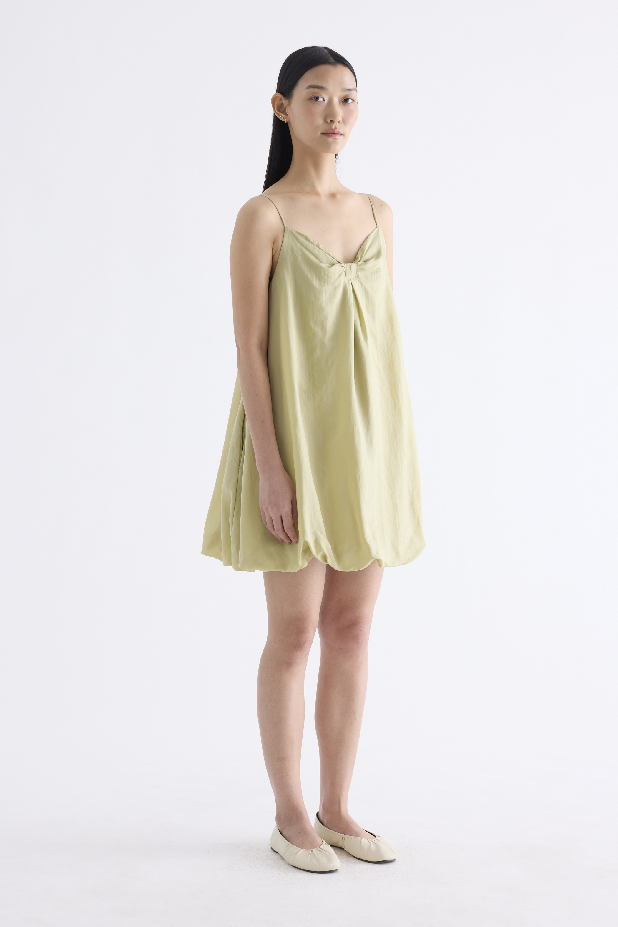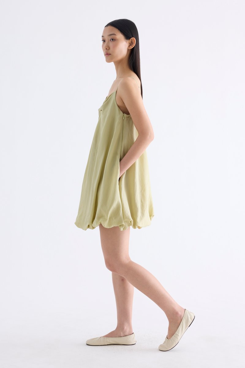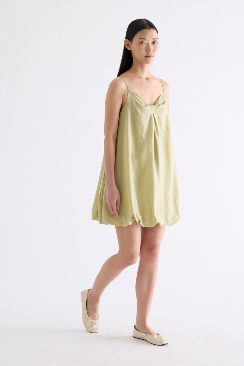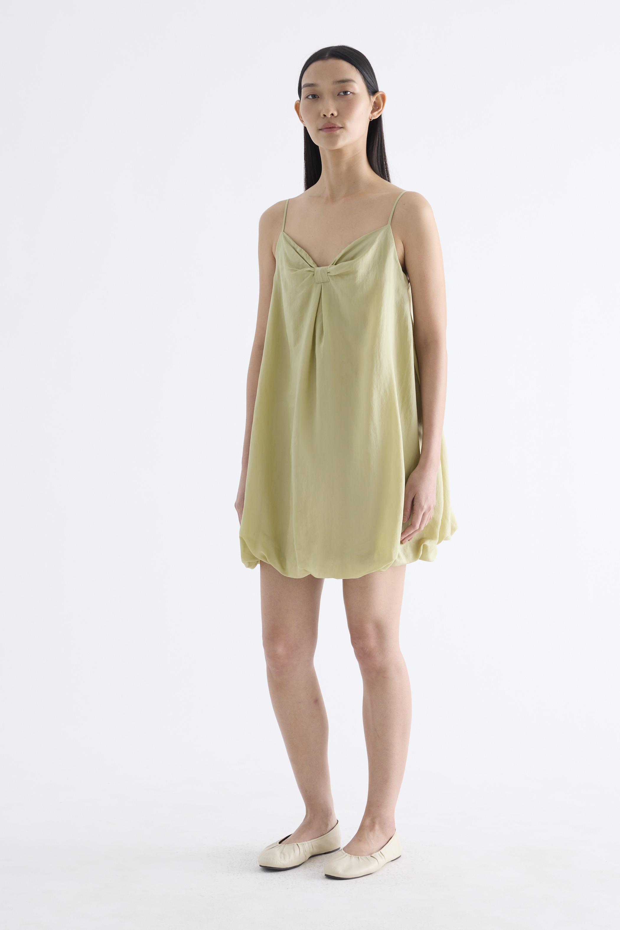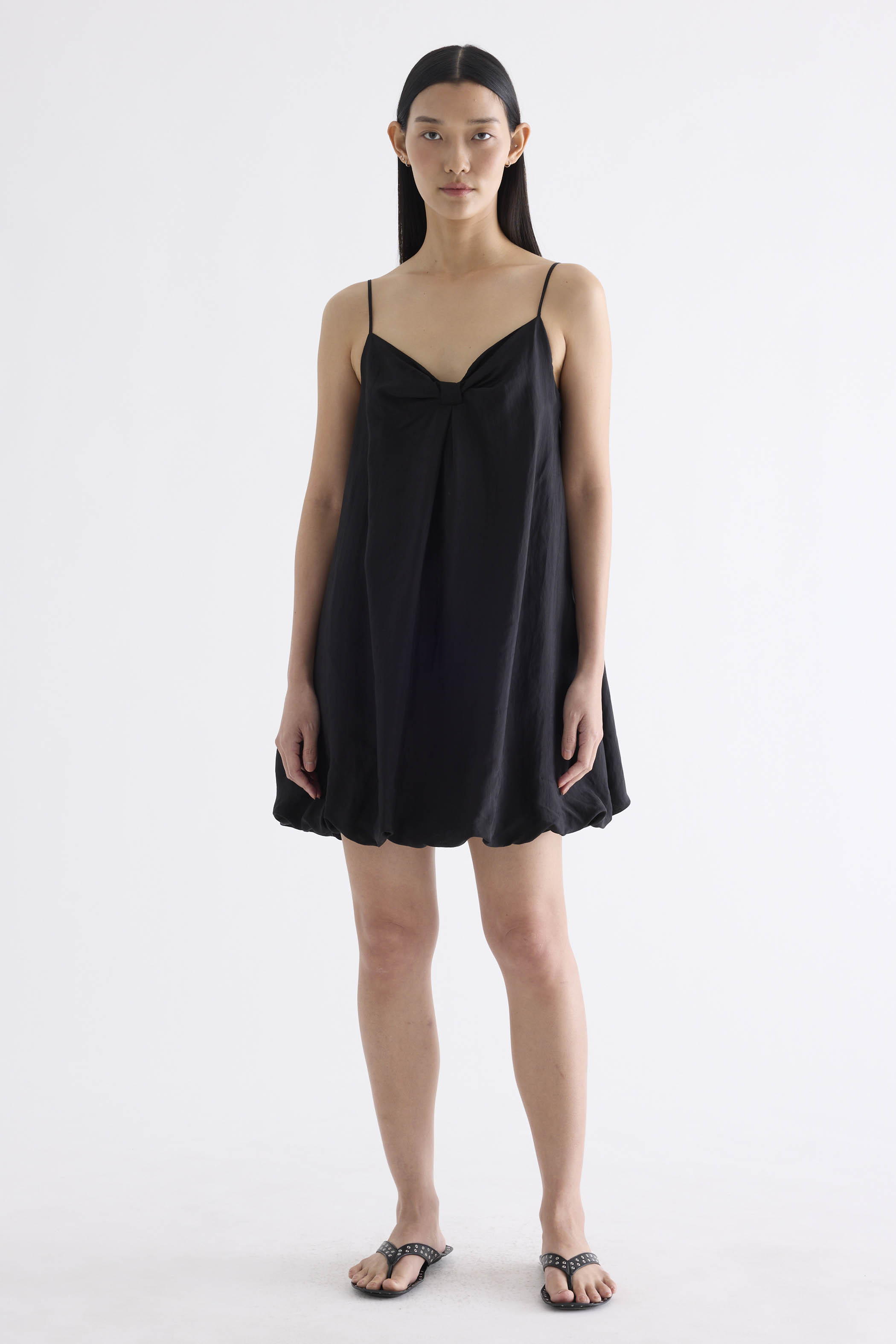 Dress for the occasion. Made from soft and smooth fabric, this sleeveless dress features a bubble hem, bow neckline, side zip and slim adjustable shoulder straps. Fits relaxed and above the knee.