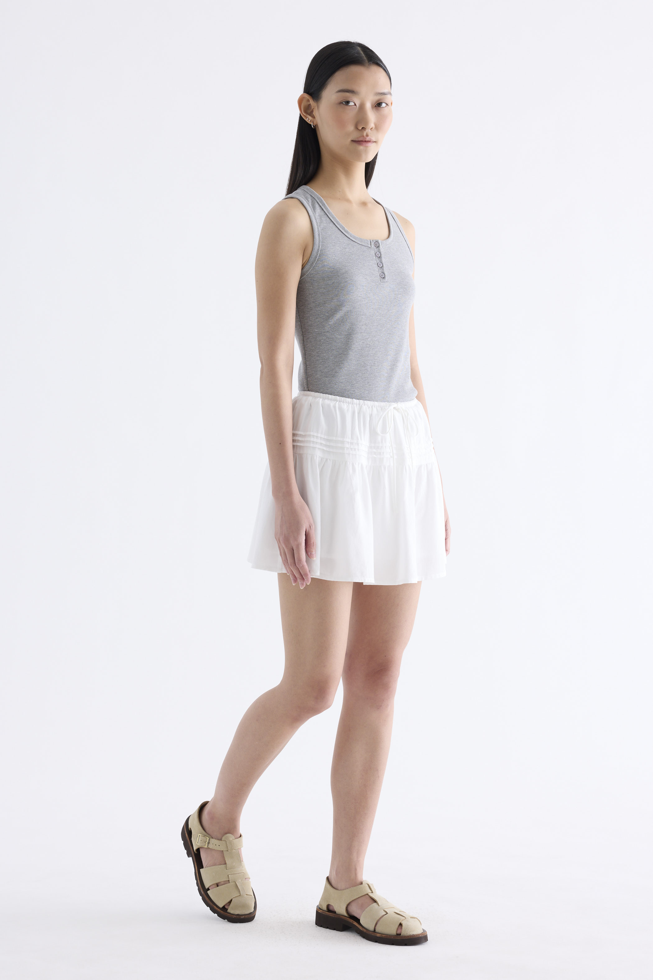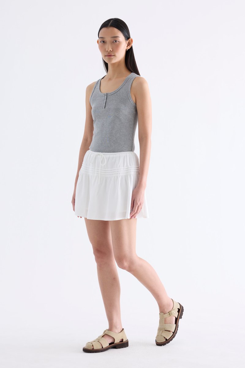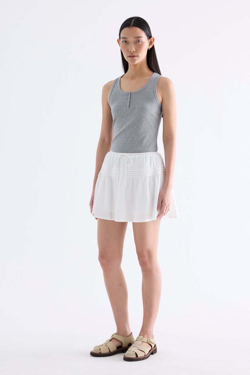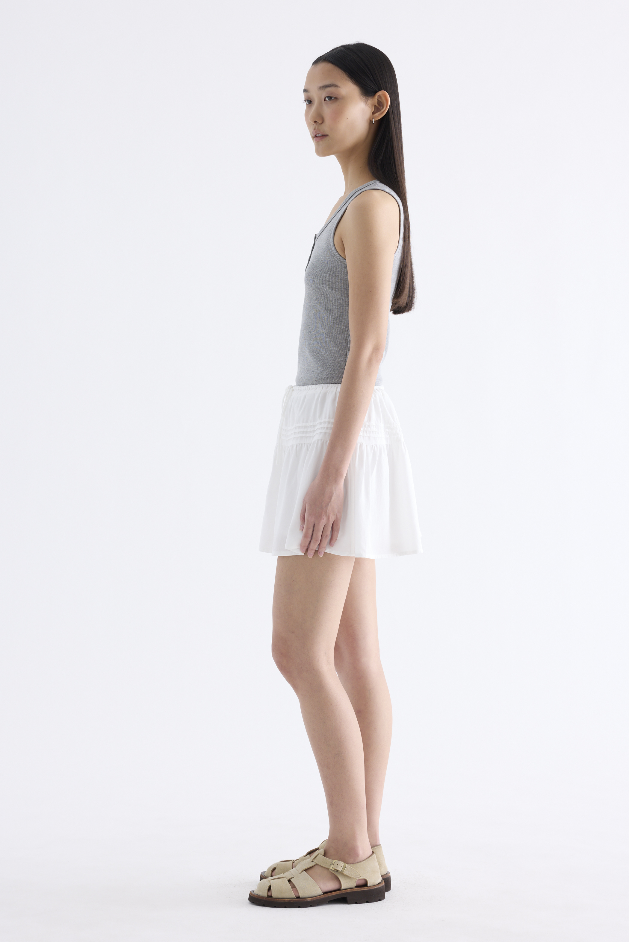 Short of nothing. Made from soft and smooth fabric, this skirt features an elasticated drawstring waistband, pin-tucks along its length and an easy, flared silhouette. Worn in a relaxed fit.