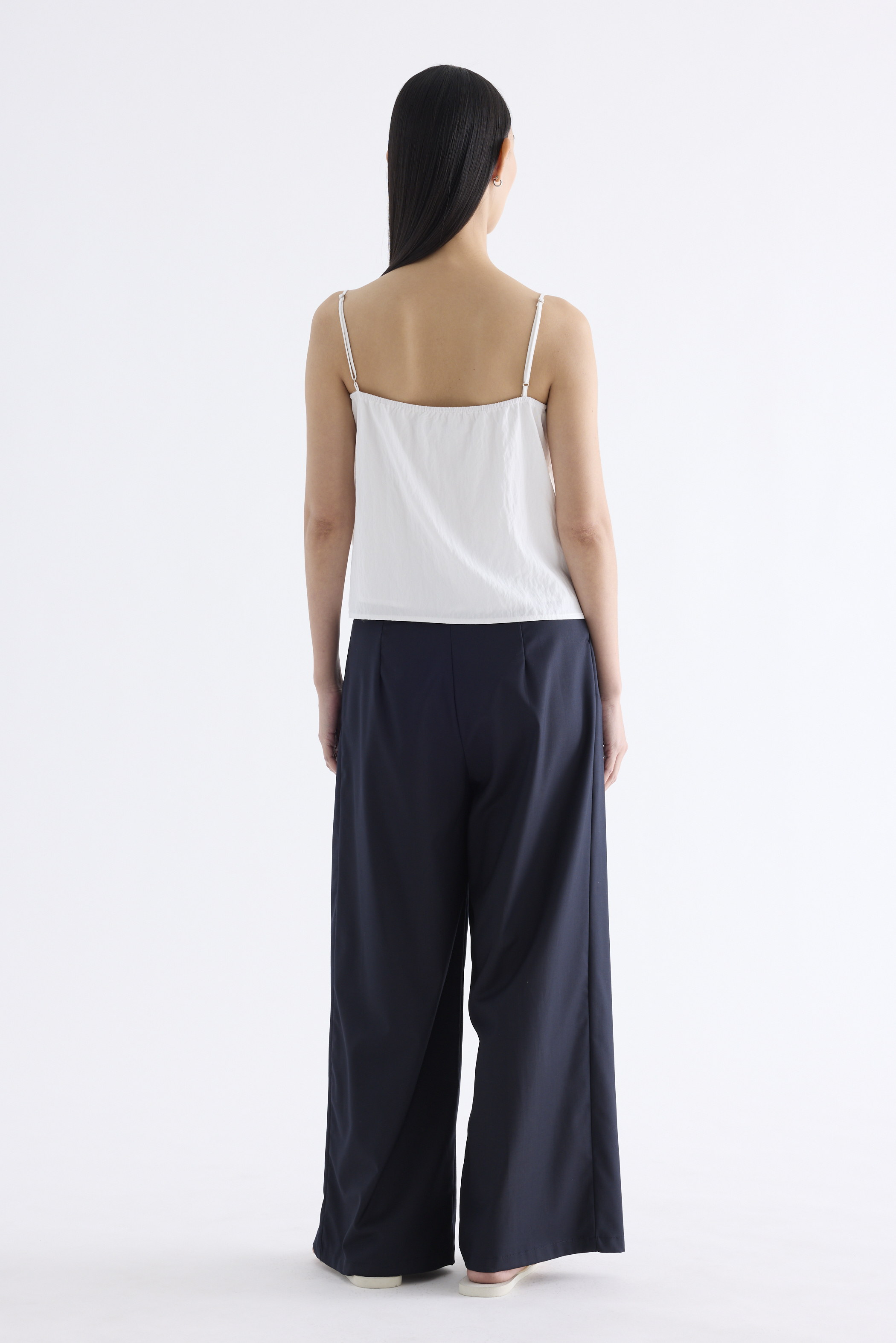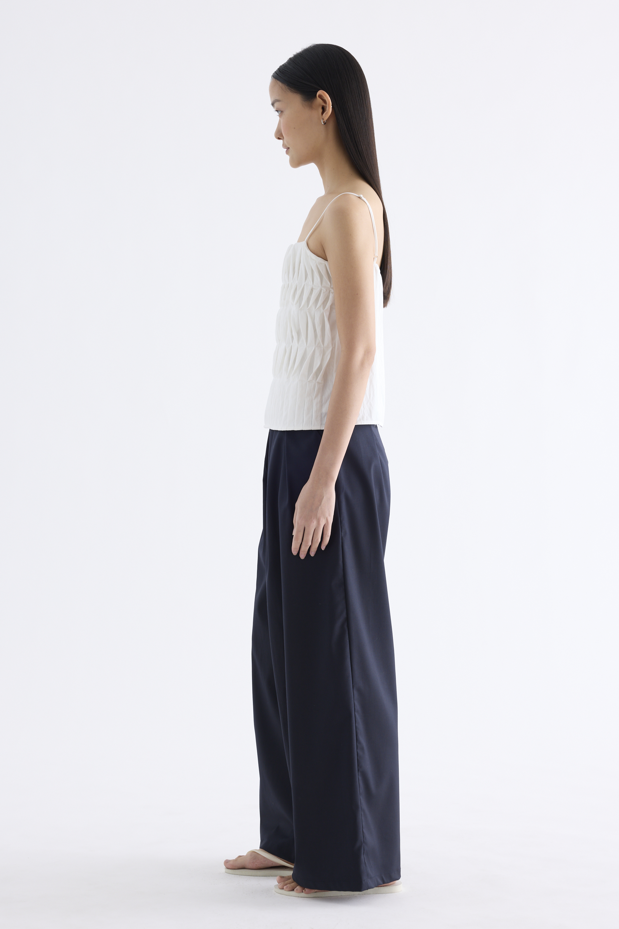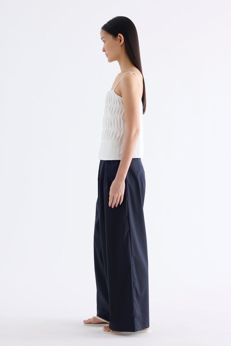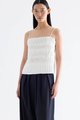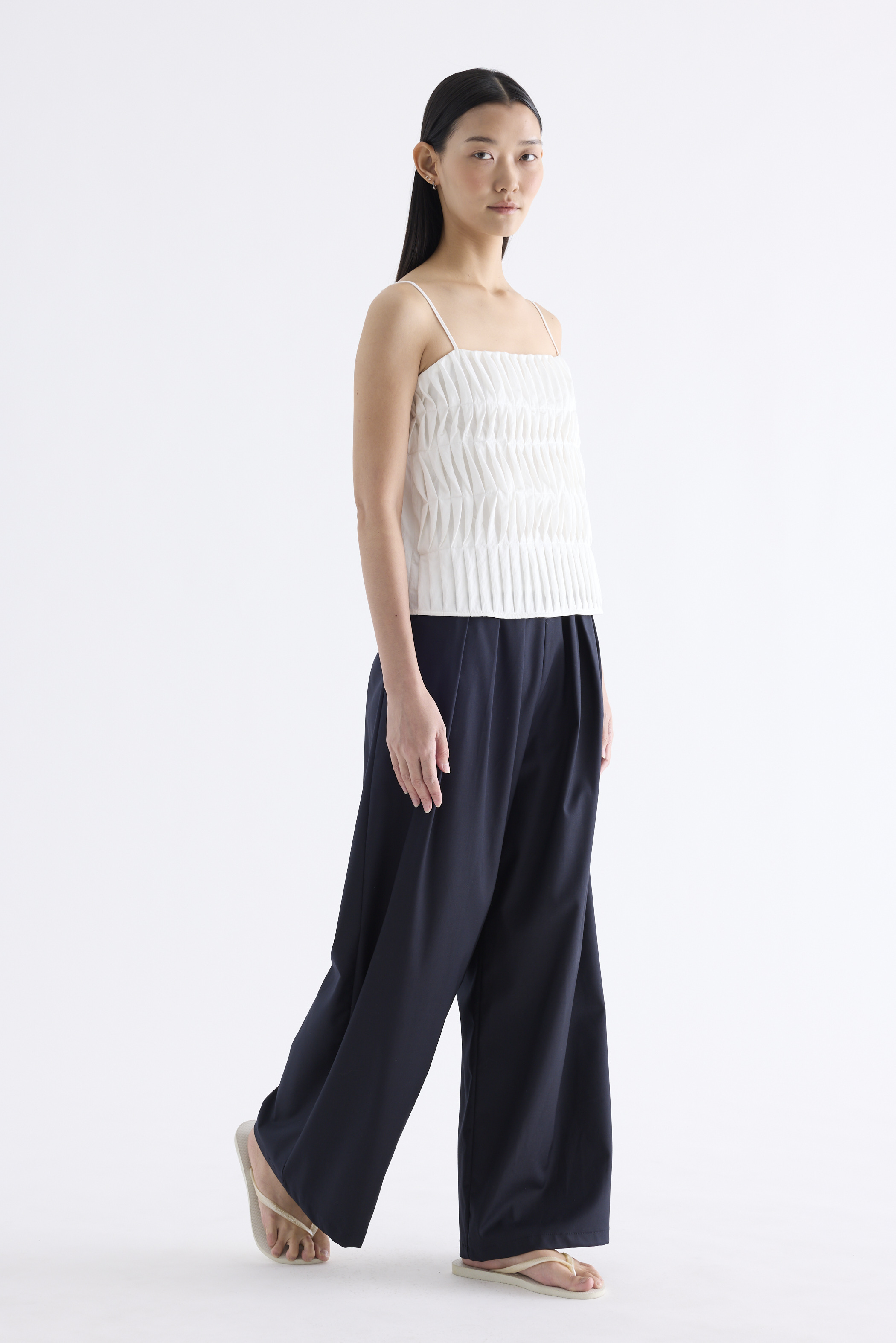 Statement lines. Made from softly structured fabric, this sleeveless top features twisted pleats at the front, slim adjustable shoulder straps, a straight neckline and a partially elasticated back. Worn in a slim fit.