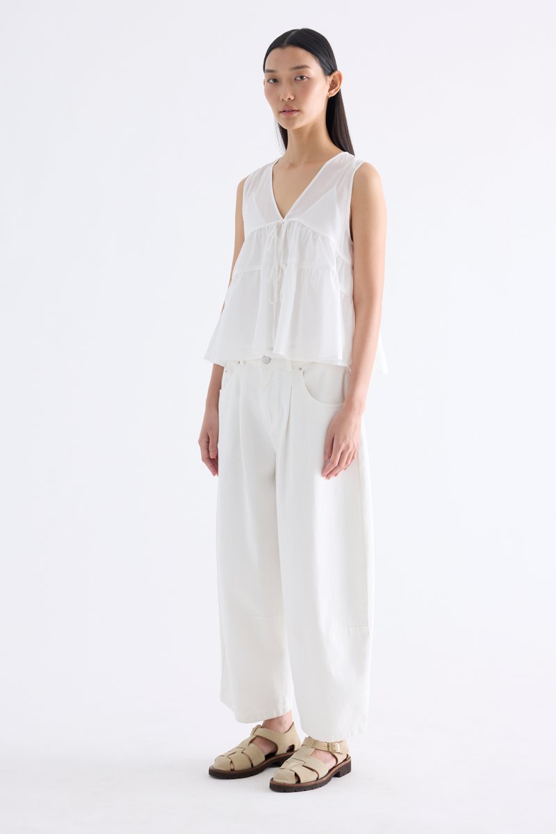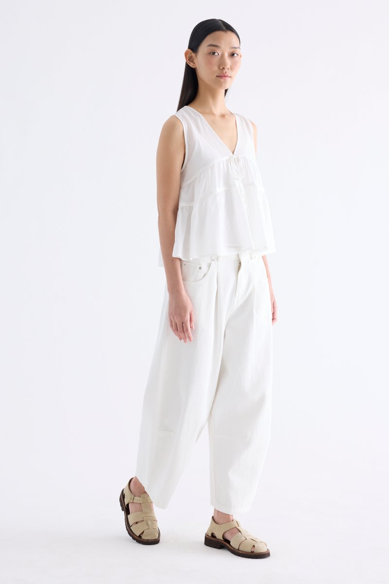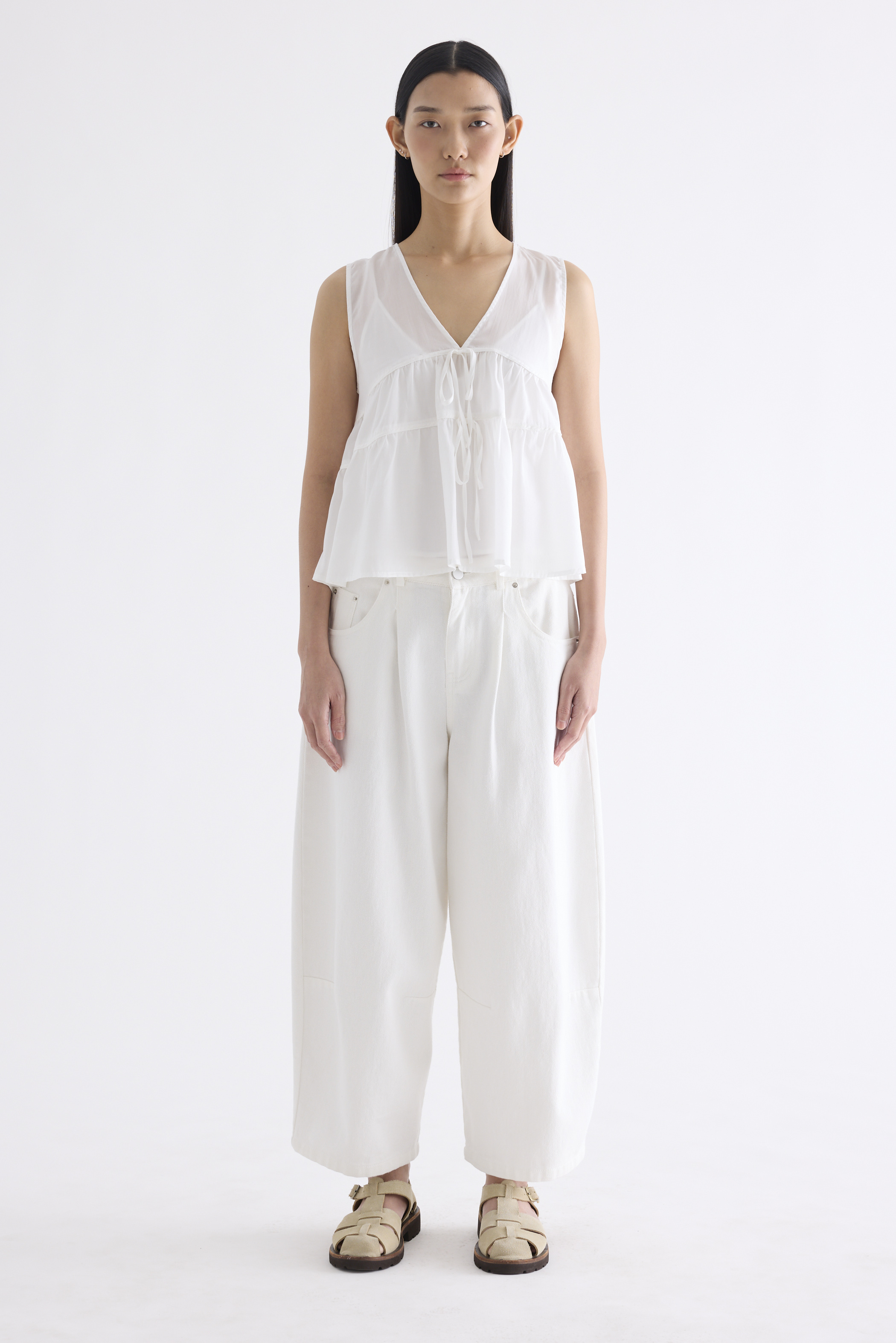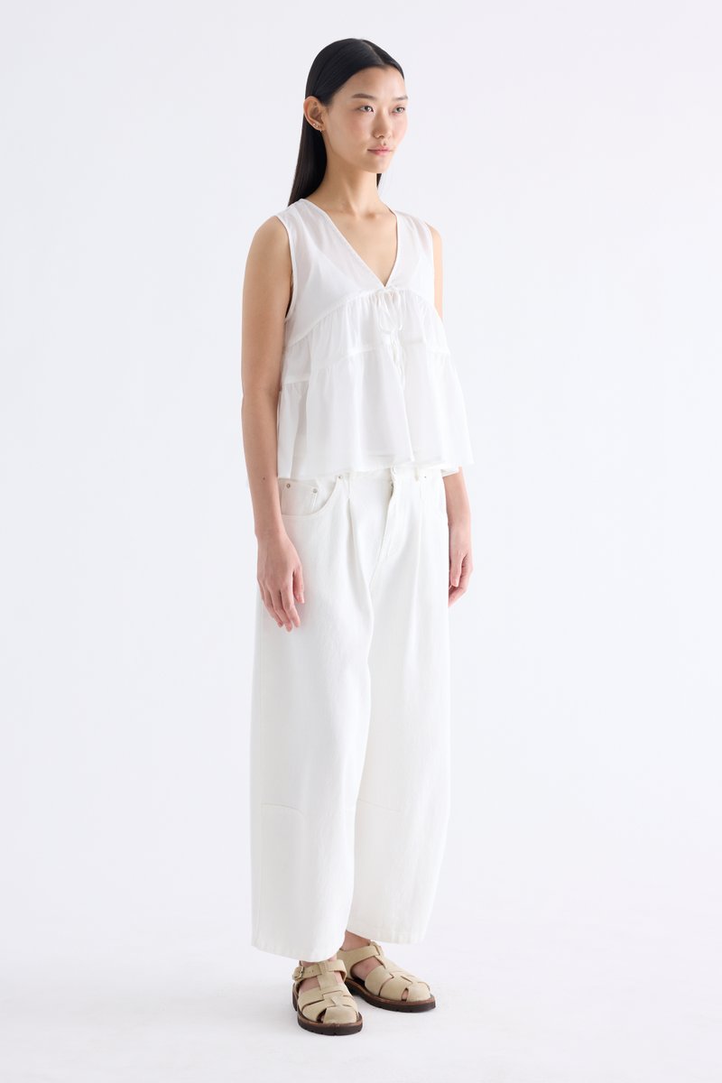 Double down. Made from smooth and flowy Tencel, this two-piece top features a tiered, semi-sheer outer layer with a V-neckline and front tie-strap, as well as an inner camisole with a V-neckline and slim adjustable shoulder straps. Worn in a relaxed fit.