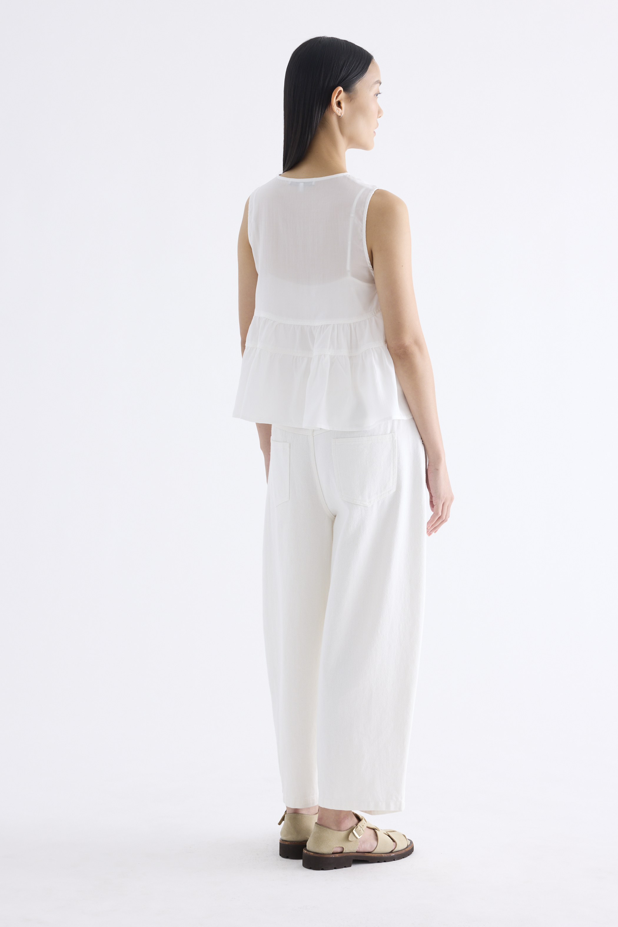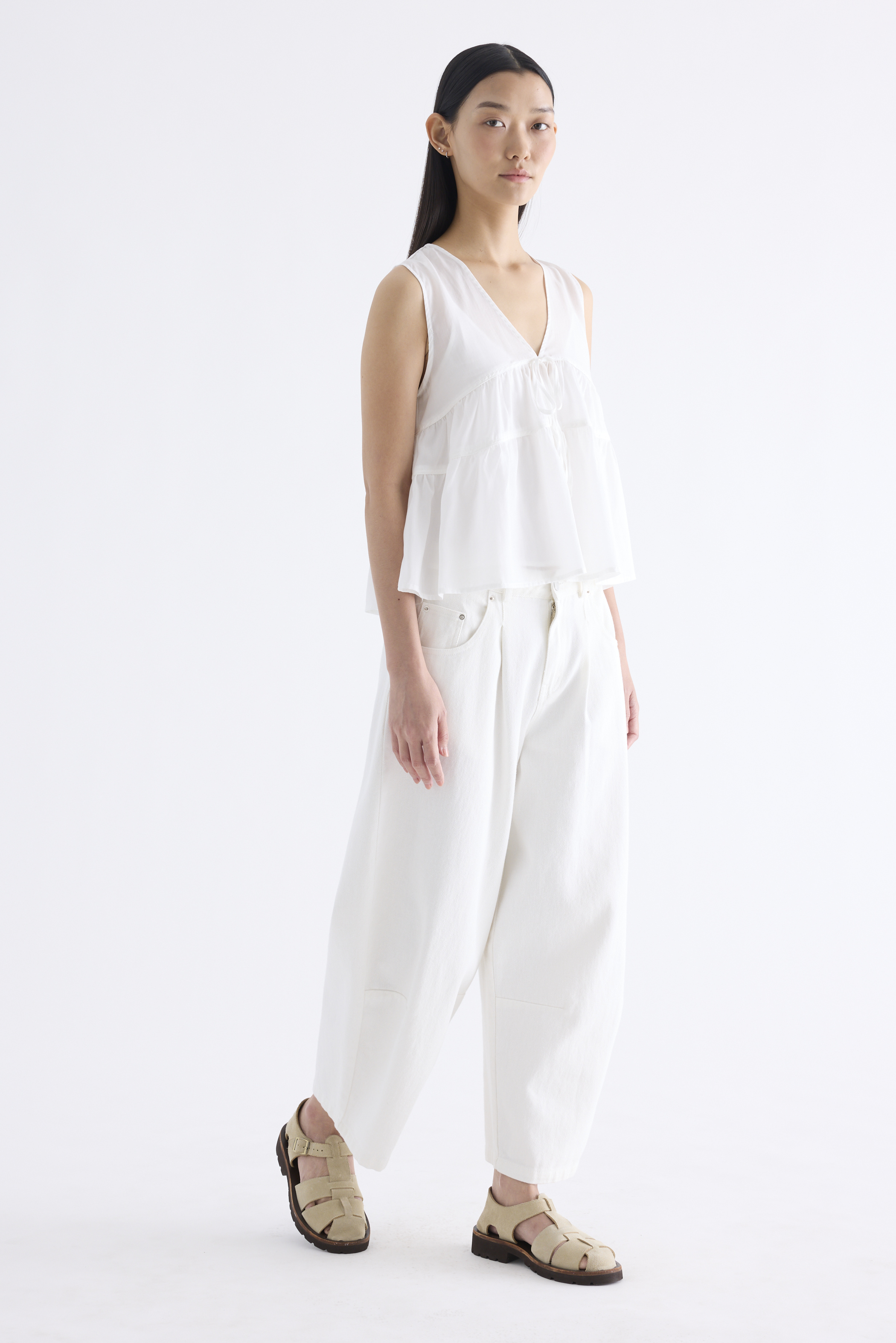 This piece is made from 100% Tencel lyocell, a cellulose fibre derived from wood pulp processed in a low-energy, low-water, closed-loop system. Fully biodegradable, its silky smooth, long-lasting and moisture-wicking properties also resists odours and winkles, making it suitable for multiple wears between washes to save more water and energy.
