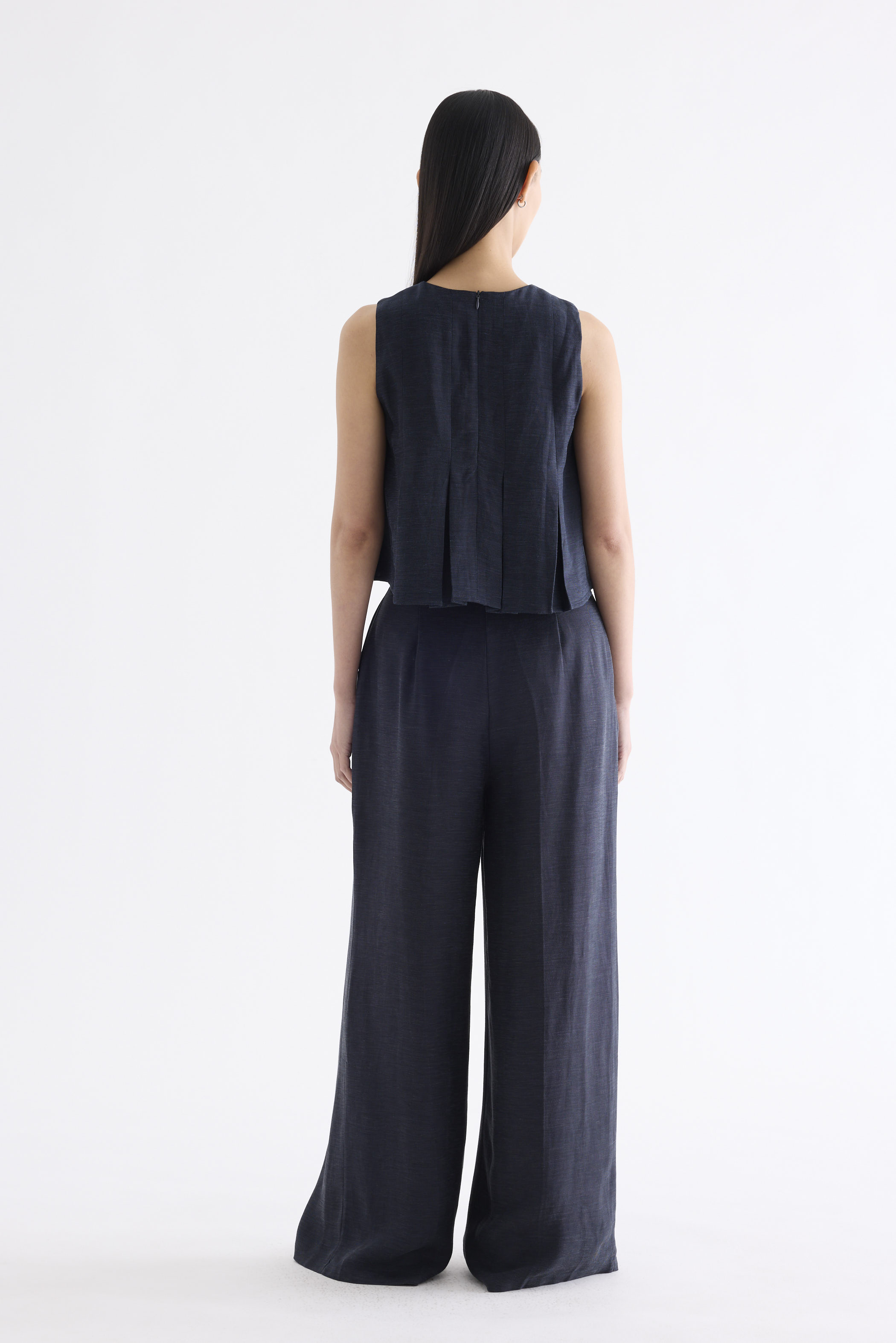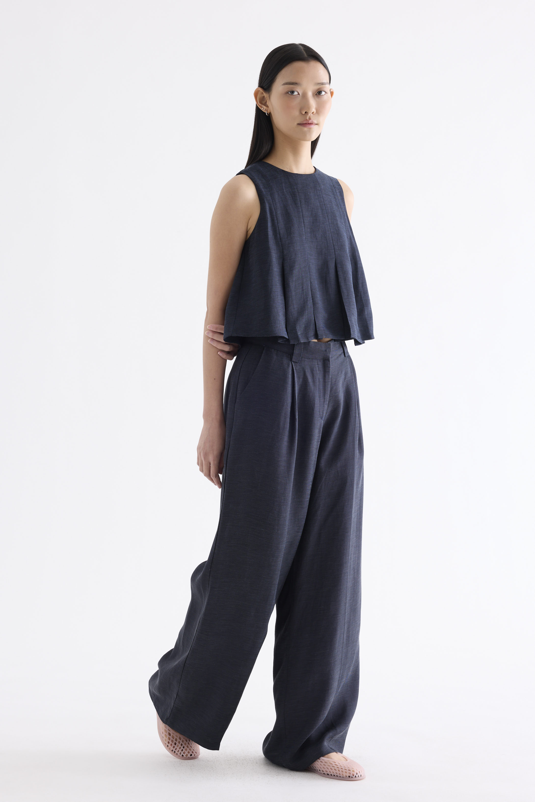 Up for anything. Cut from smooth and softly tailored fabric, these pants feature wide straight legs, belt loops, and a front zip and buckle closure. Worn in a relaxed fit.
