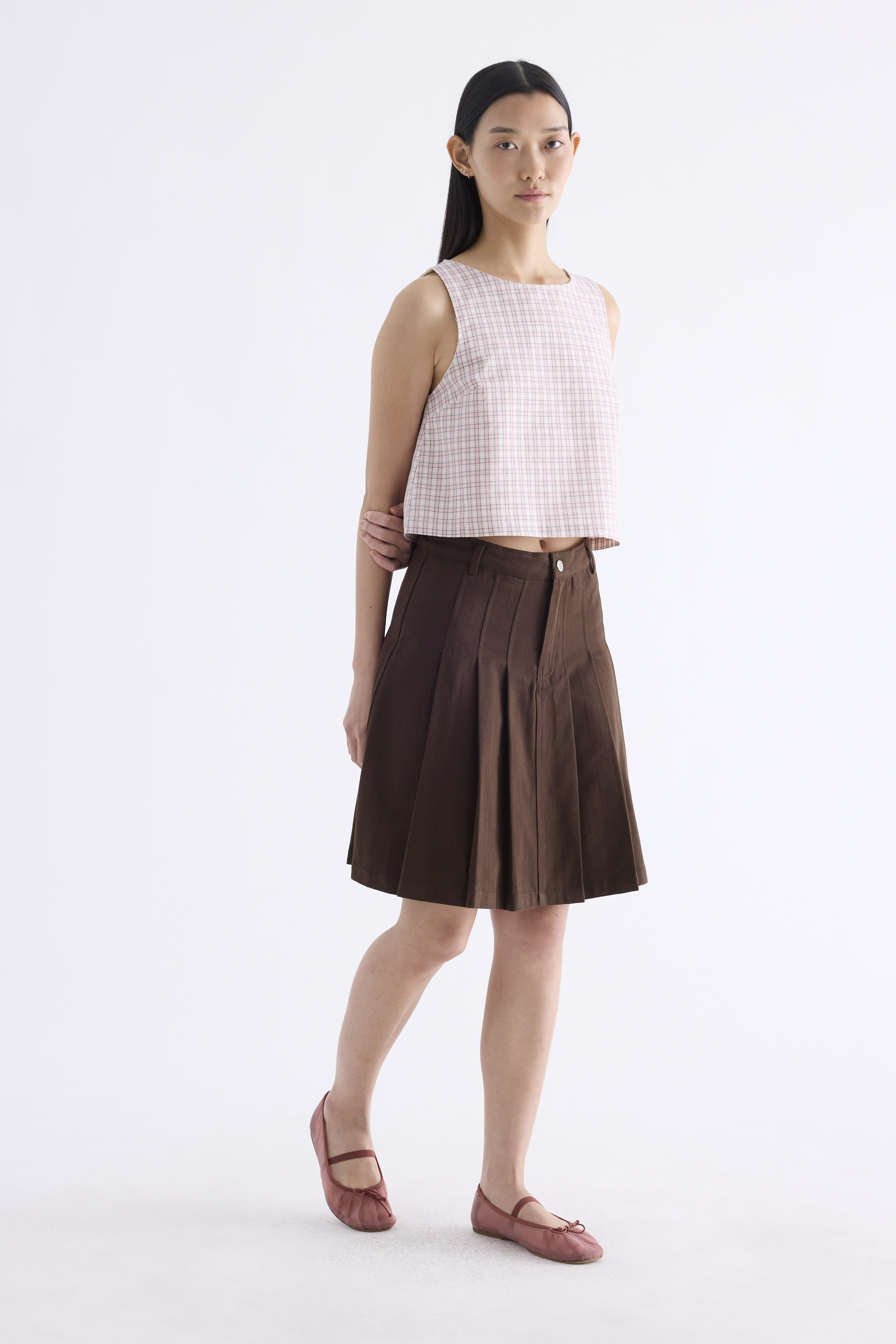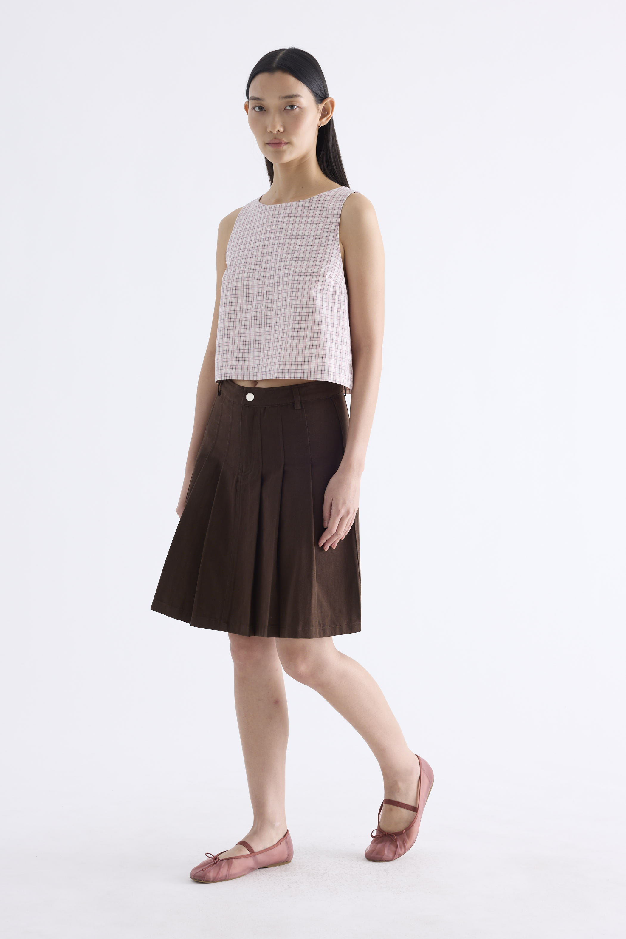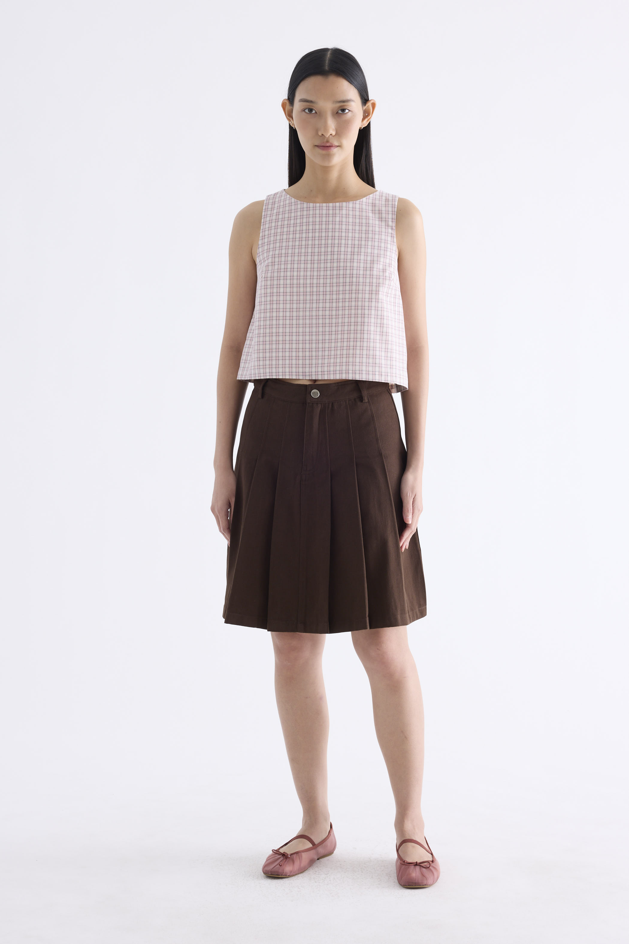 Clean lines. Made from airy and softly structured cotton, this sleeveless top features a round neckline and back buttons. Fits relaxed in a flattering boxy silhouette.
