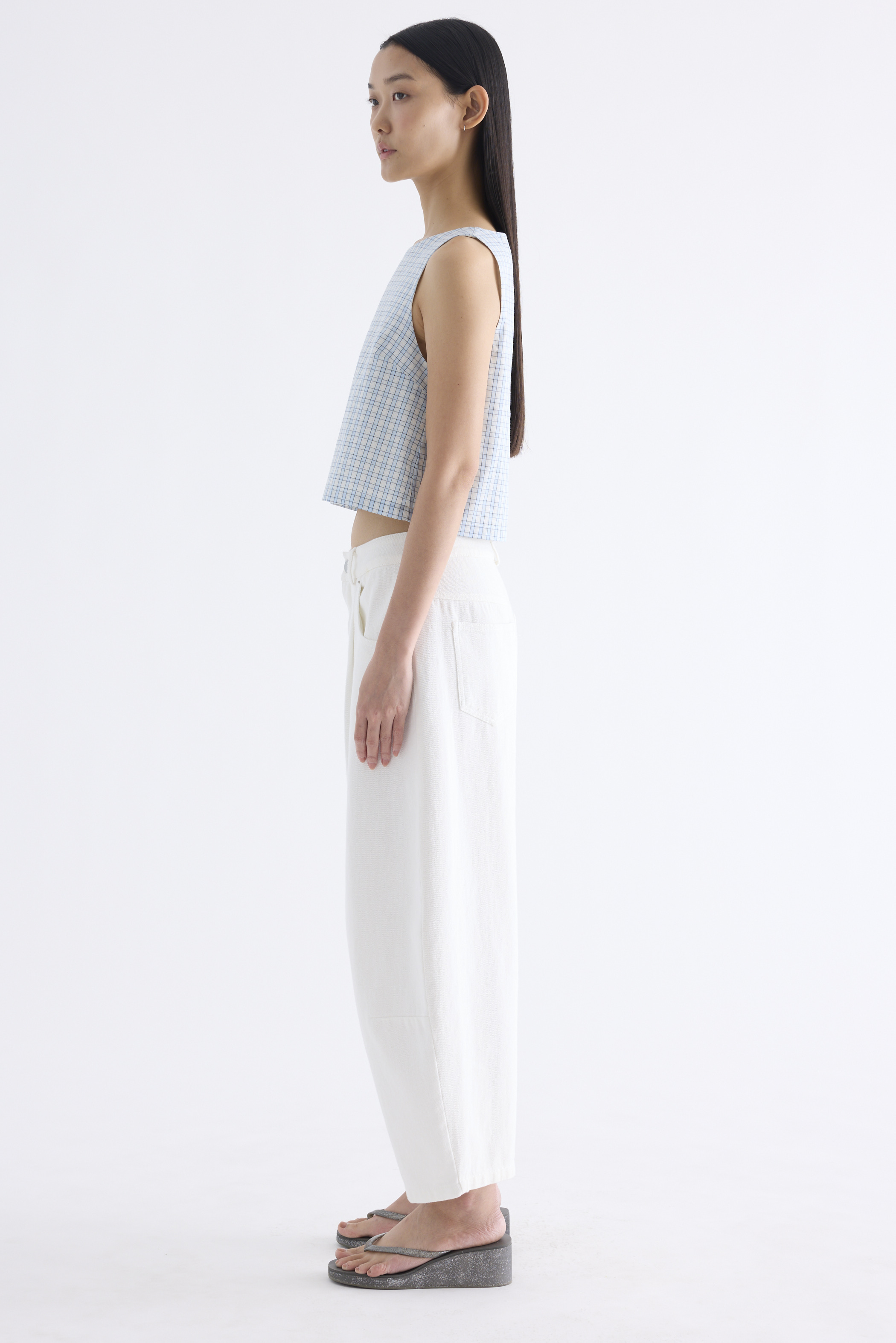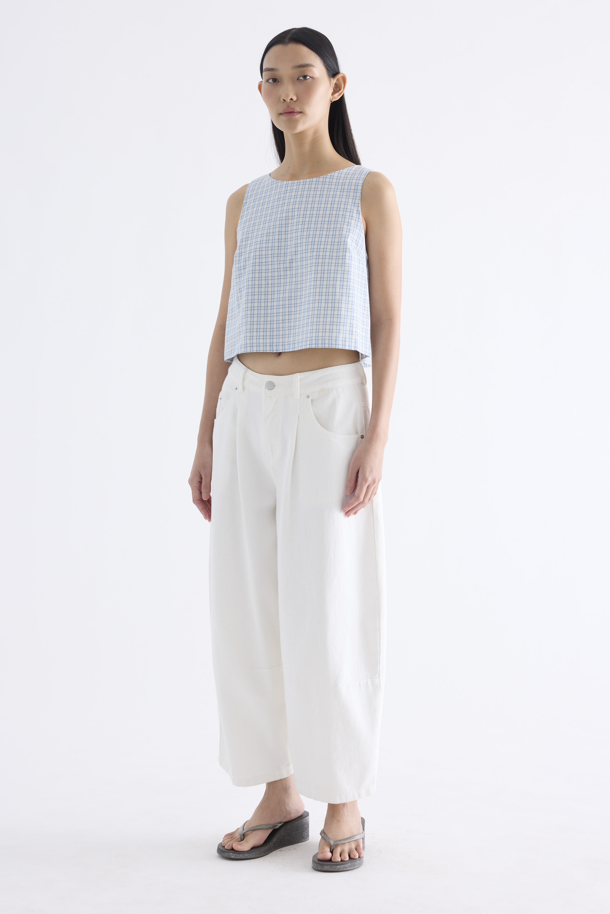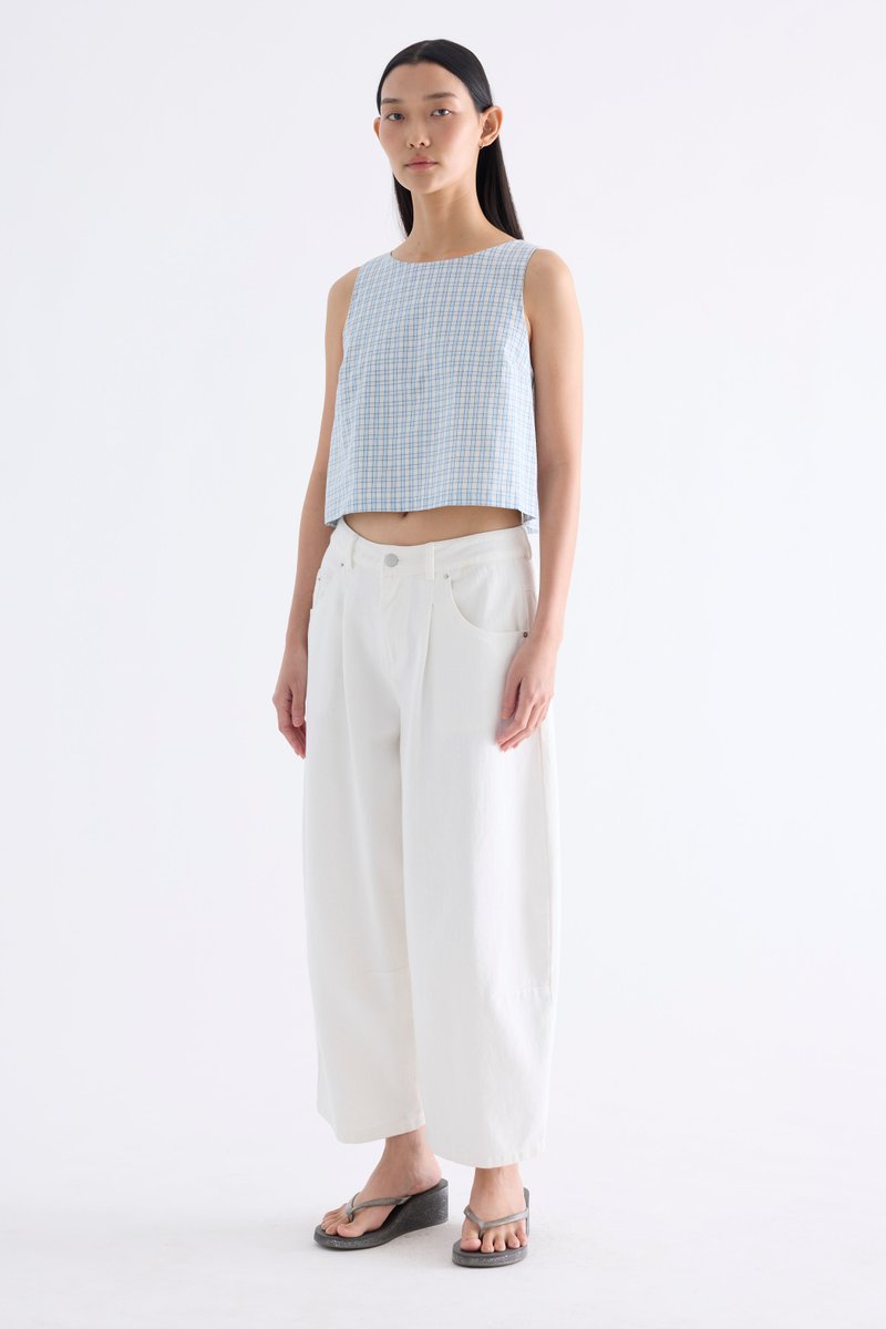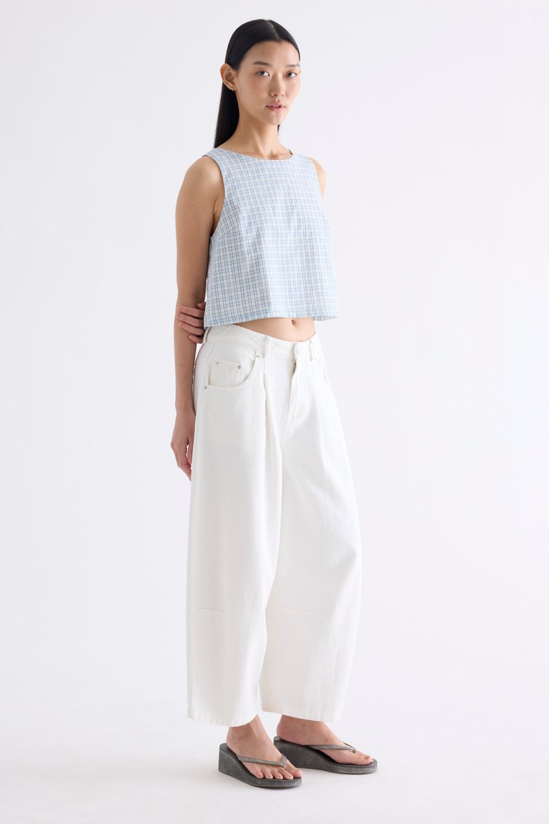 Clean lines. Made from airy and softly structured cotton, this sleeveless top features a round neckline and back buttons. Fits relaxed in a flattering boxy silhouette.