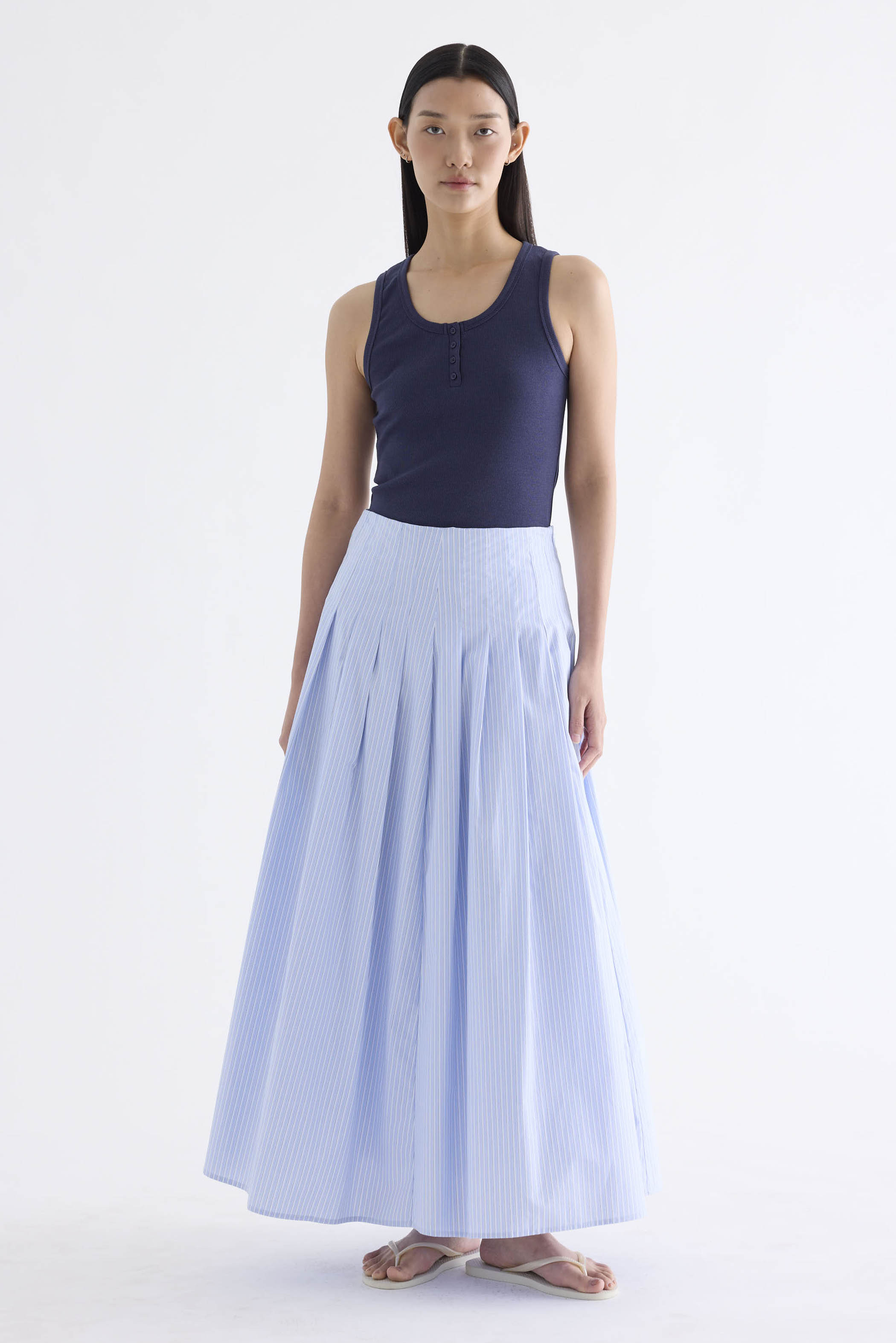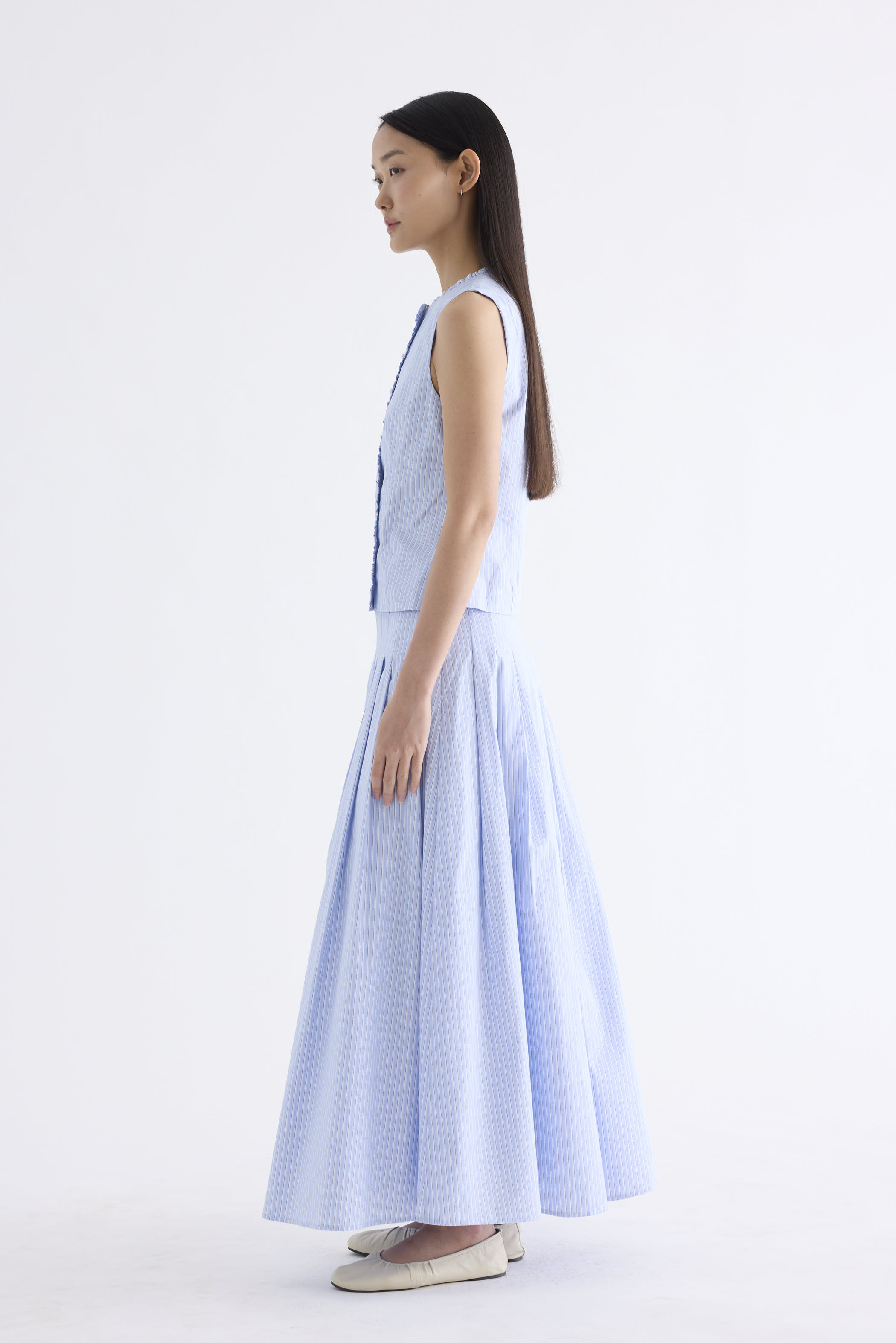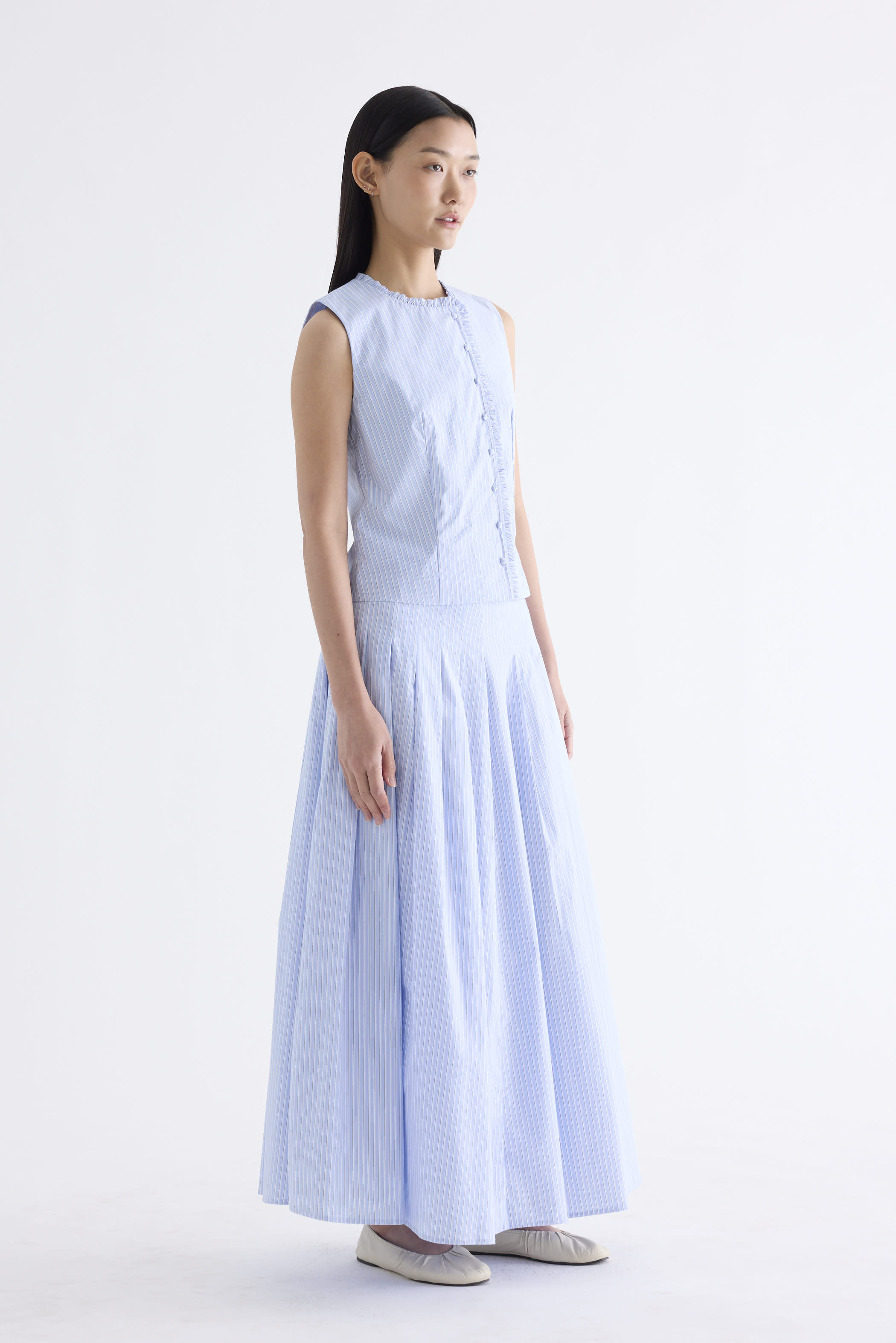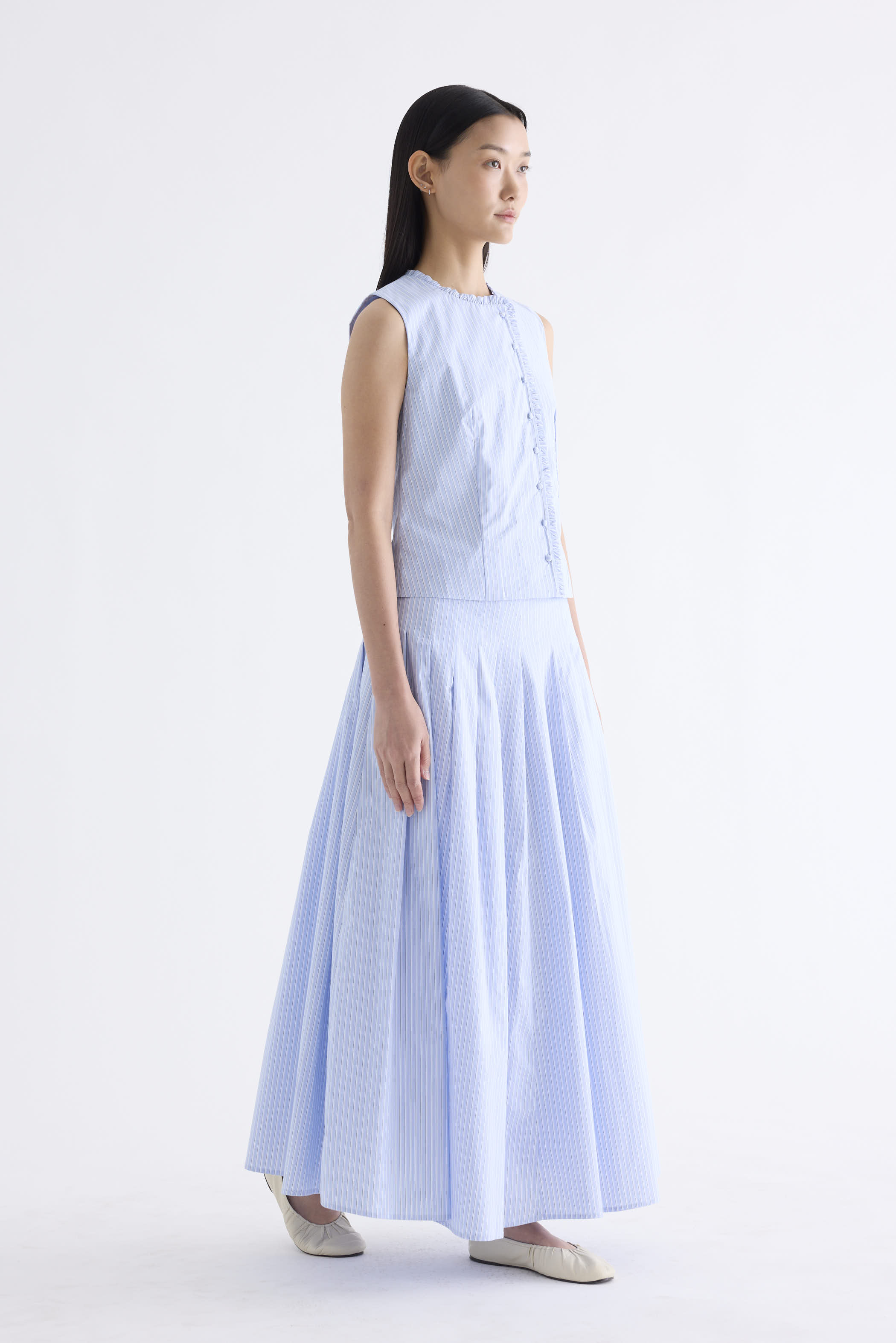 Textured and tailored. Made from crisp and softly structured cotton, this sleeveless top features a ruffle-trimmed round neckline and button-down front. Worn in a slim fit.