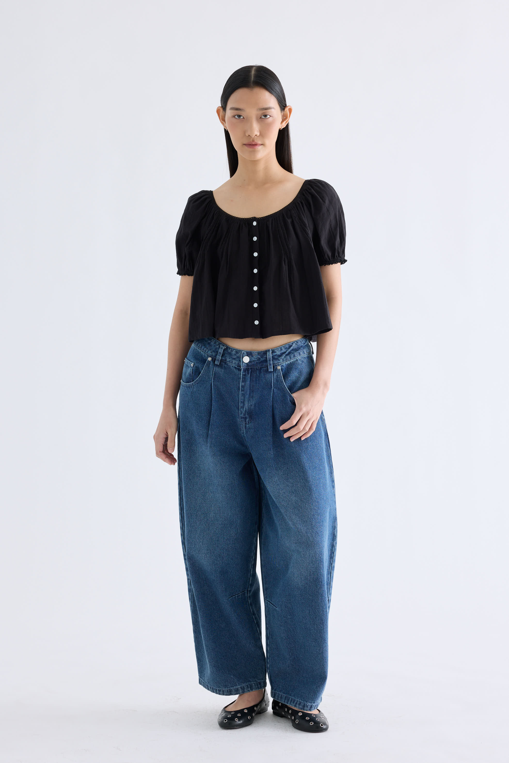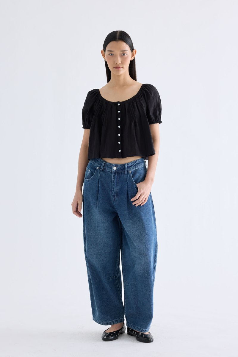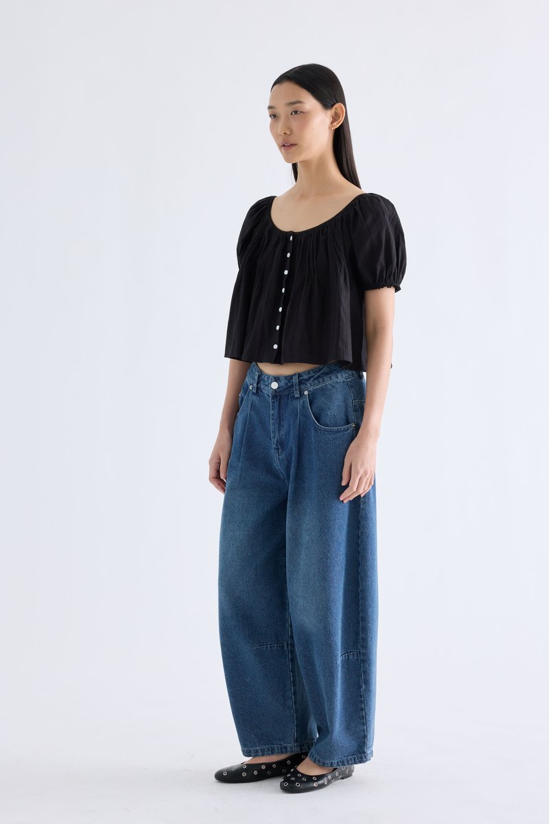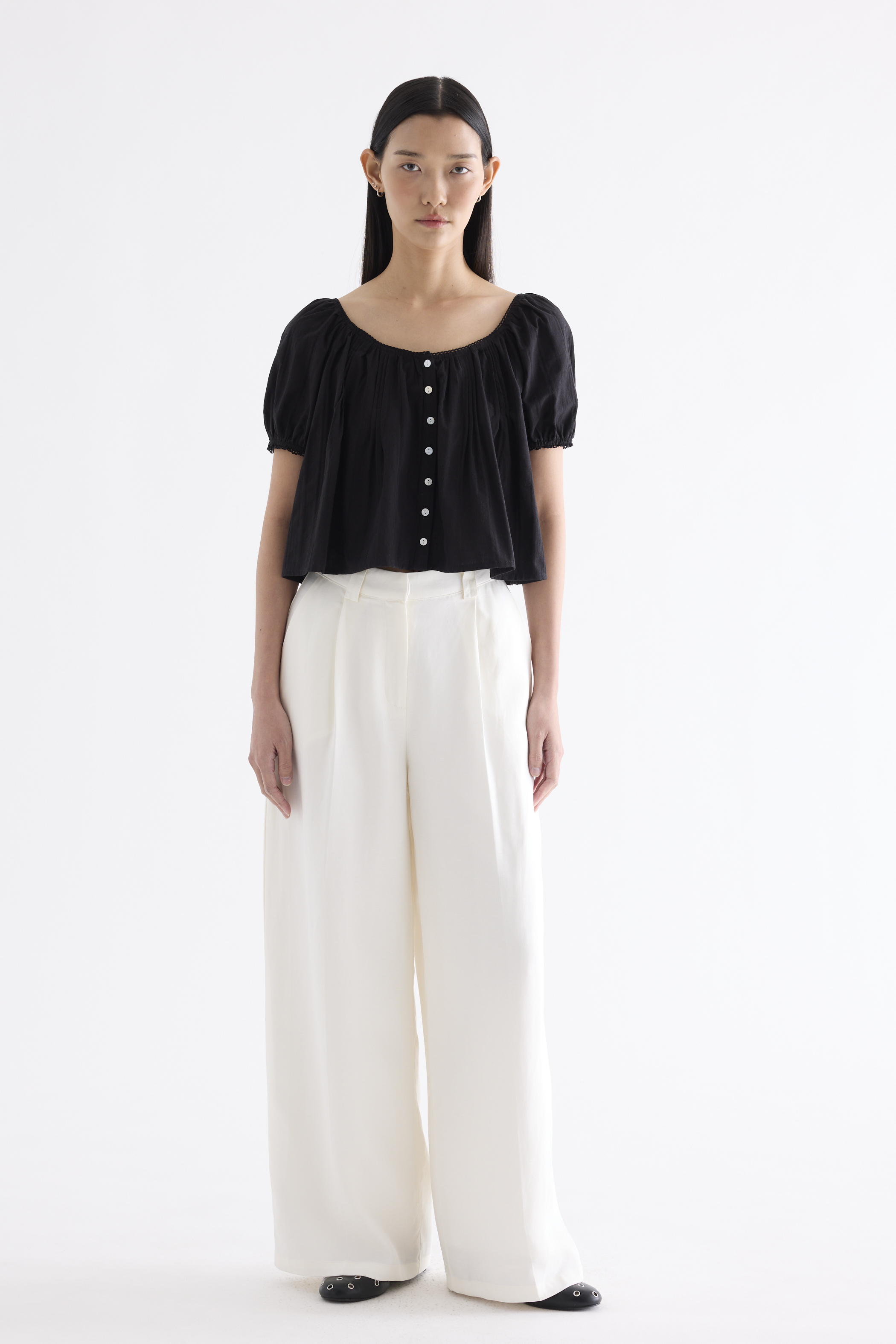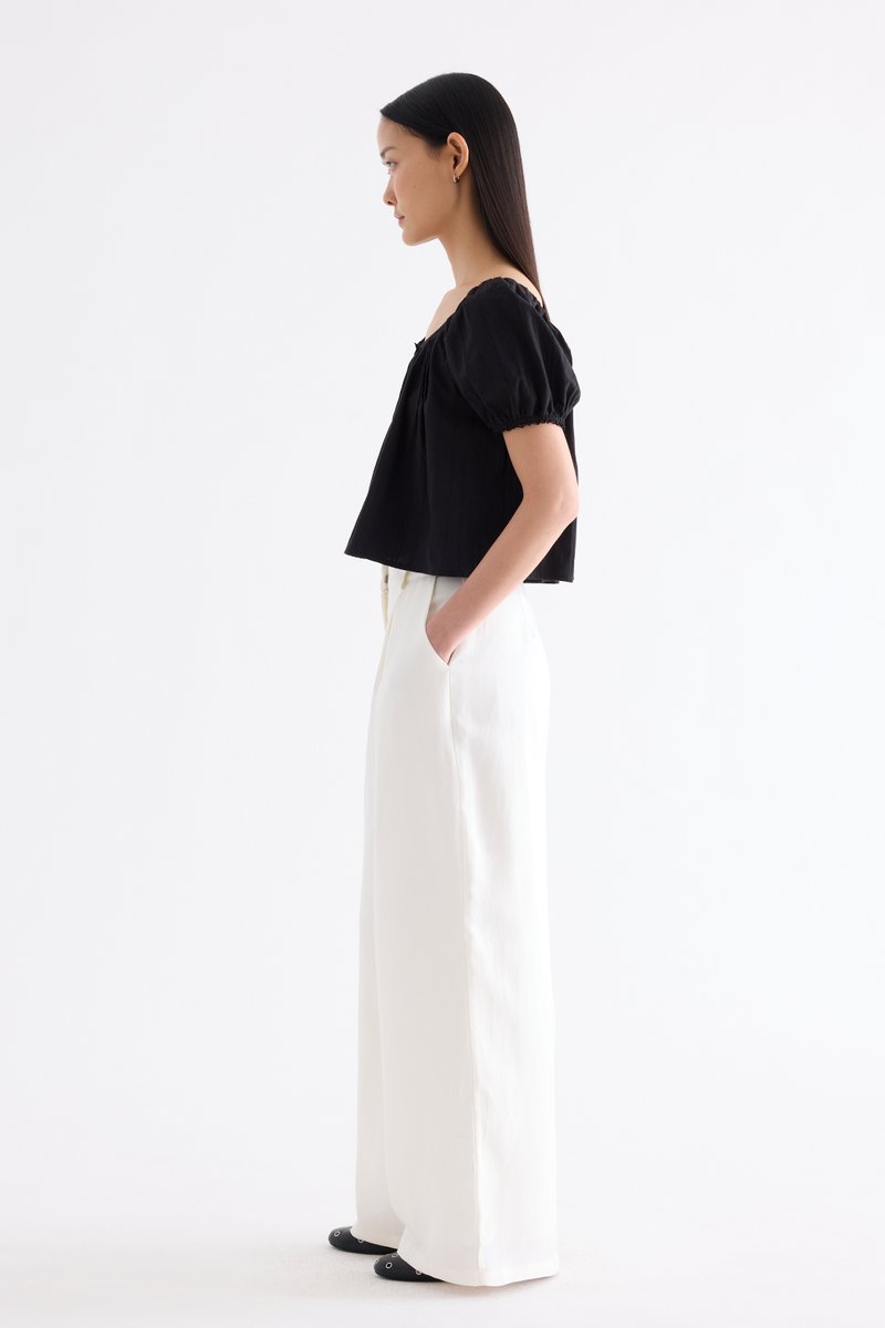 Volume up. Made from airy and striped cotton, this blouse features pleats, a lace-trimmed scoop neckline, short puffy sleeves with an elasticated lace-trimmed hem and a button-down front. Worn in a relaxed fit.