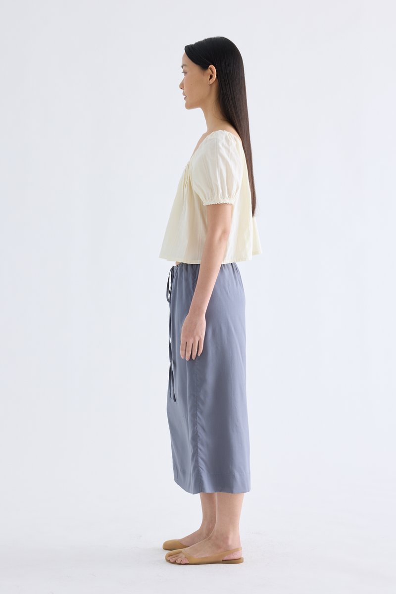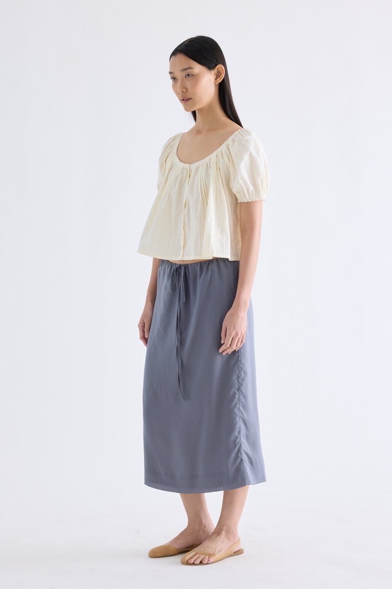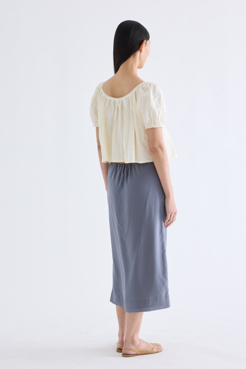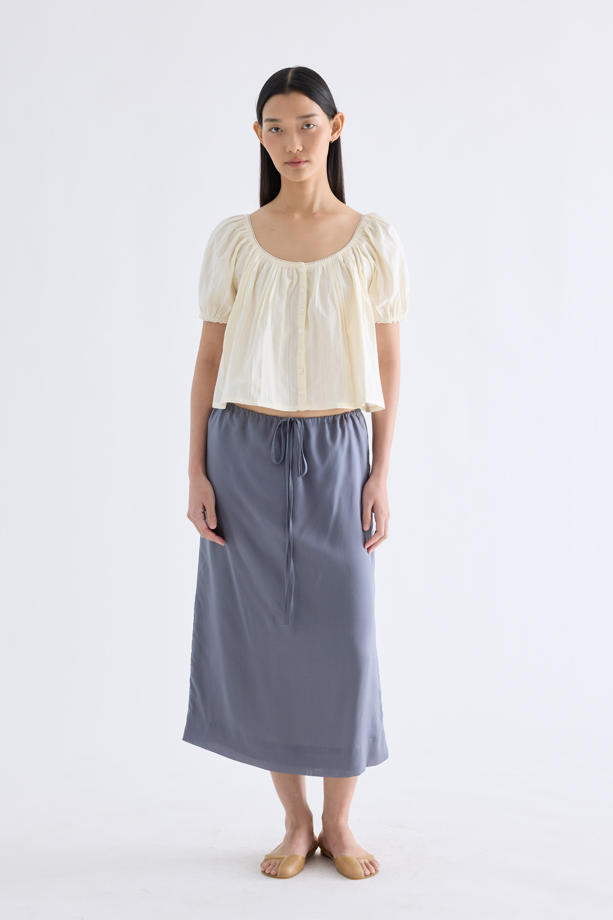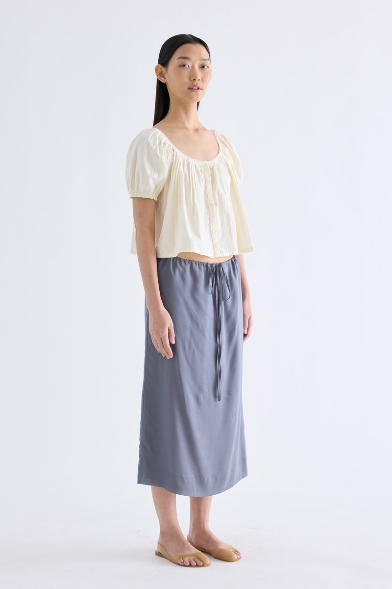 Volume up. Made from airy and striped cotton, this blouse features pleats, a lace-trimmed scoop neckline, short puffy sleeves with an elasticated lace-trimmed hem and a button-down front. Worn in a relaxed fit.