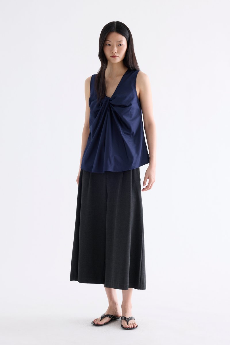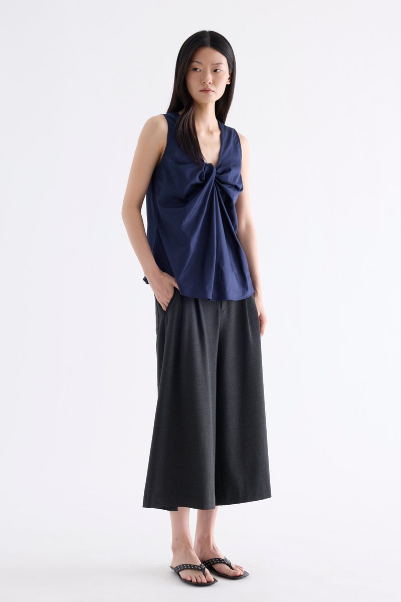 From the Postscript collection. Cut from fully lined cotton with a light and crisp finish, this sleeveless top features a V-neckline with a statement front twist, and a gently flared silhouette. Worn in a relaxed fit.