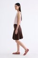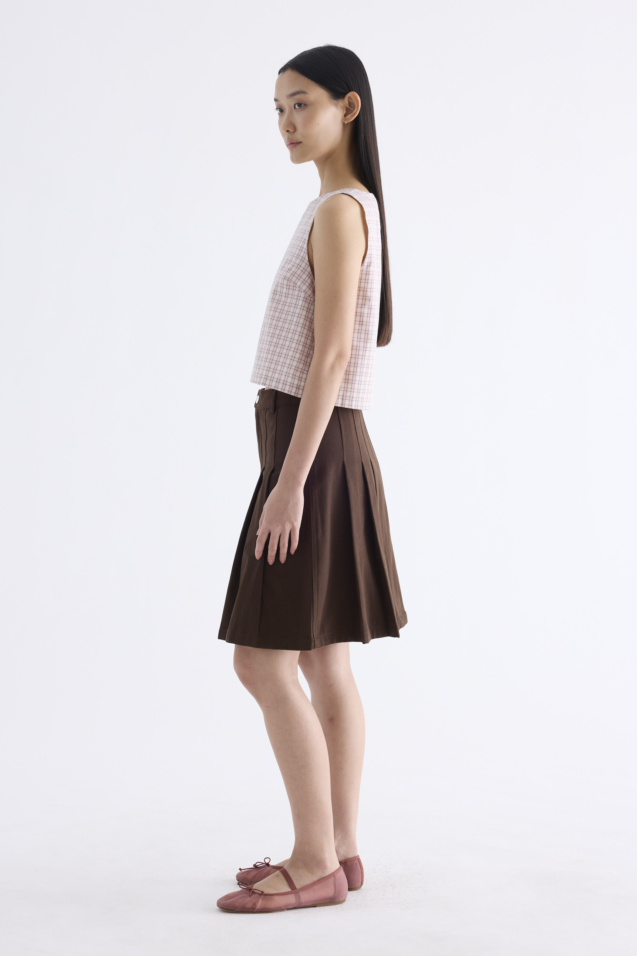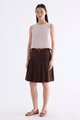 Feeling preppy. Made from softly structured cotton denim, this knee-length skirt features pleats, belt loops, and a front zip and button closure. Fits slim in an A-line silhouette.