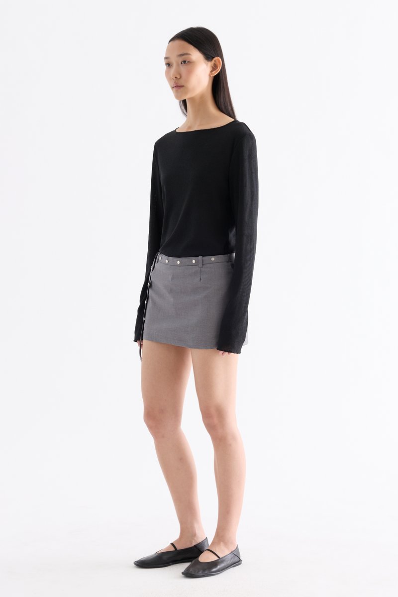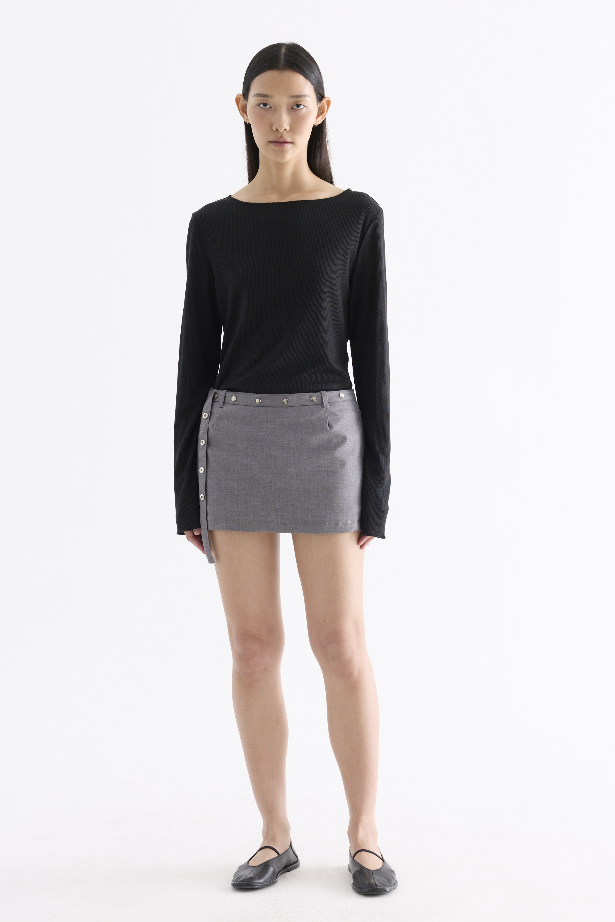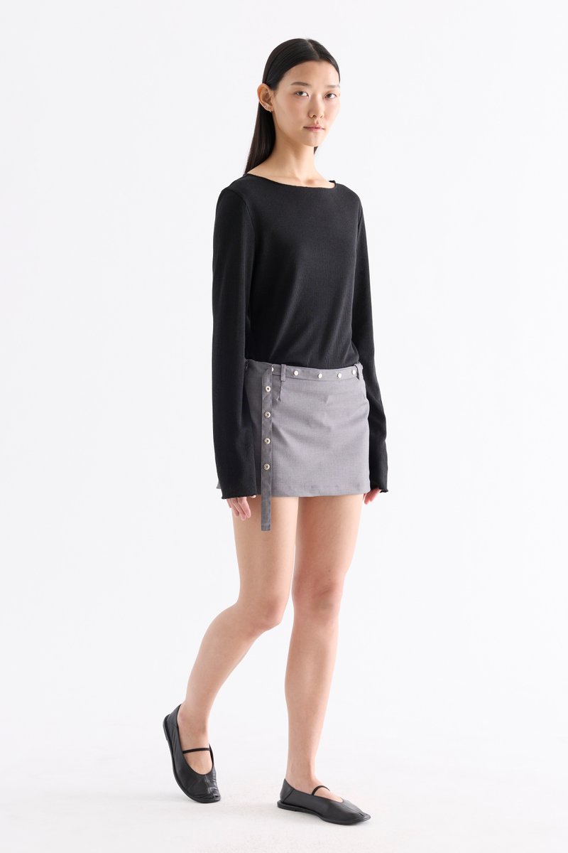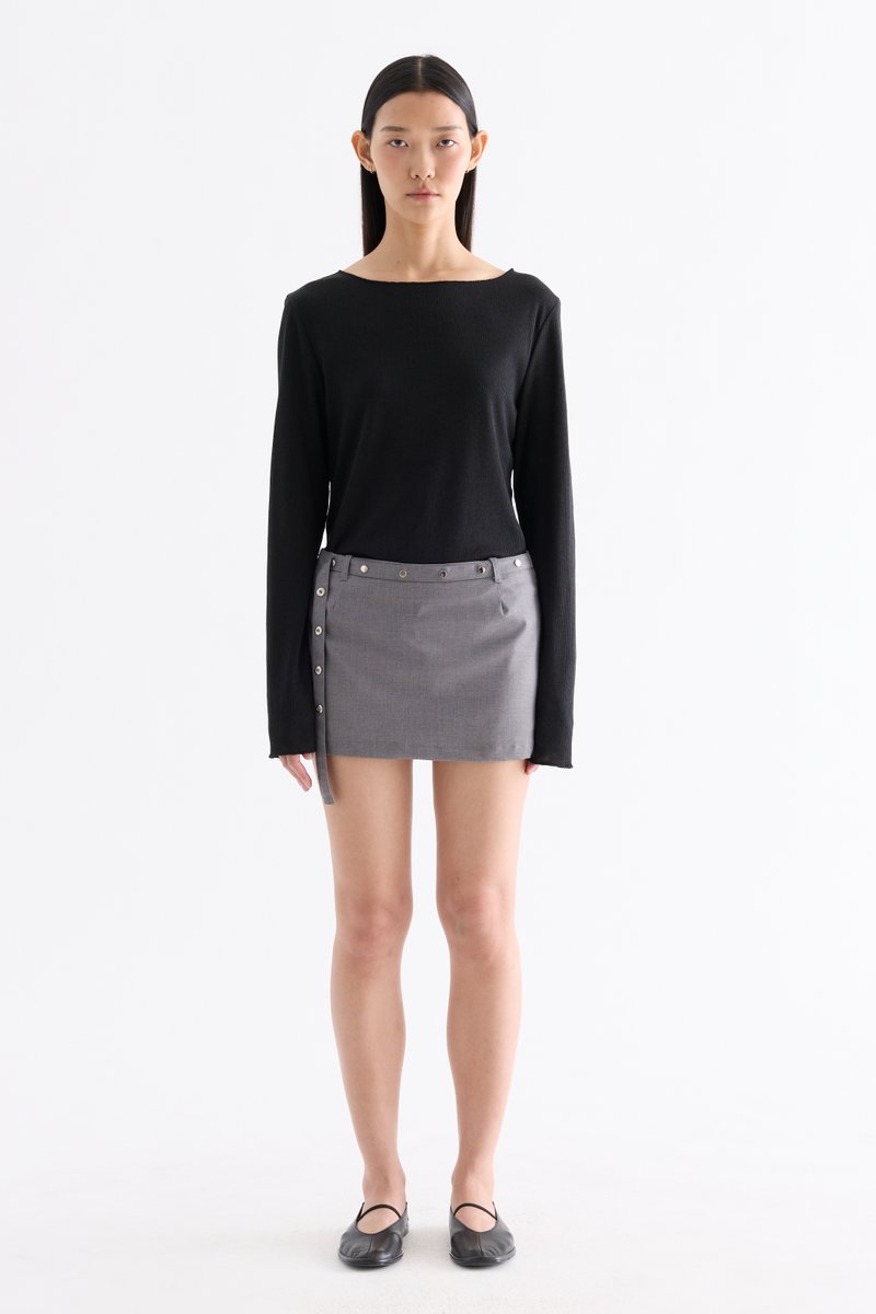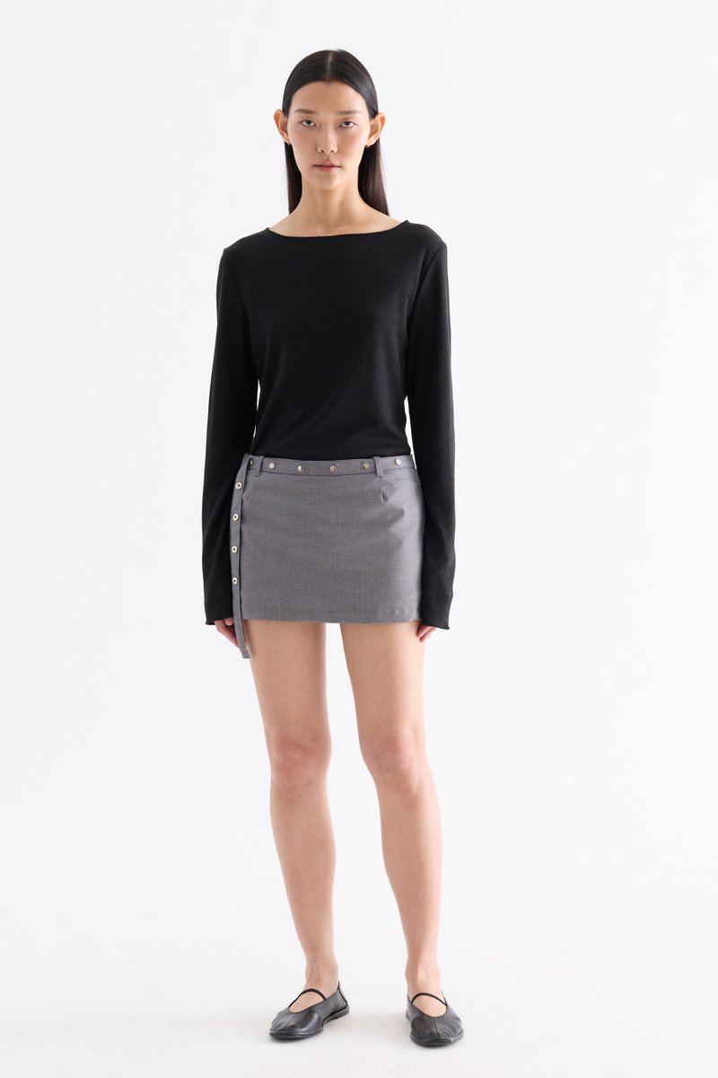 Three in one. Made from smooth and softly tailored cotton, these low-waisted skorts feature belt loops, a studded, non-detachable front belt, inner shorts and a side zip closure. Fits slim in a mini length.