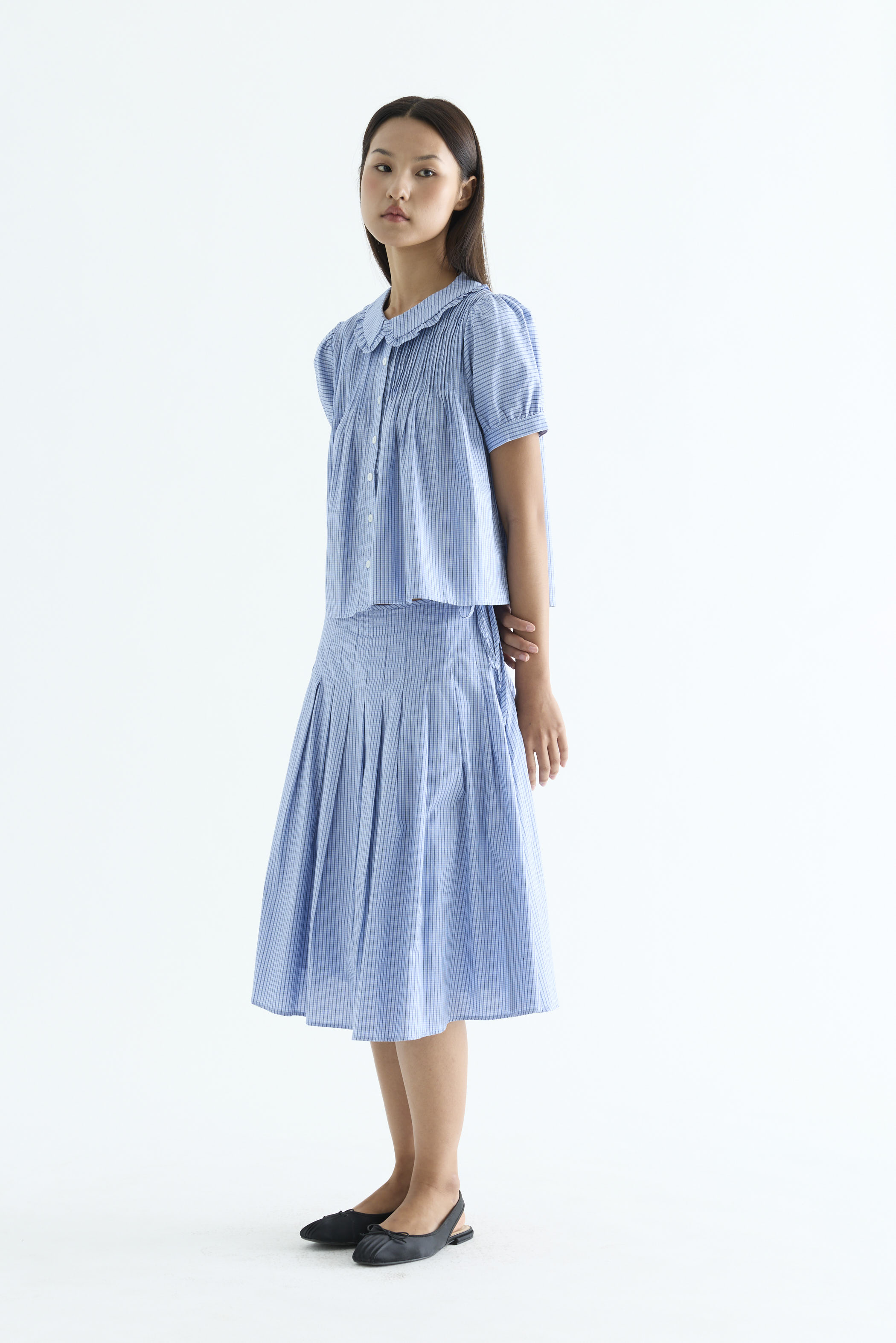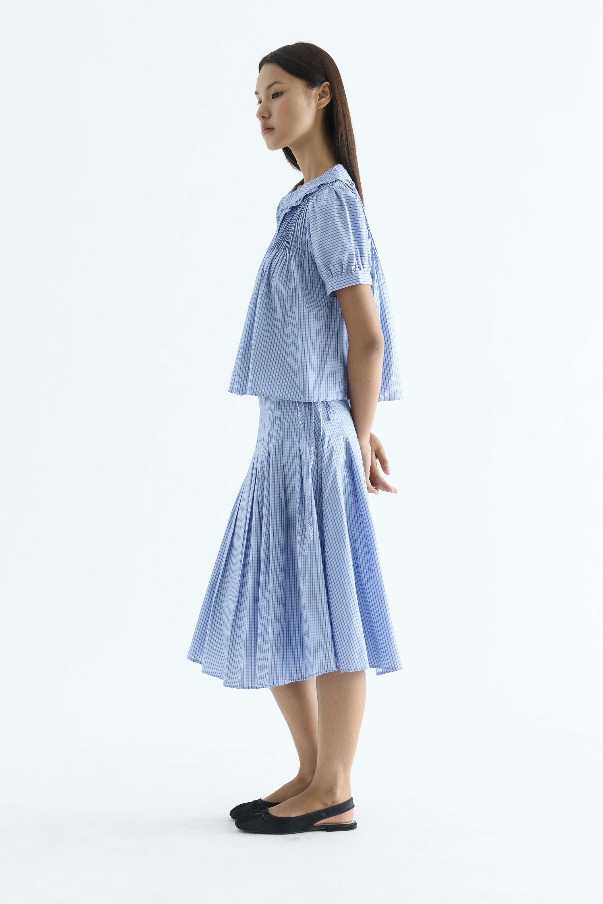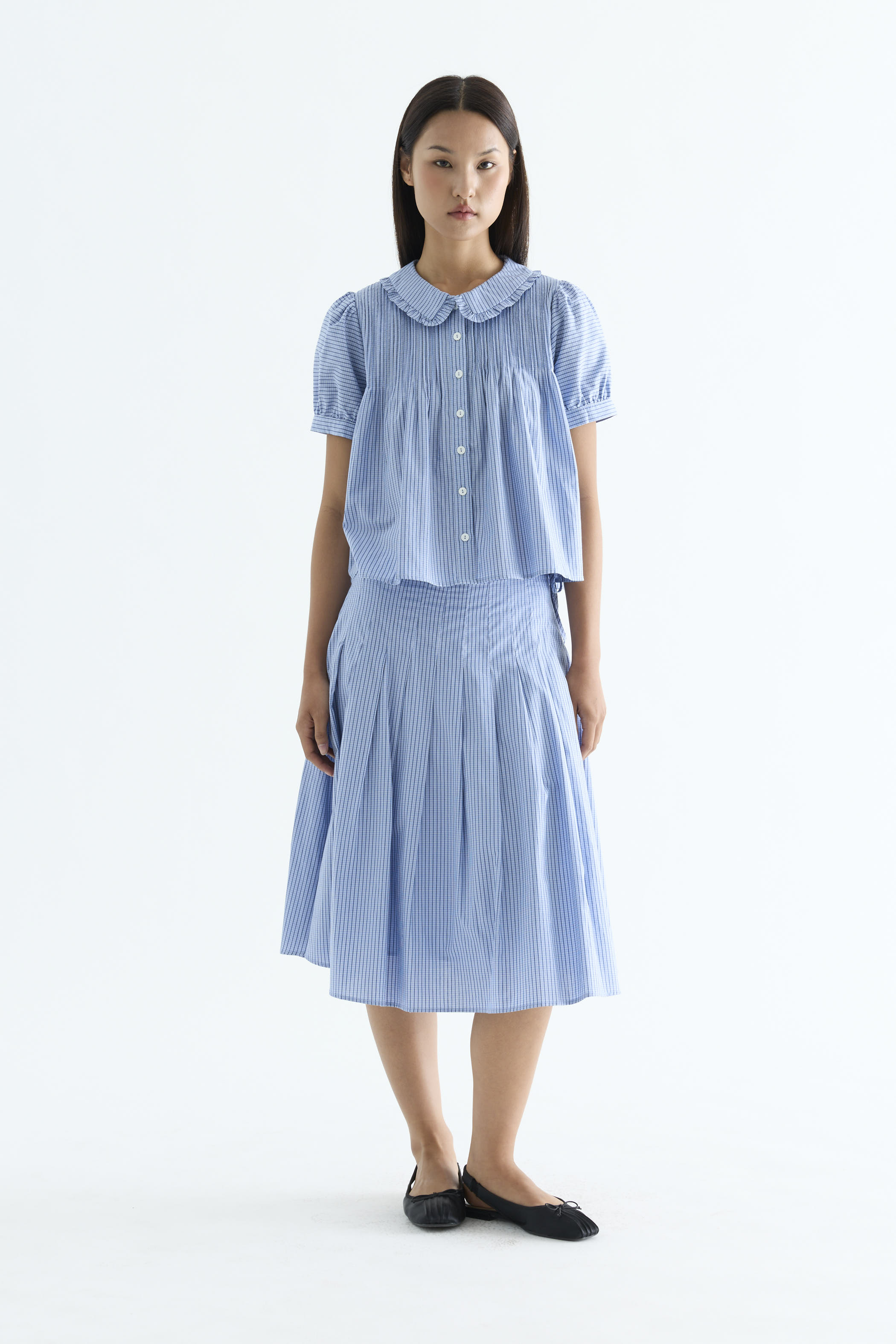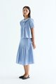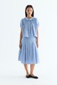 Feeling preppy. Made from crisp and softly structured cotton, this knee-length skirt features pleats, a waist tie-strap and a side zip closure. Fits slim in an A-line silhouette.