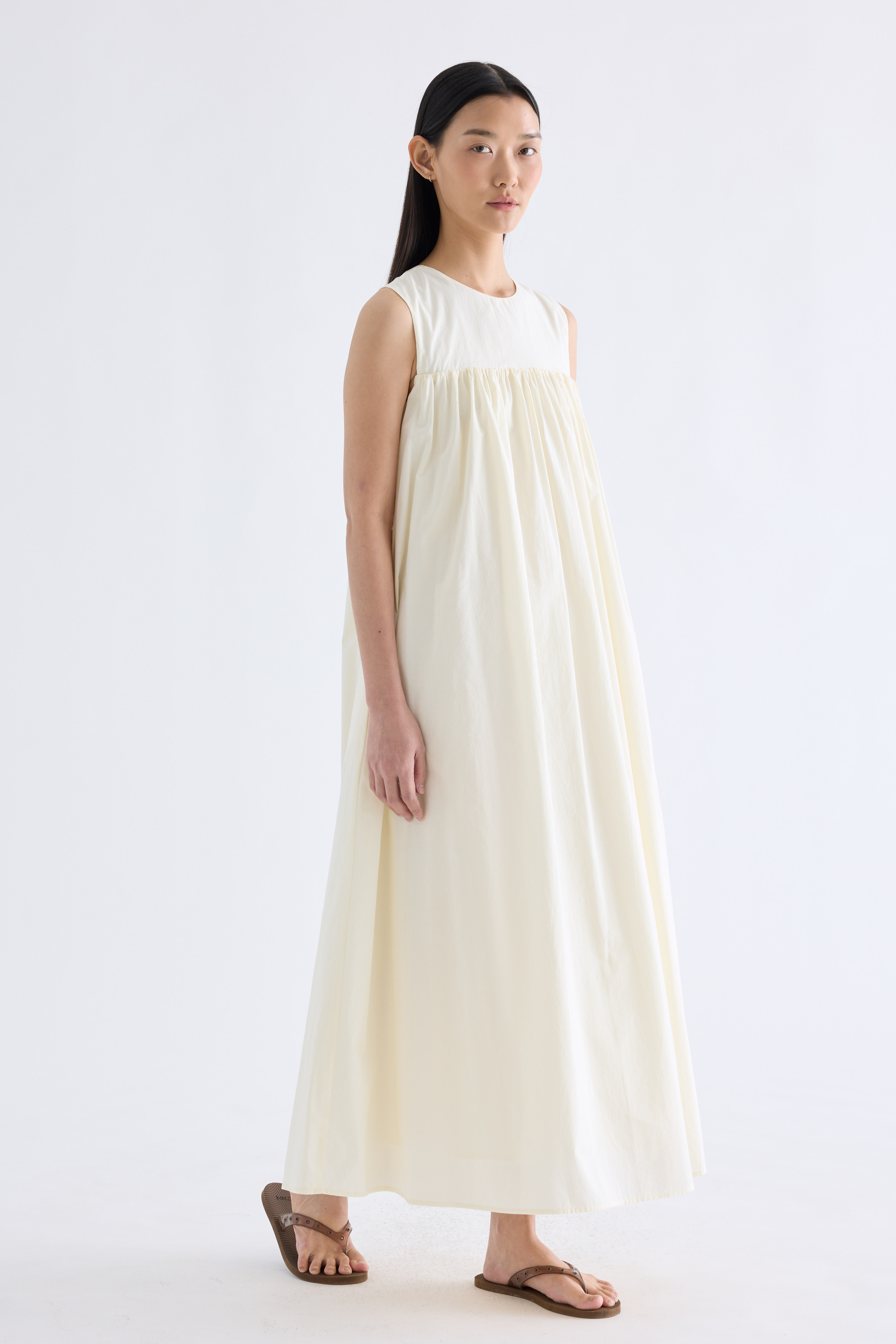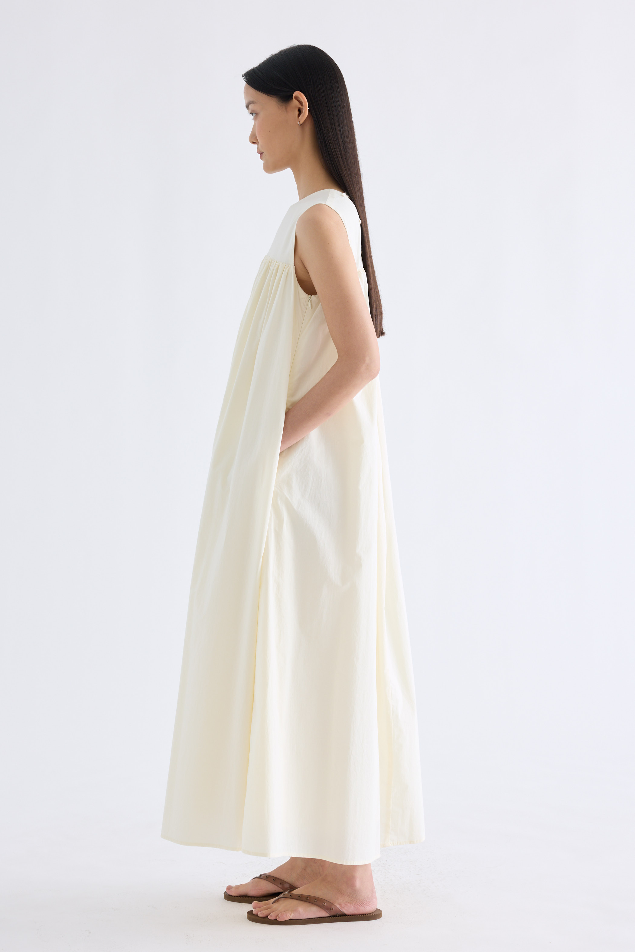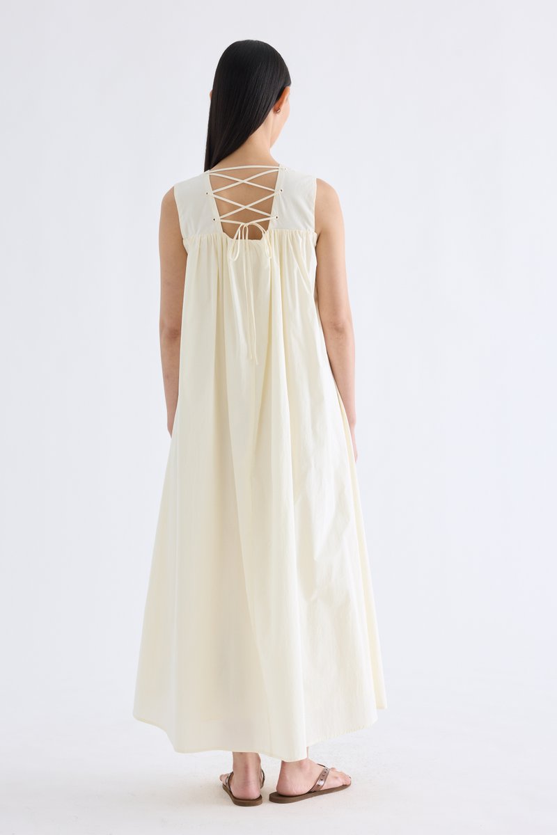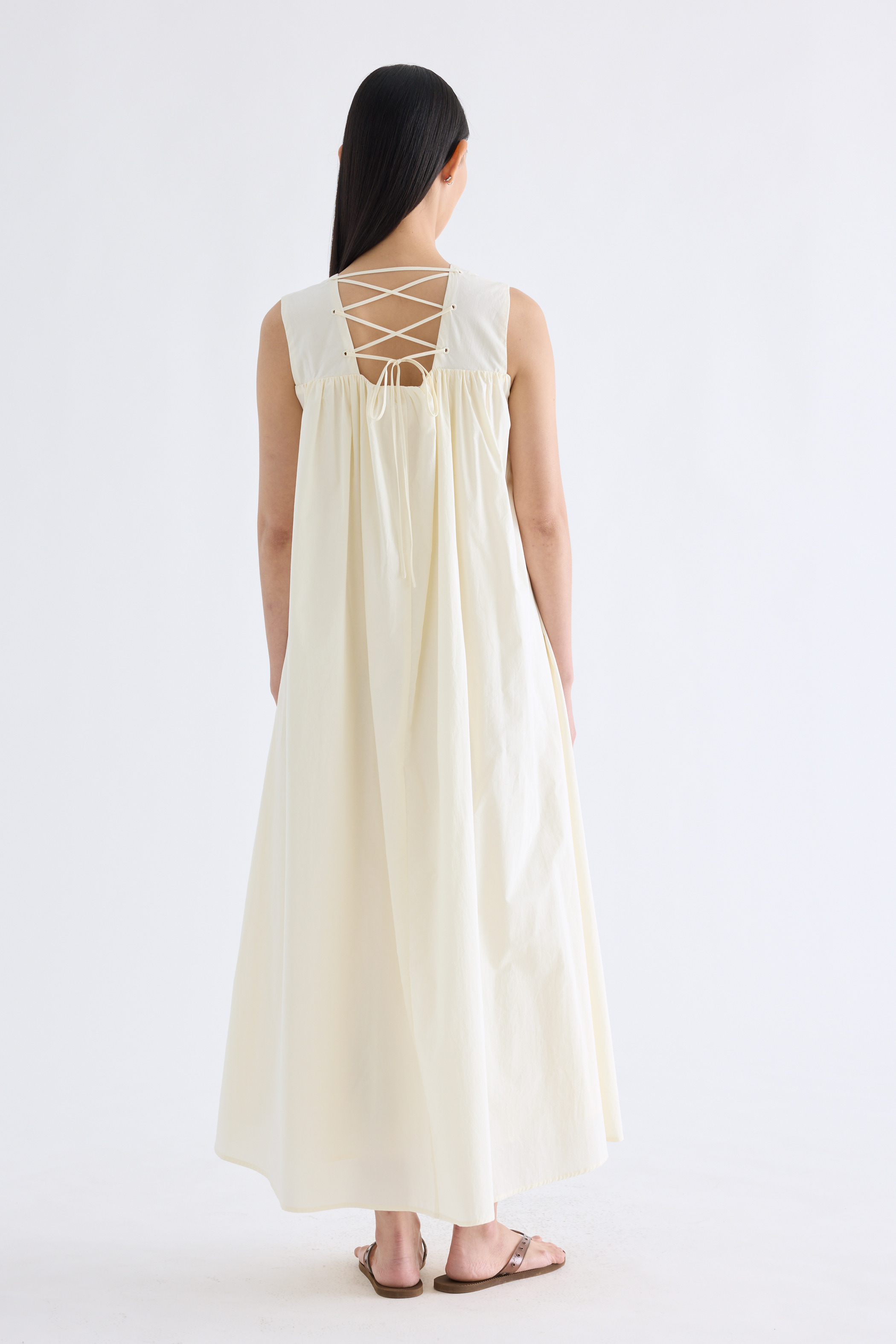 With an element of surprise. Made from crisp and airy cotton, this sleeveless maxi dress features a round neckline, laced-up back tie-straps and side zip closure. Fits relaxed in a gathered tent silhouette.