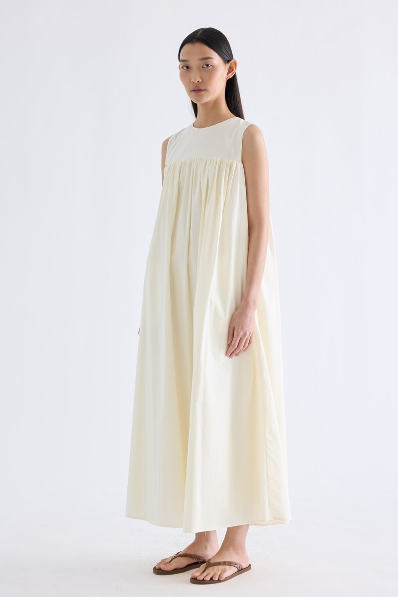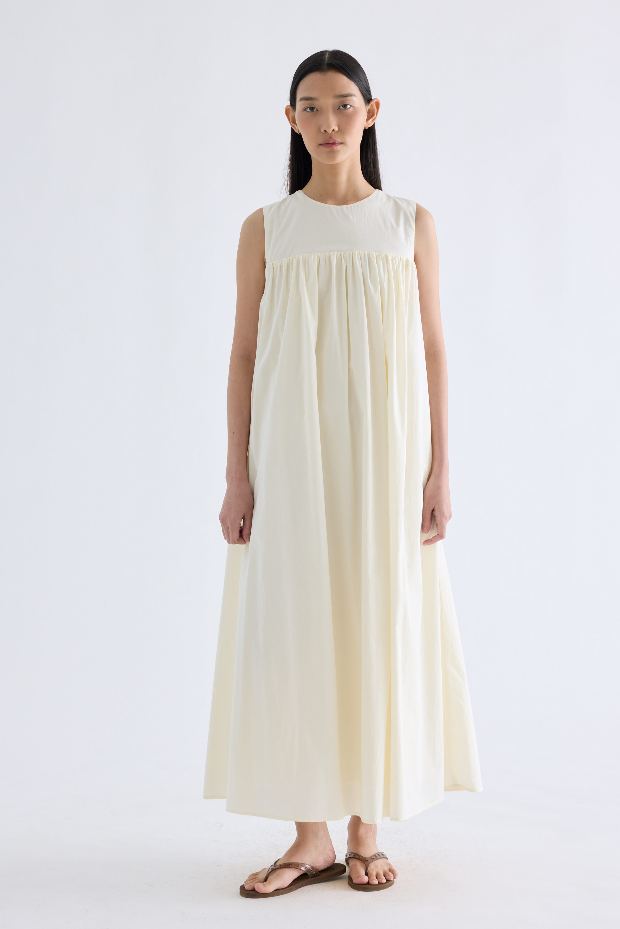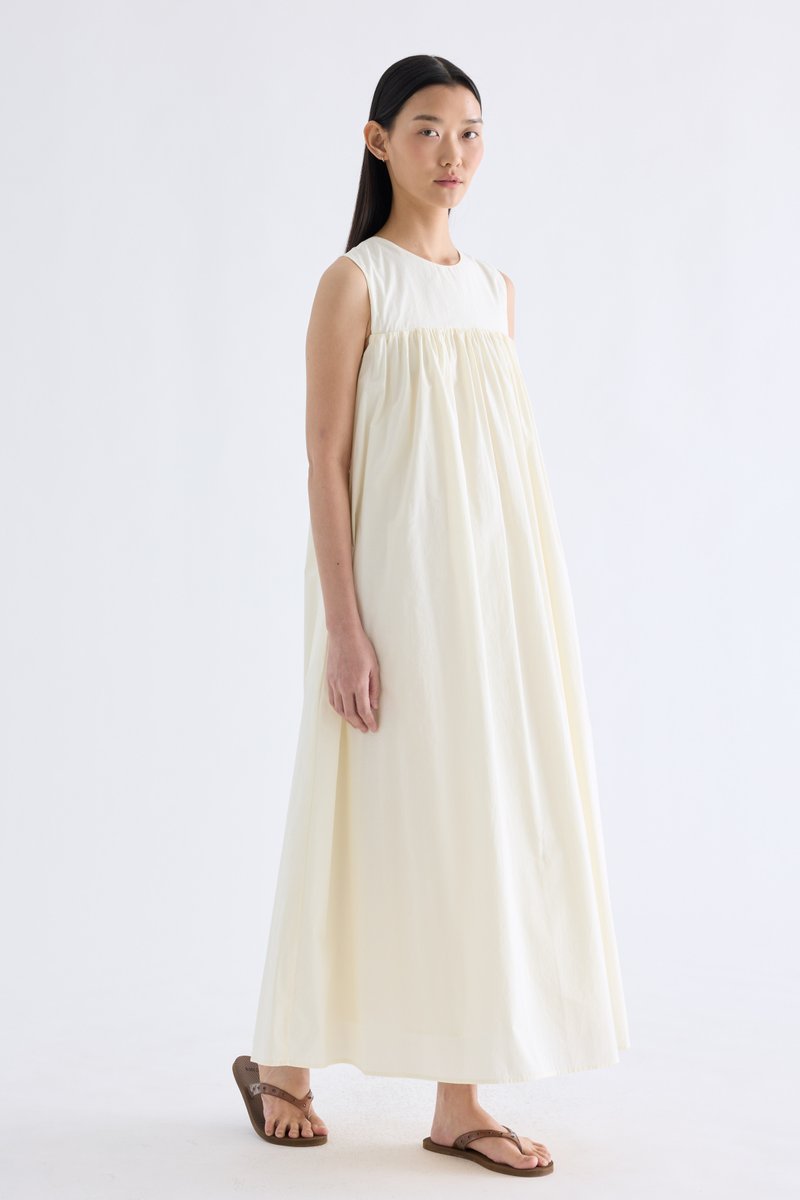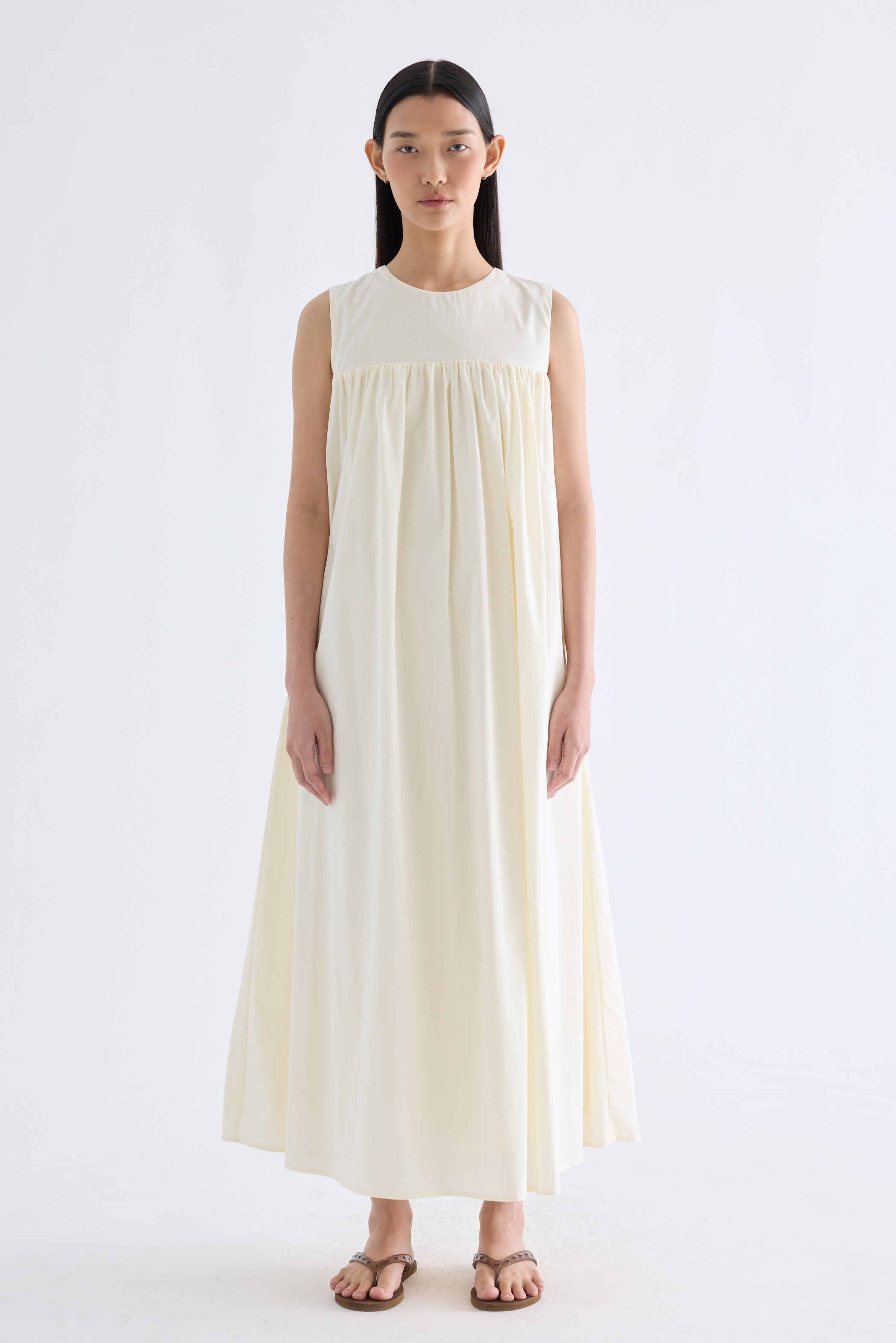 With an element of surprise. Made from crisp and airy cotton, this sleeveless maxi dress features a round neckline, laced-up back tie-straps and side zip closure. Fits relaxed in a gathered tent silhouette.