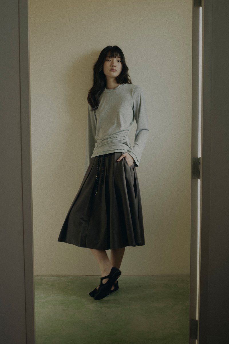 Made from soft and comfy fabric, this long-sleeved top features a round neckline, contrast trim and side draping. Worn in a relaxed fit.