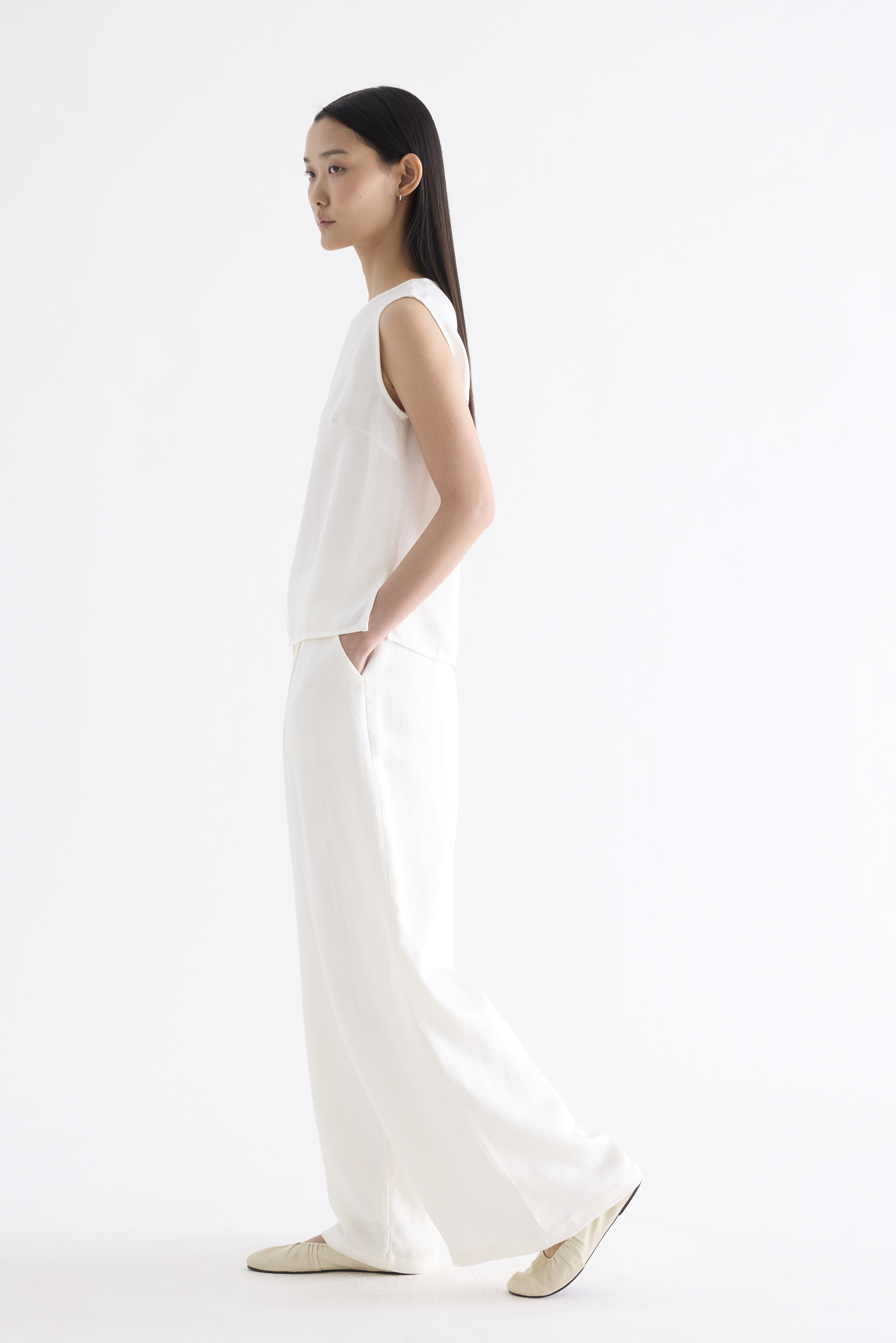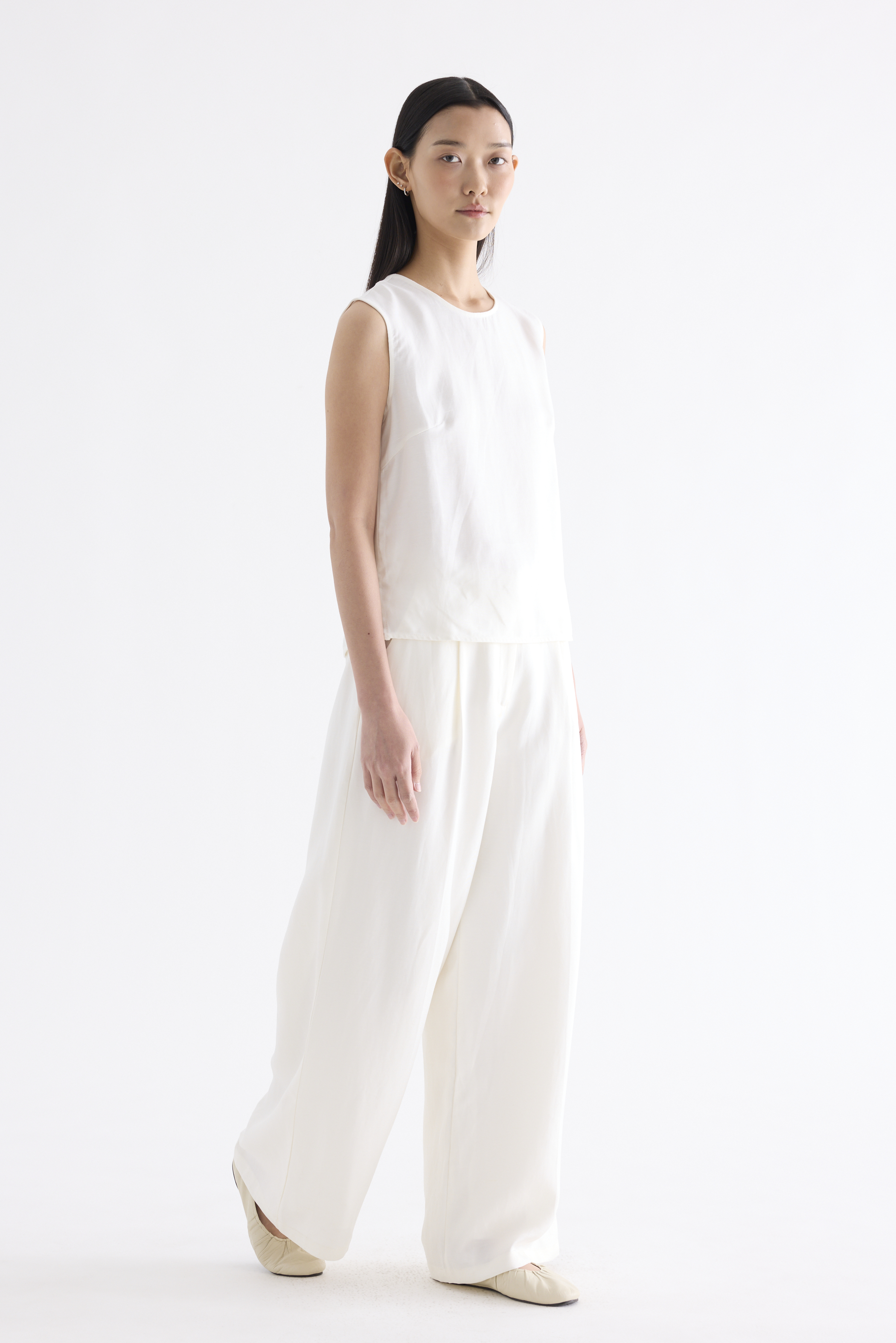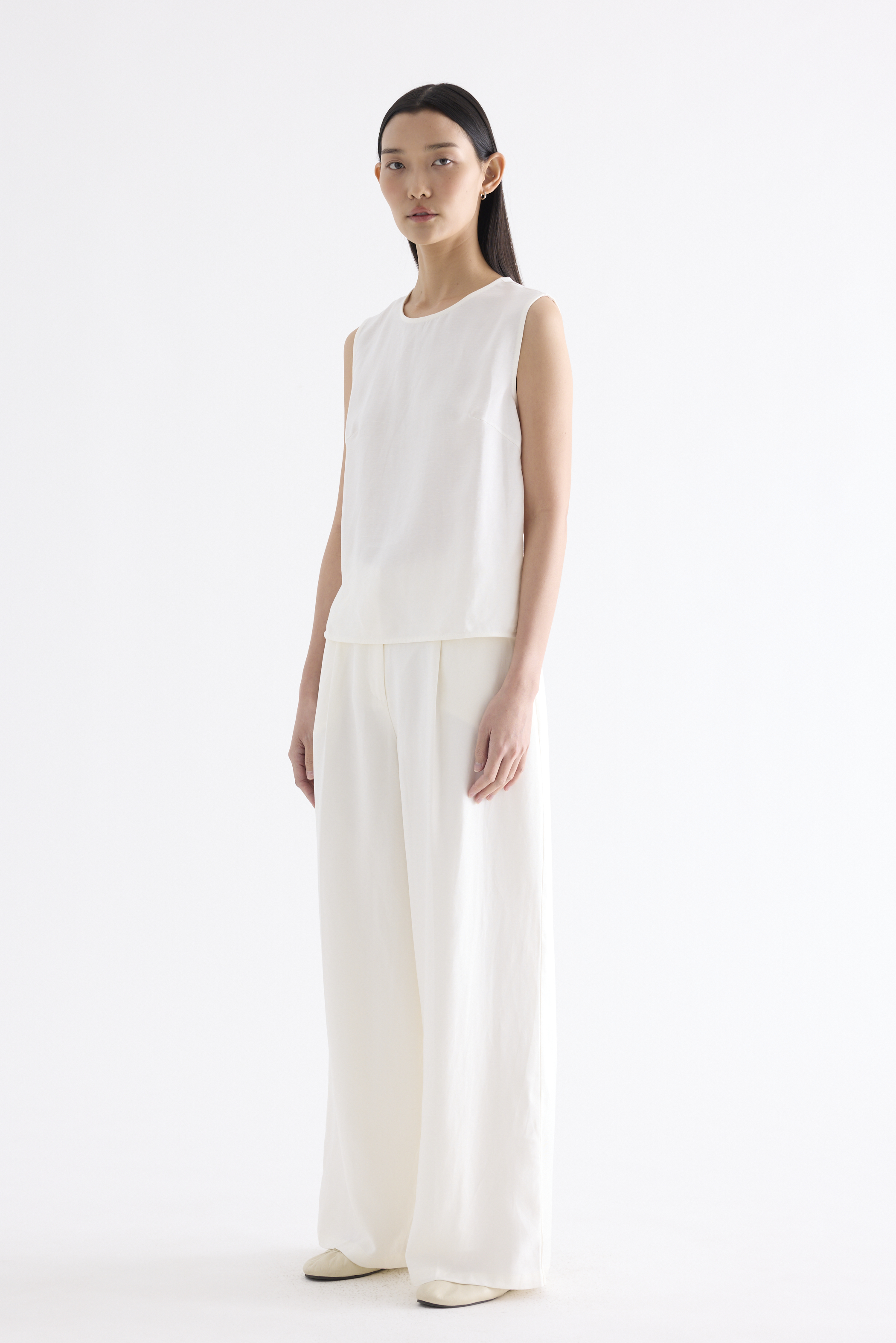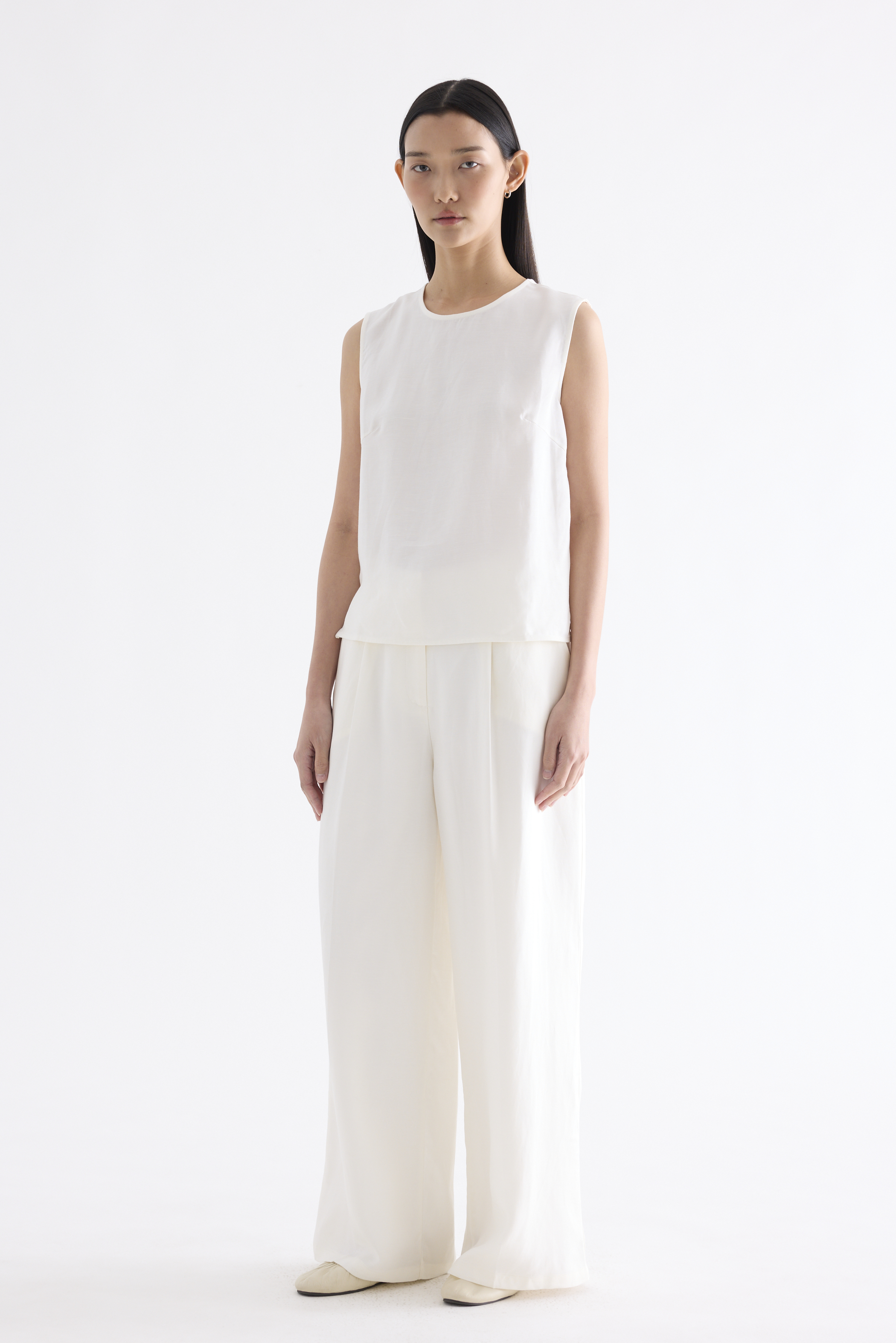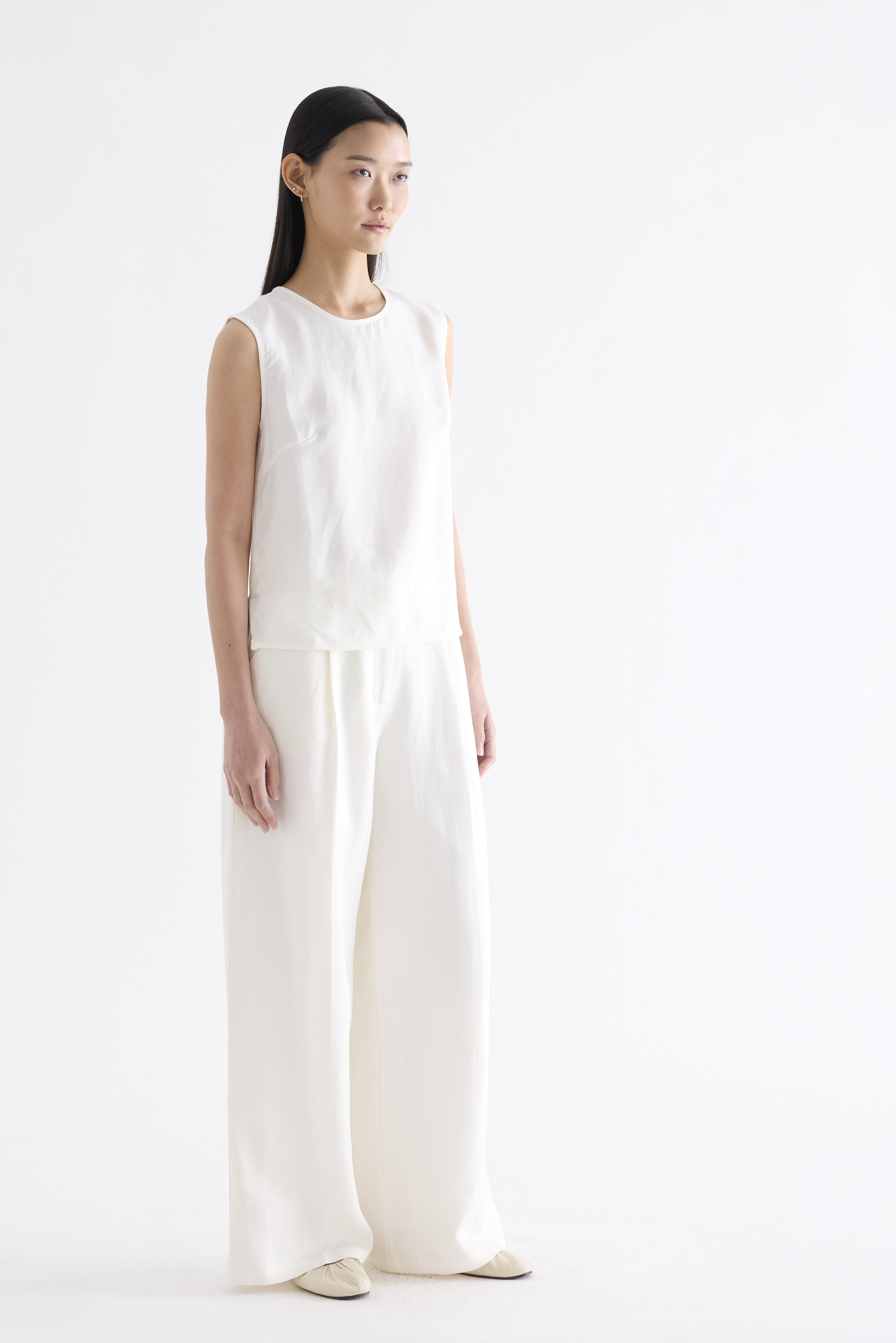 A mix-and-match favourite. Cut from light and softly tailored fabric, this sleeveless top features a round neckline, side splits and a back keyhole opening with a tie-strap closure. Worn in a relaxed fit.
