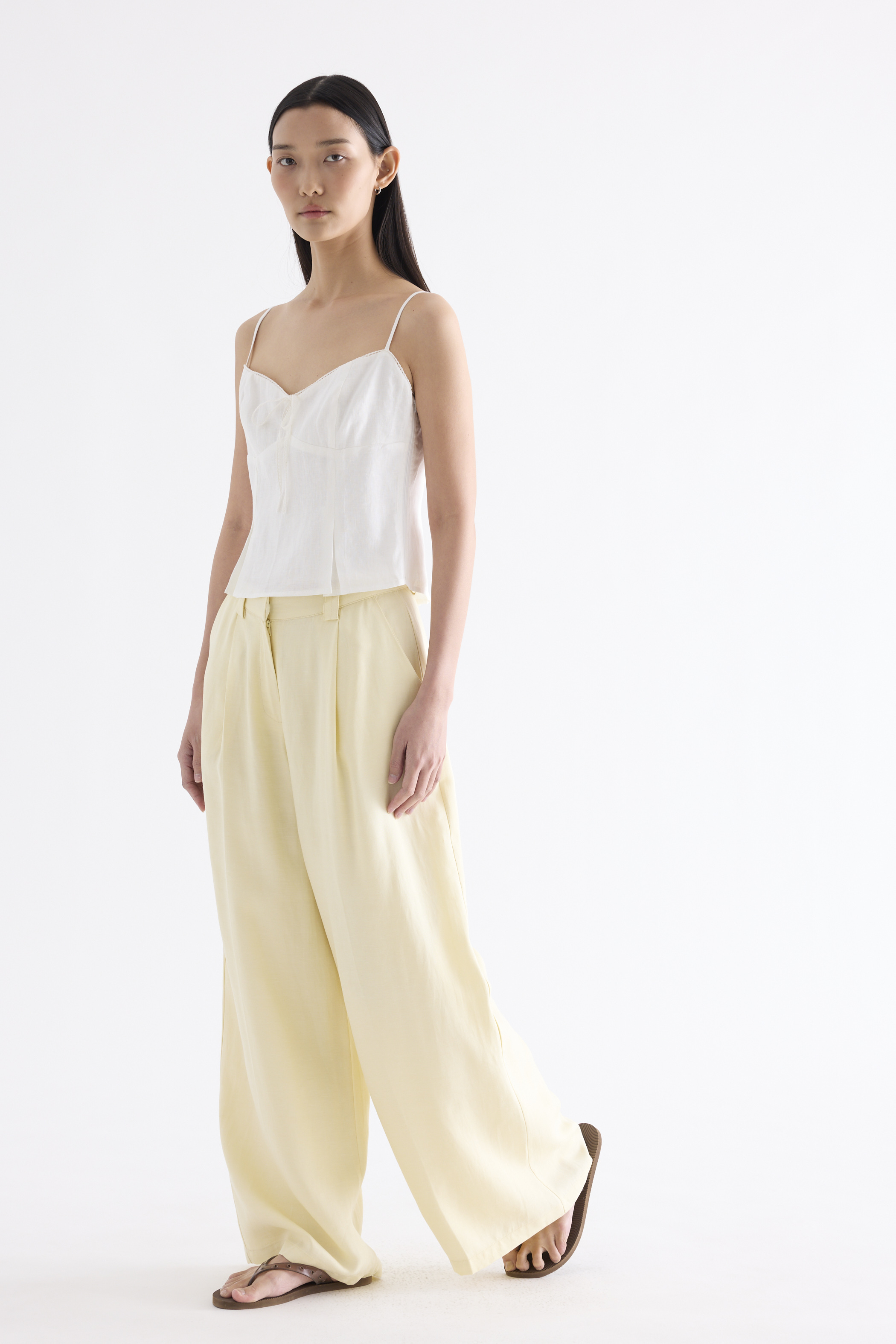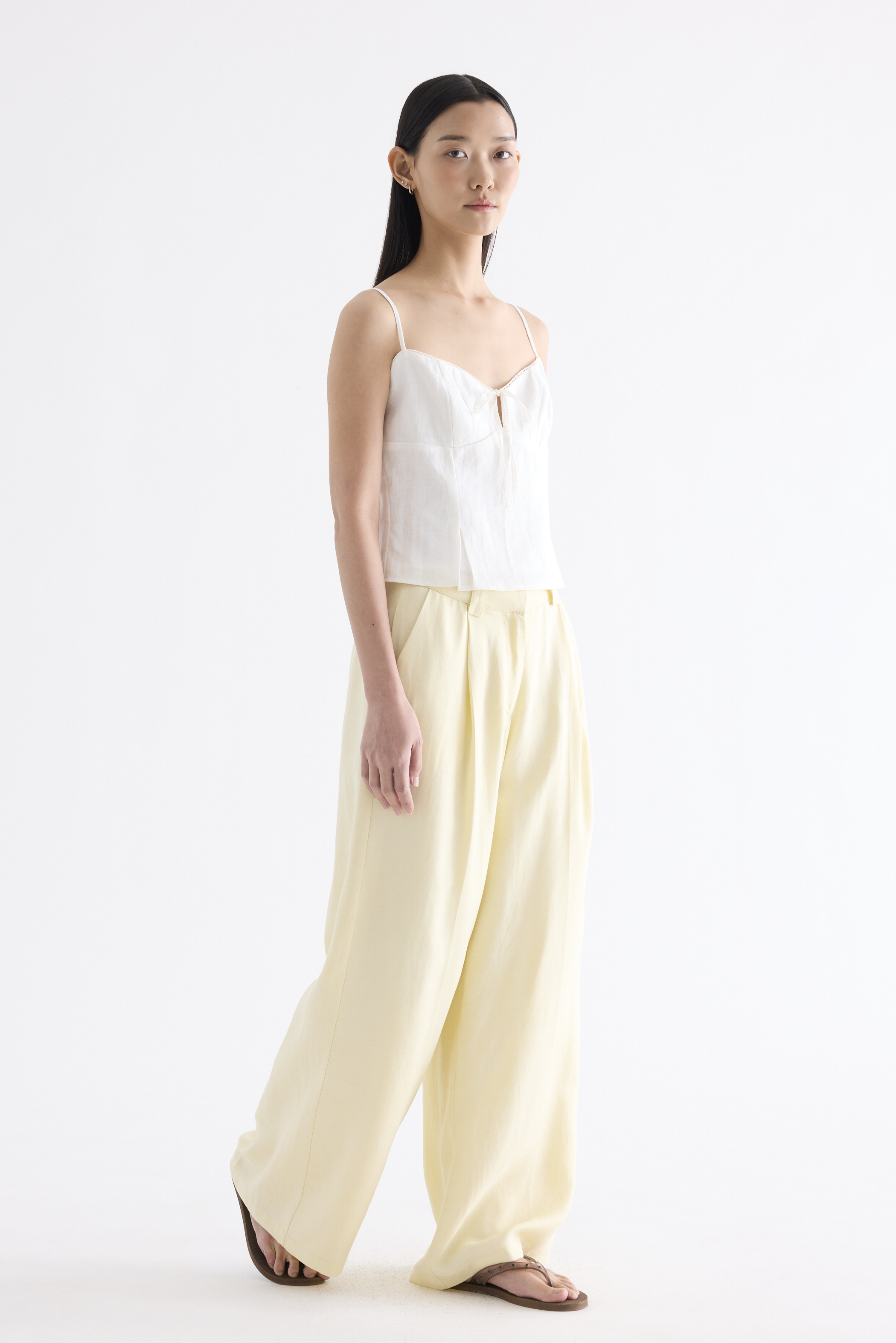This piece is made from 100% linen, the unsung hero of hot days and one of the least environmentally damaging fabrics. Derived from the unfussy flax plant, not only does its cultivation consume significantly less water, pesticides and arable land — but linen’s excellent durability and biodegradable nature also means your clothes have a longer, more waste-free life cycle.