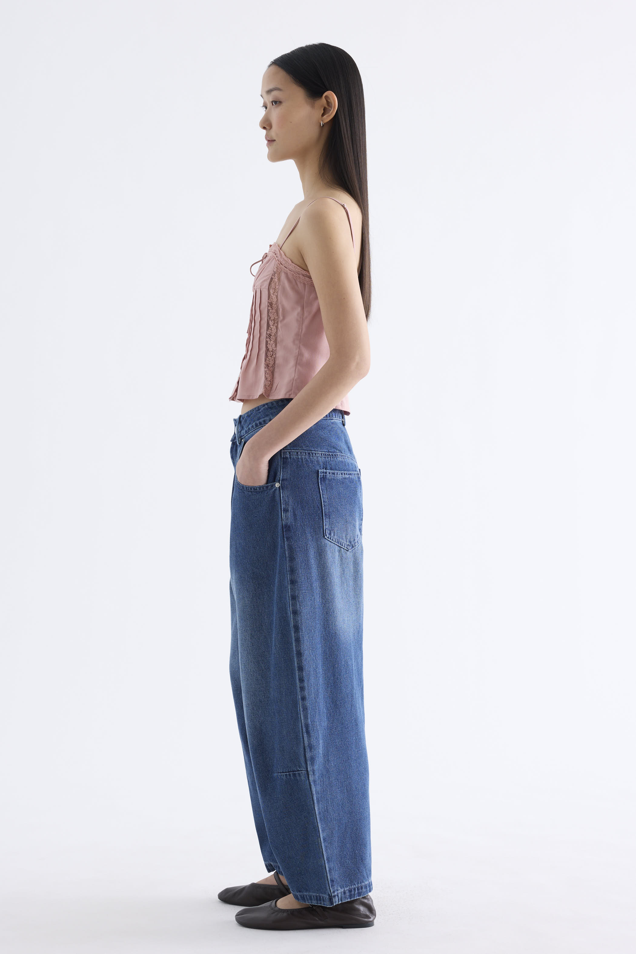 Always cool. Made from light and non-stretch Tencel, this sleeveless button-down top features a drawstring lace-trimmed neckline with a front tie-strap, slim adjustable shoulder straps and a pleated bodice with lace panels. Fits slim and slightly cropped.