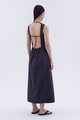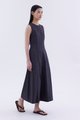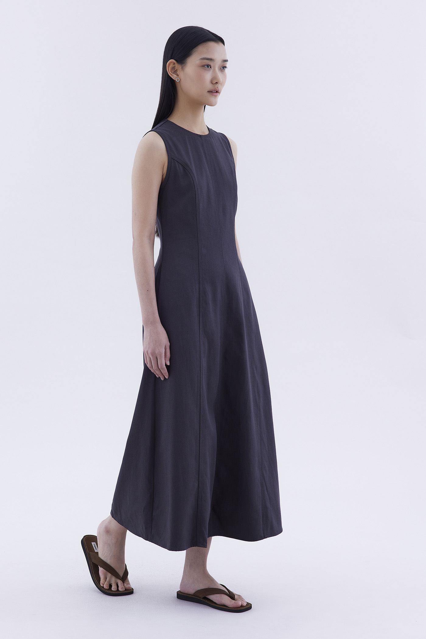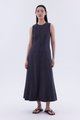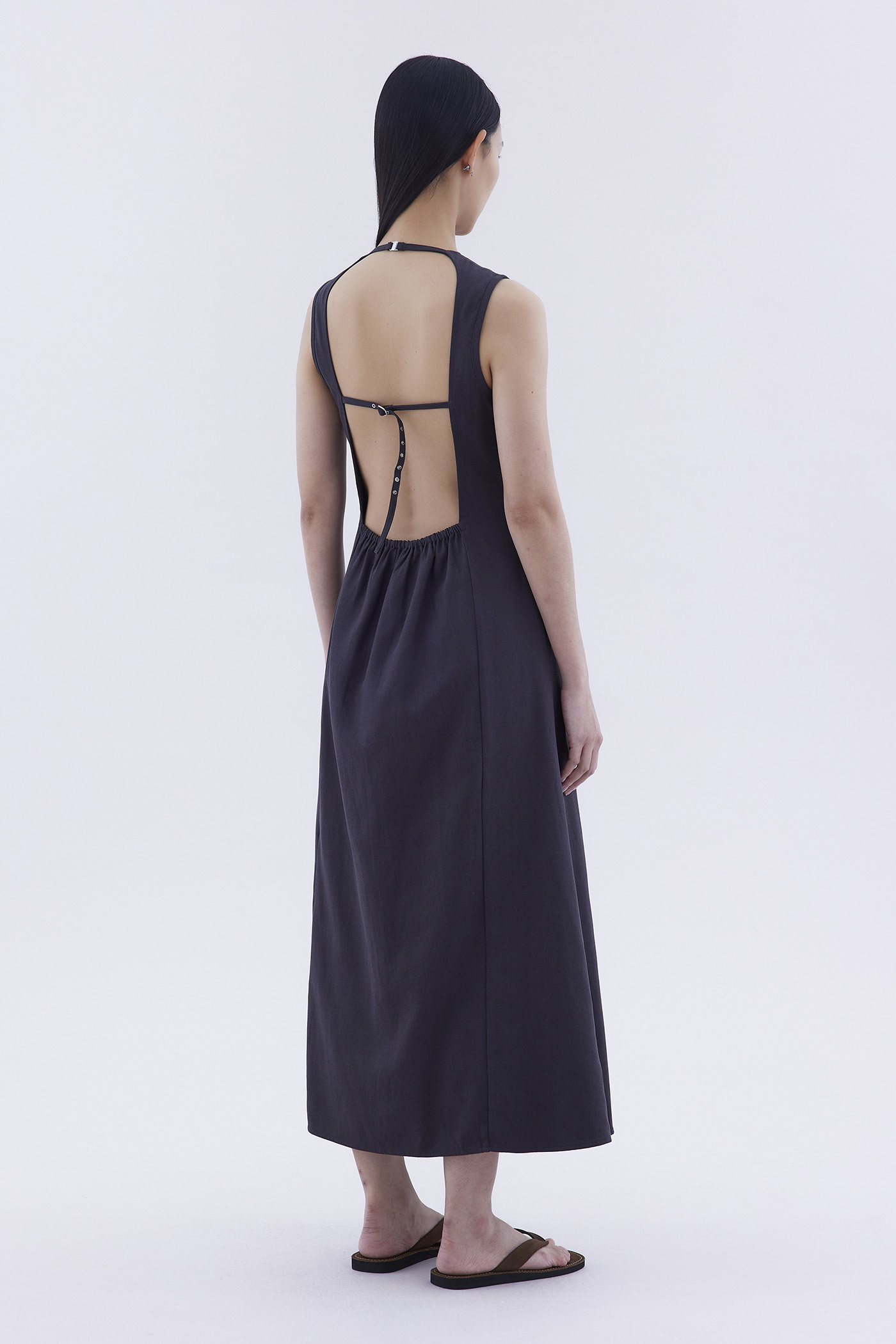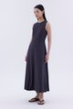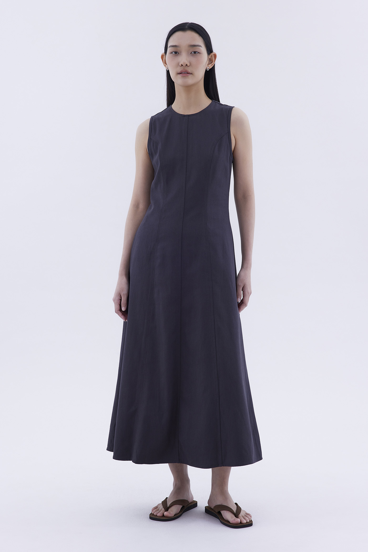 Good from every angle. Made from softly structured fabric, this sleeveless maxi dress features a round neckline, panelled construction and an elasticated back opening with connecting straps. Worn in a slim fit.