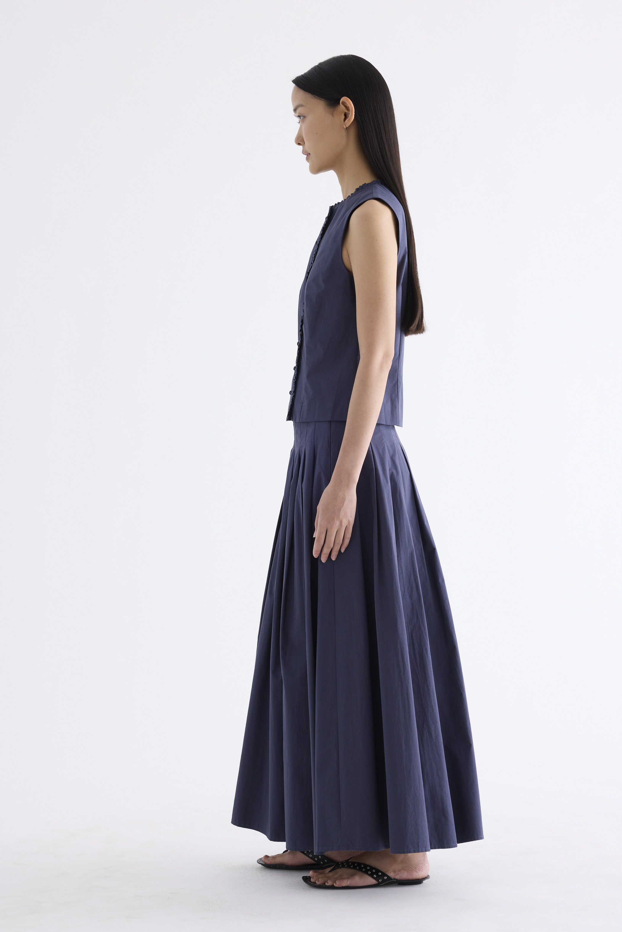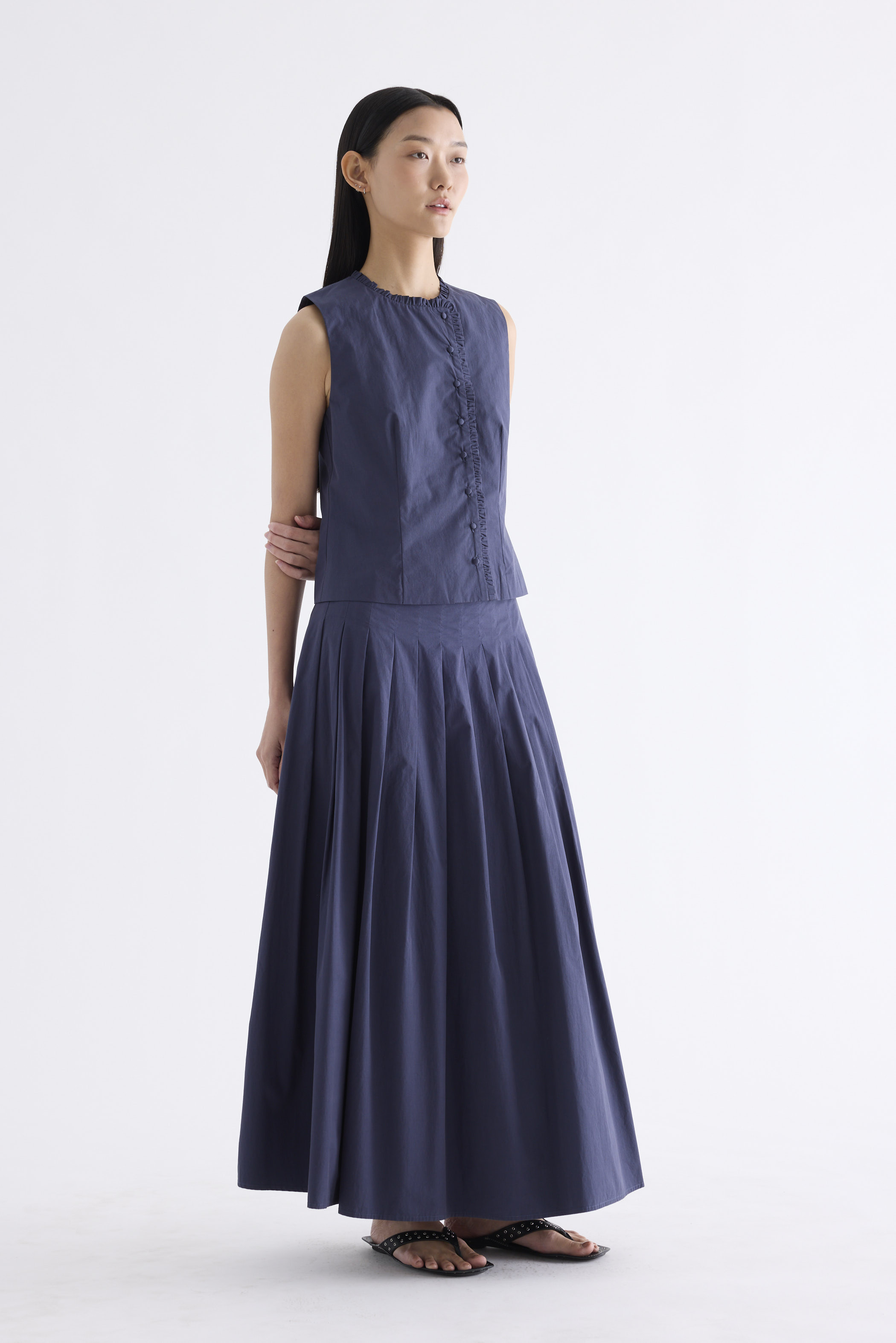 Pleats please. Made from smooth and softly structured cotton, this maxi skirt features pleats and a side zip closure. Worn in a relaxed fit.