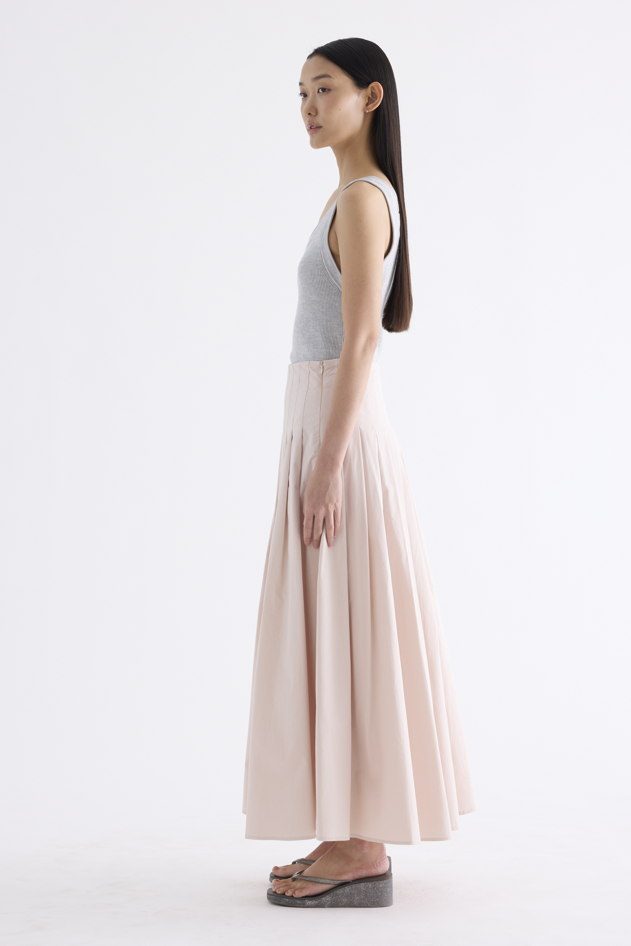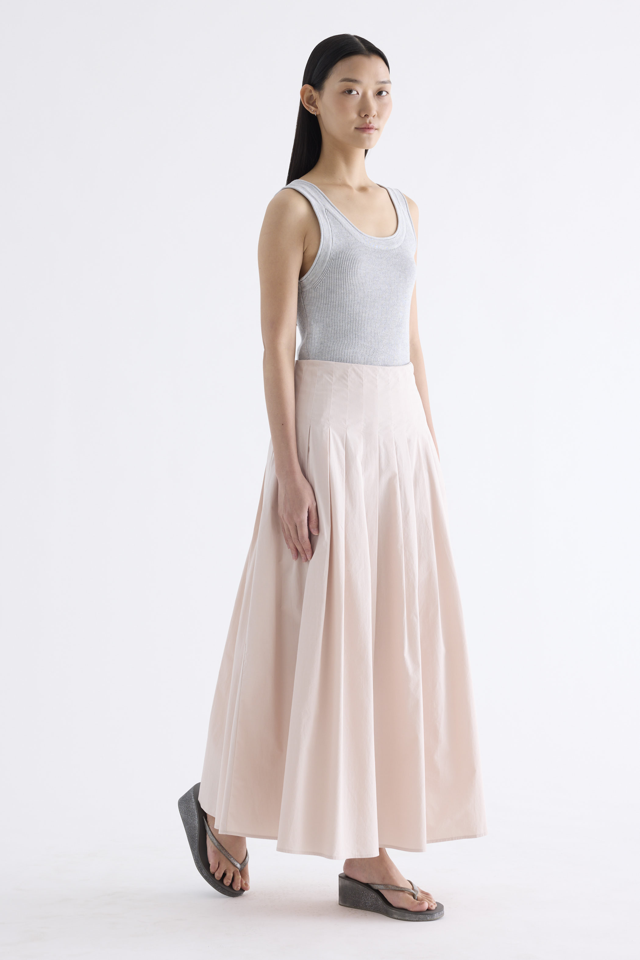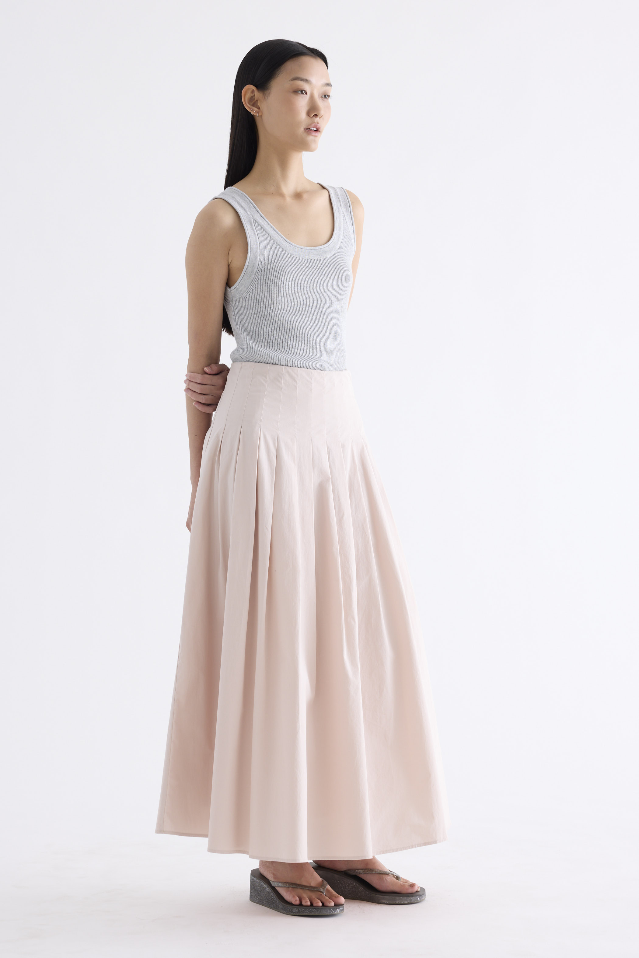 Pleats please. Made from smooth and softly structured cotton, this maxi skirt features pleats and a side zip closure. Worn in a relaxed fit.