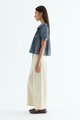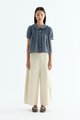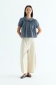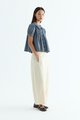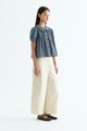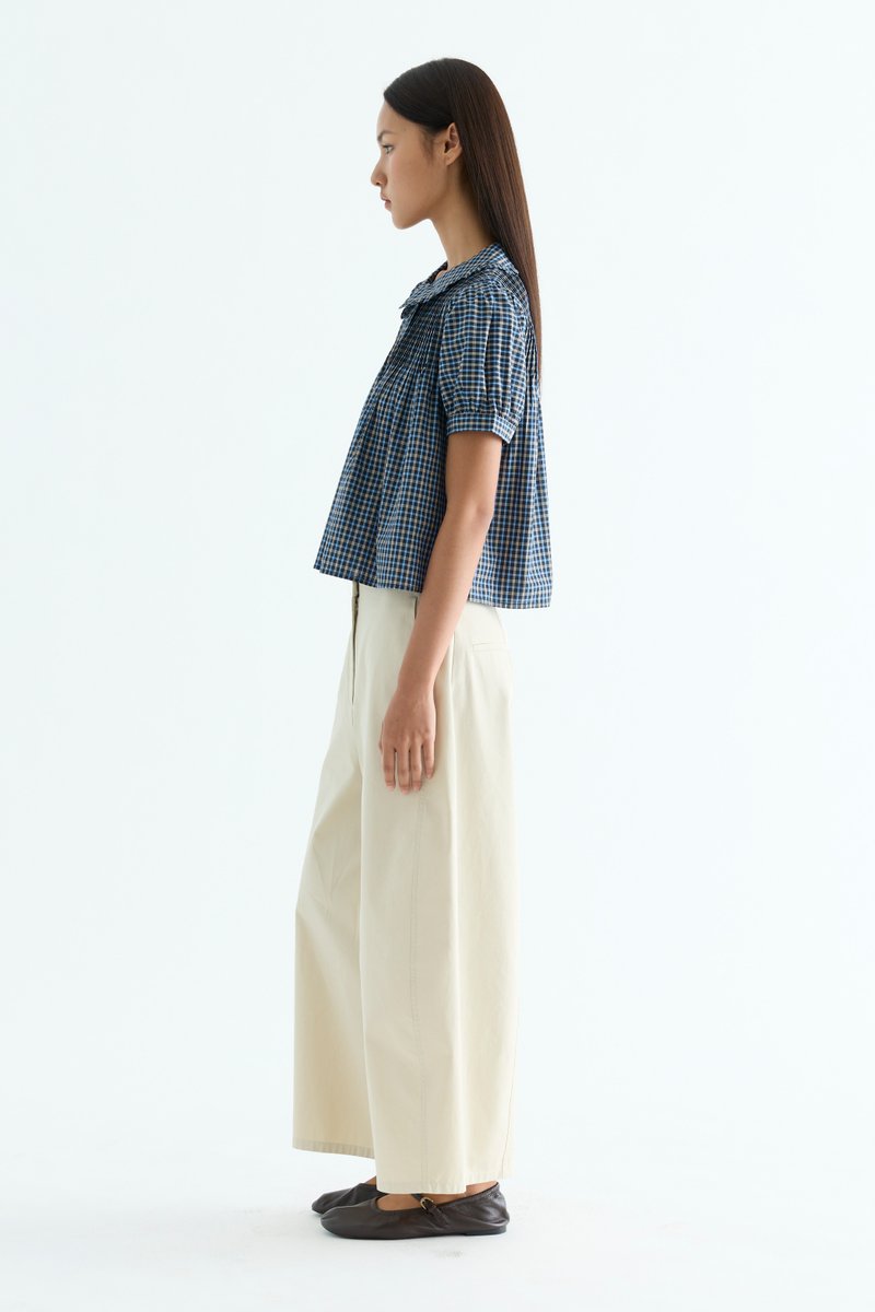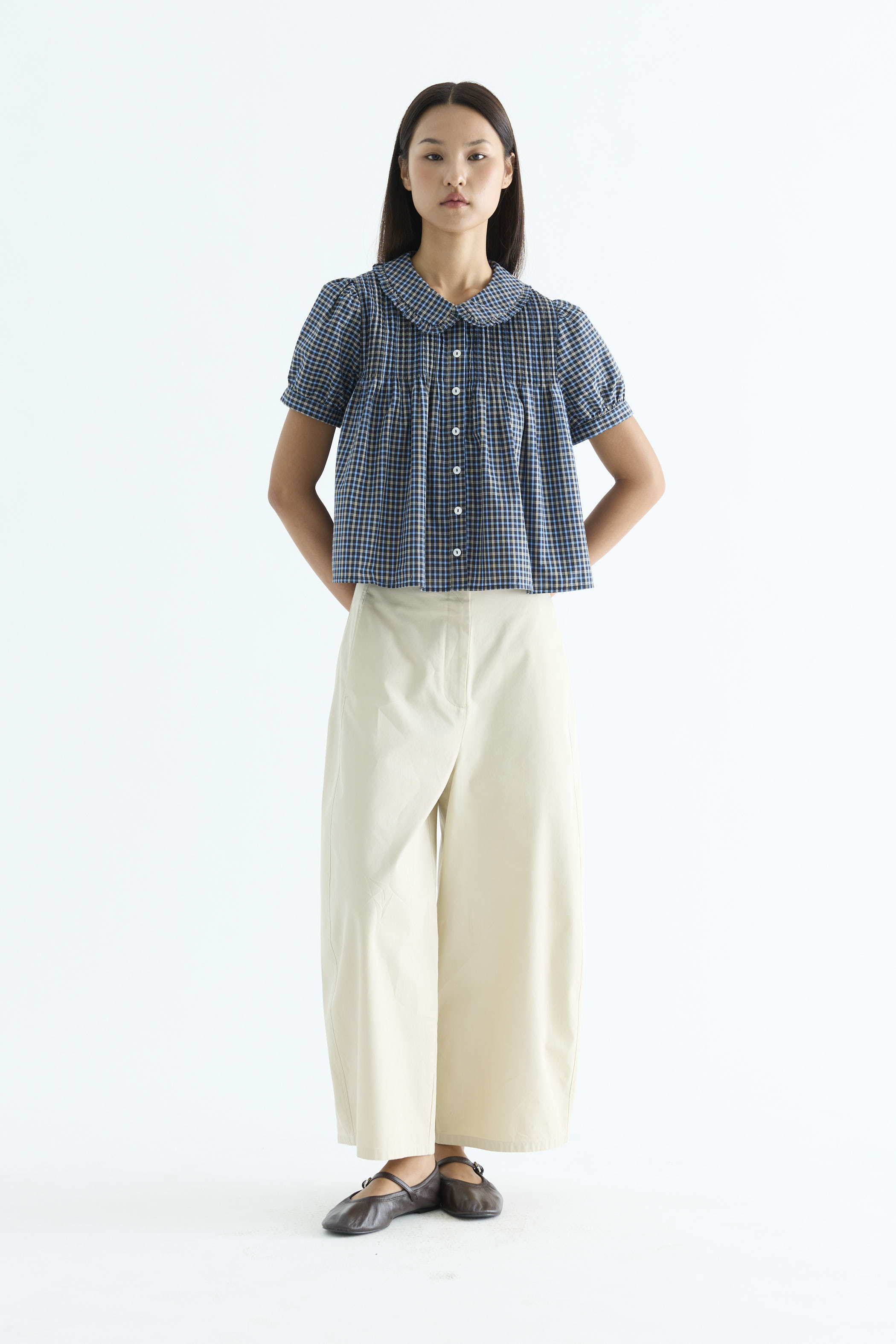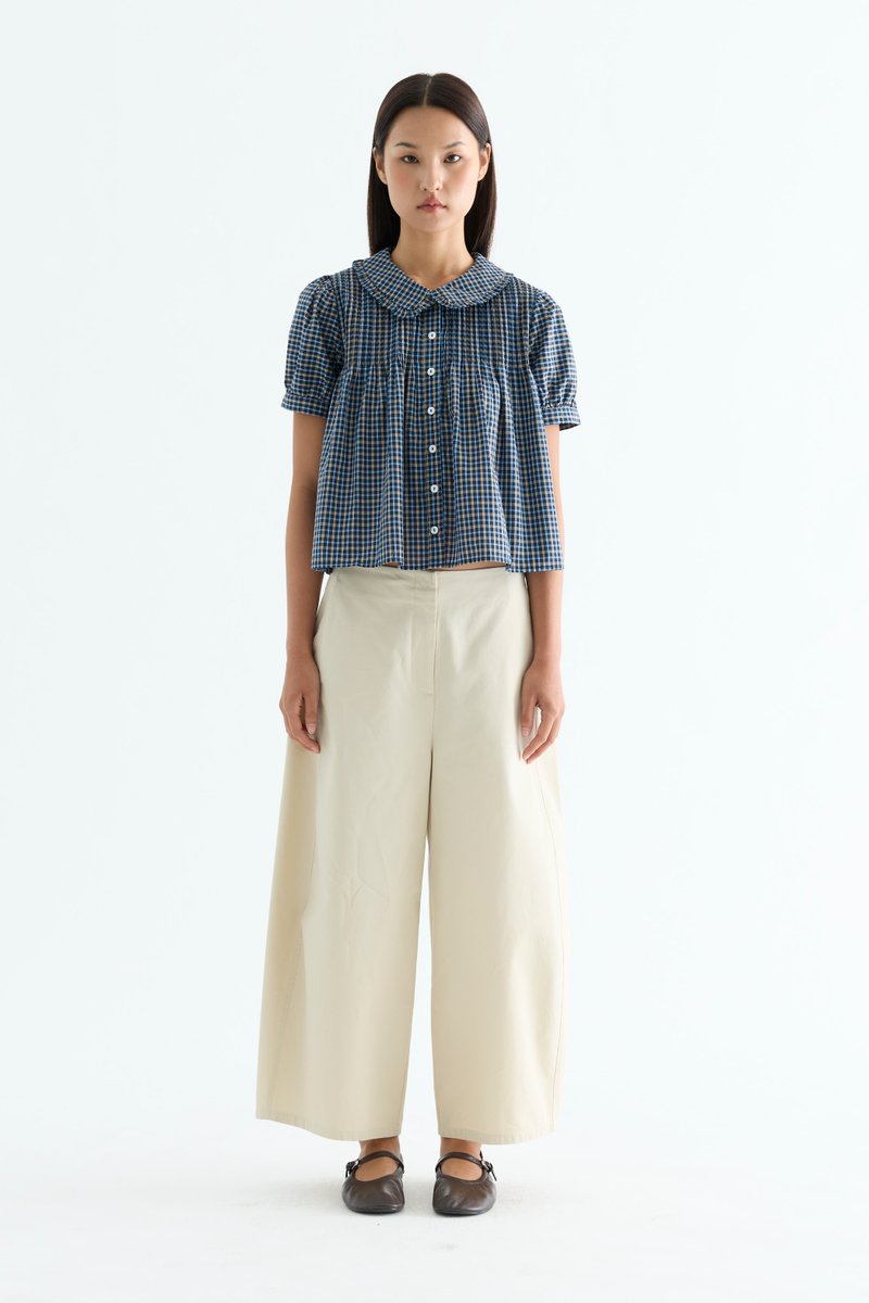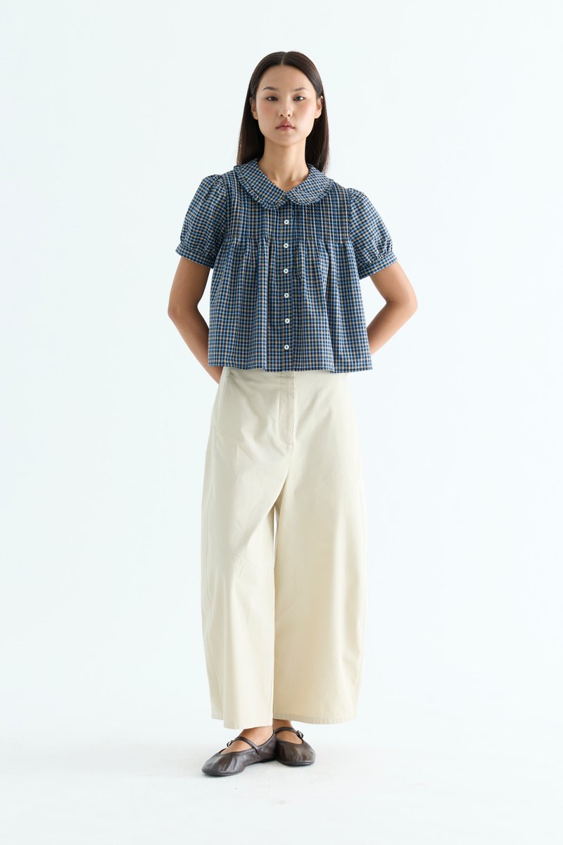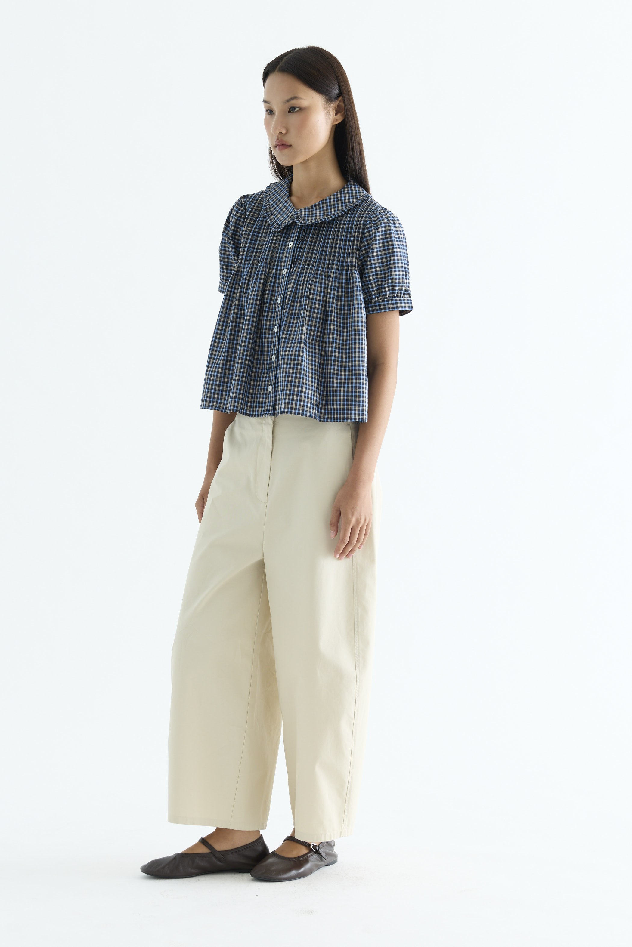 Volume up. Made from crisp and softly structured cotton, this shirt features a swishy, flared silhouette, pin-tuck pleats, a ruffle-trimmed collar, puffy short sleeves and a button-down front. Worn in a relaxed fit.