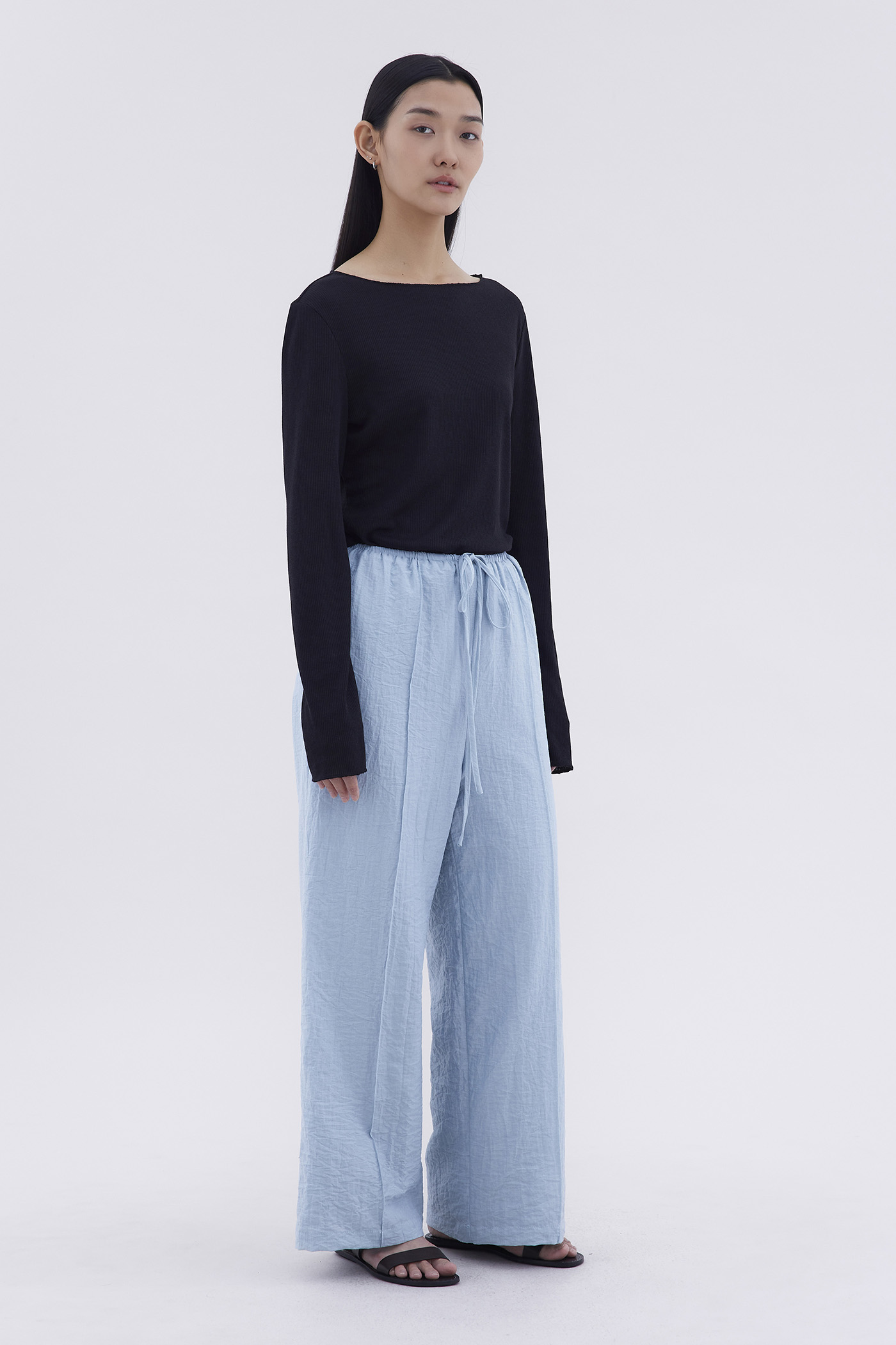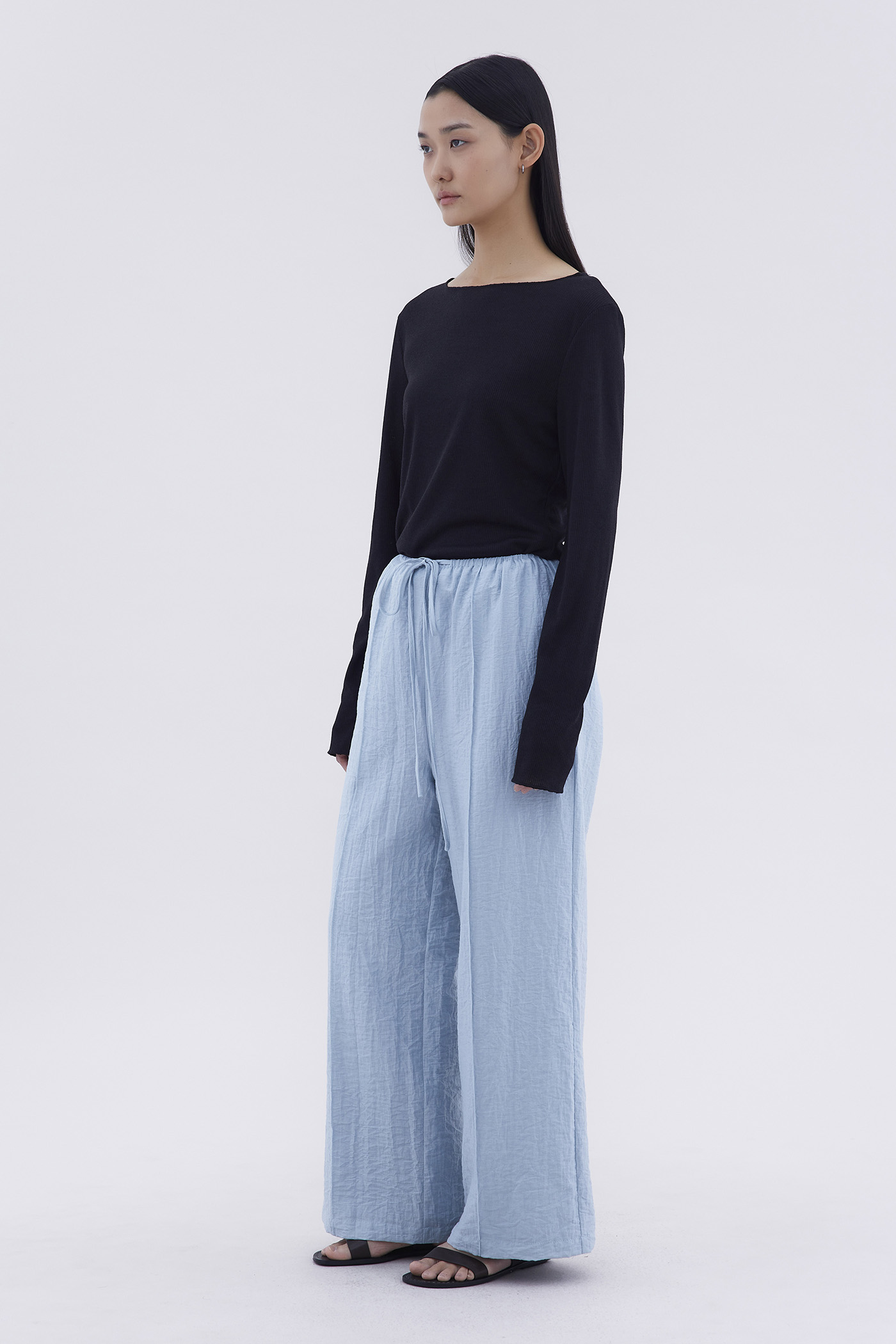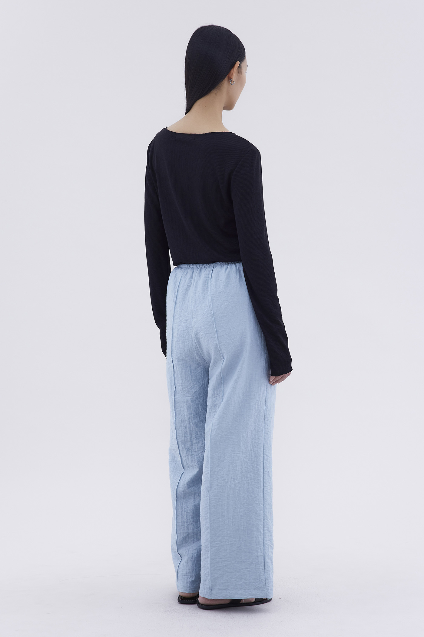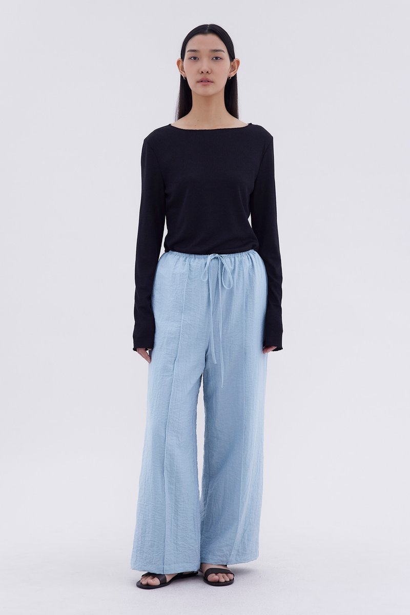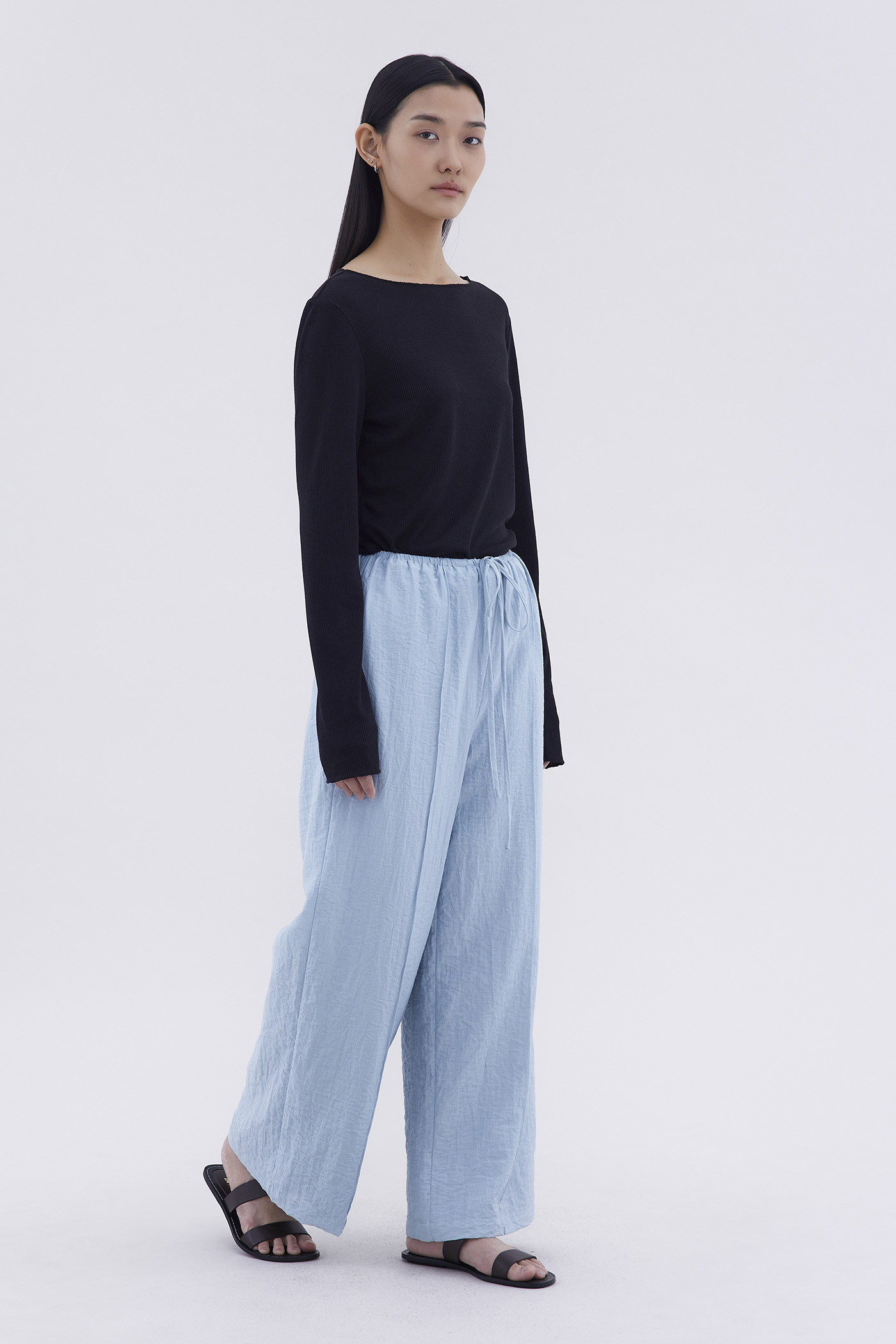 Easy does it. Made from light and textured fabric, these pants feature an elasticated drawstring waist and relaxed wide legs with a raised centre seam.