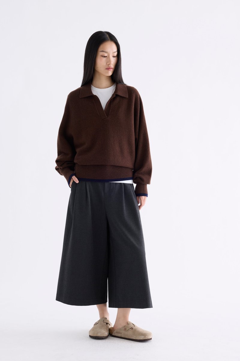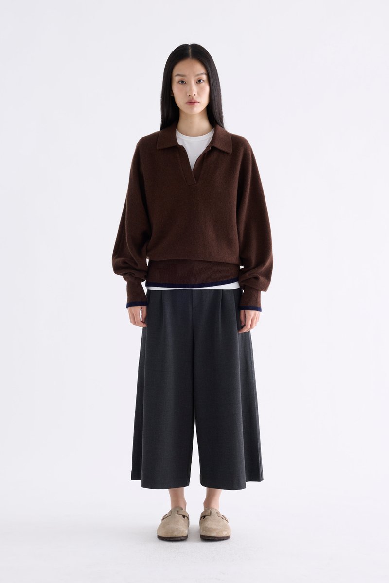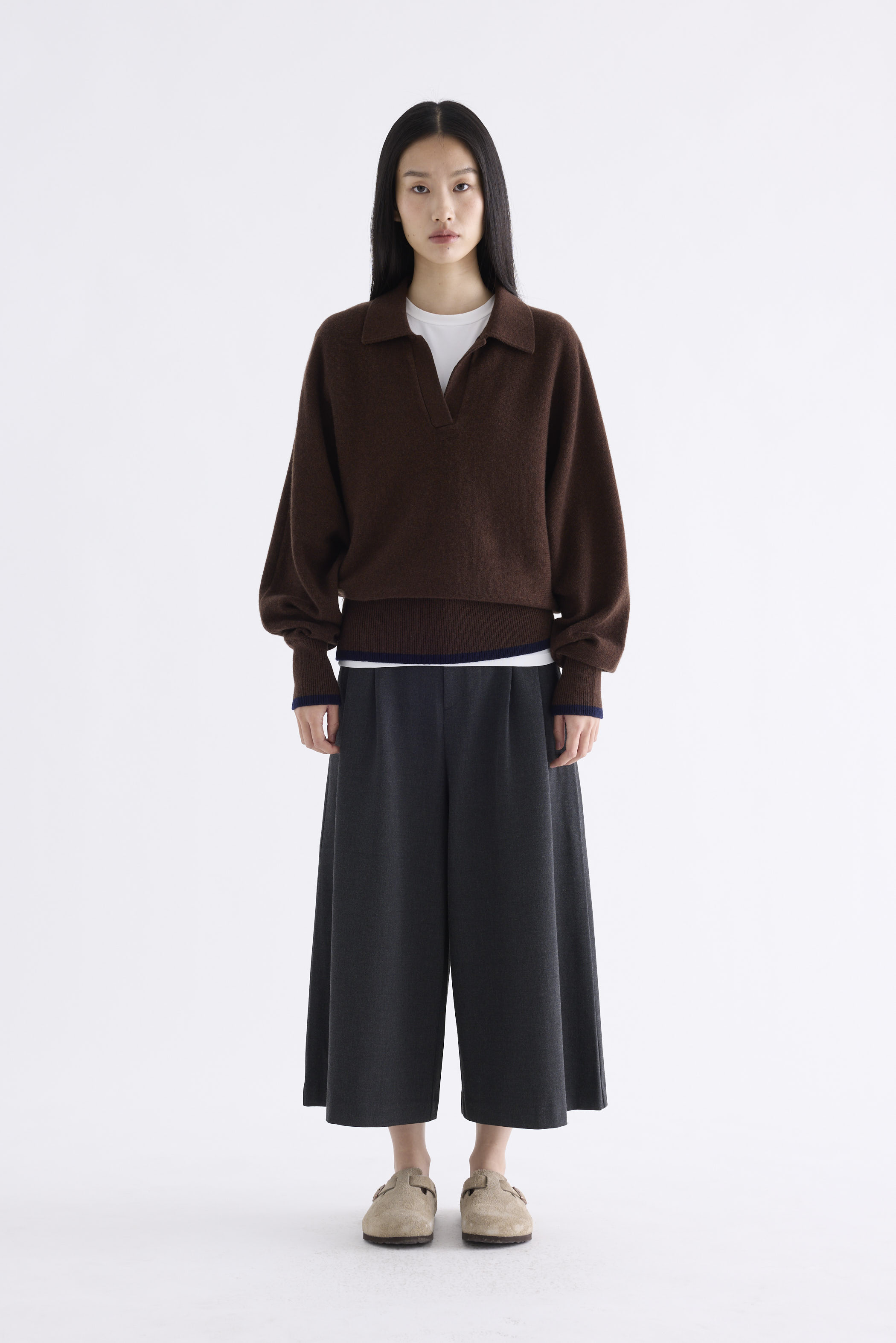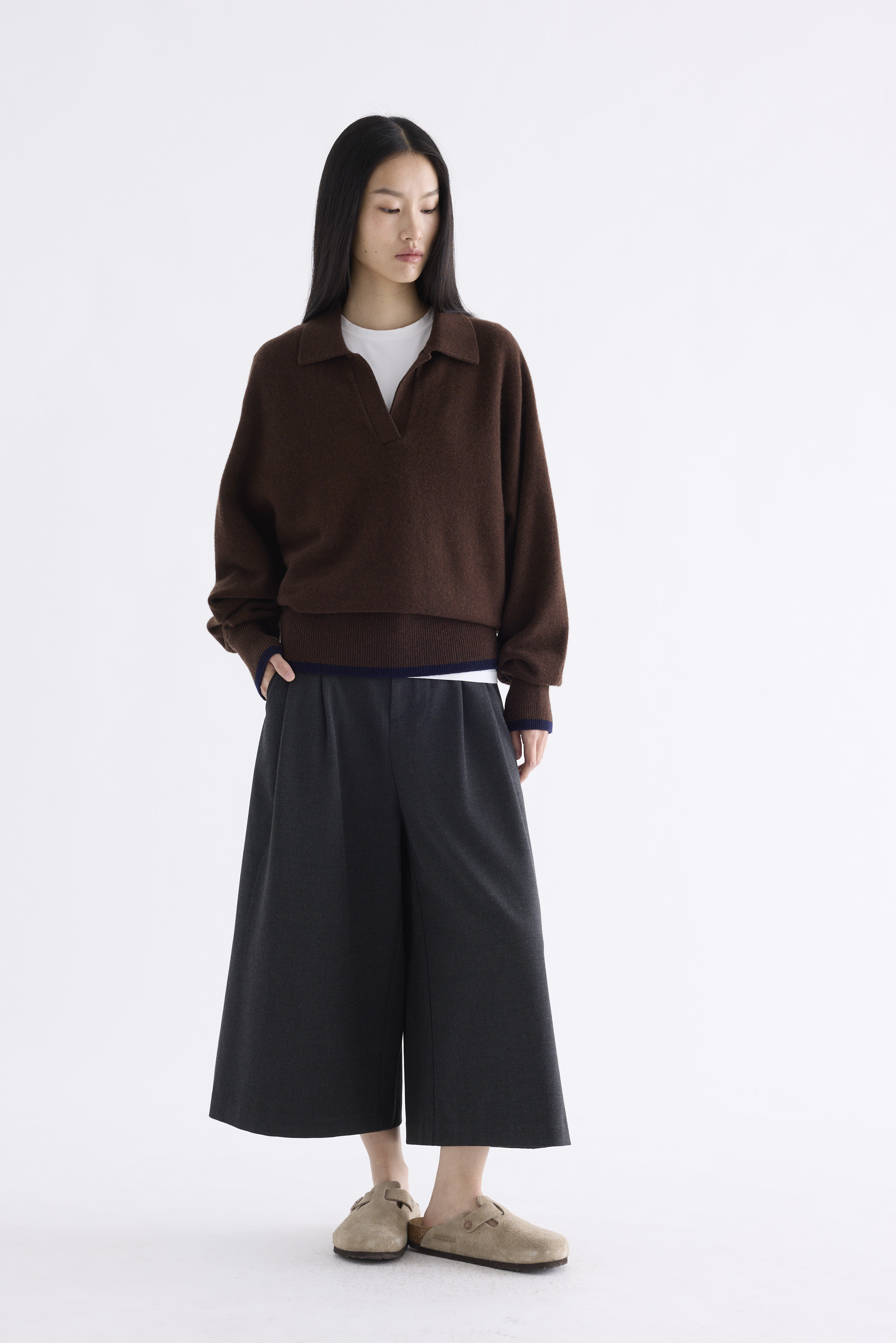 From the Postscript collection. This sweater is made from medium-weight wool with a soft and cosy finish. Features a contrast trim, V-neckline, as well as ribbed hem and cuffs. Fits oversized.