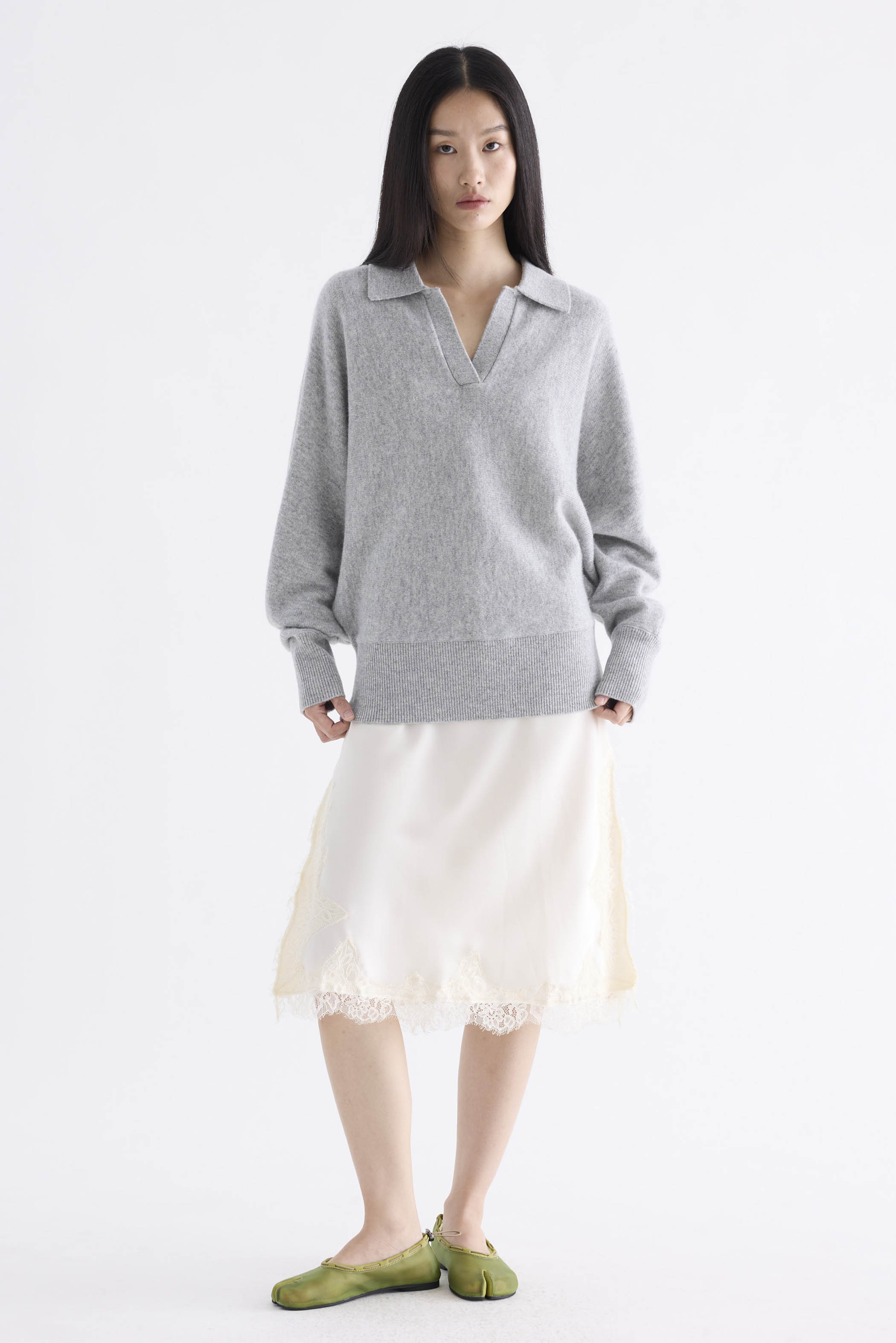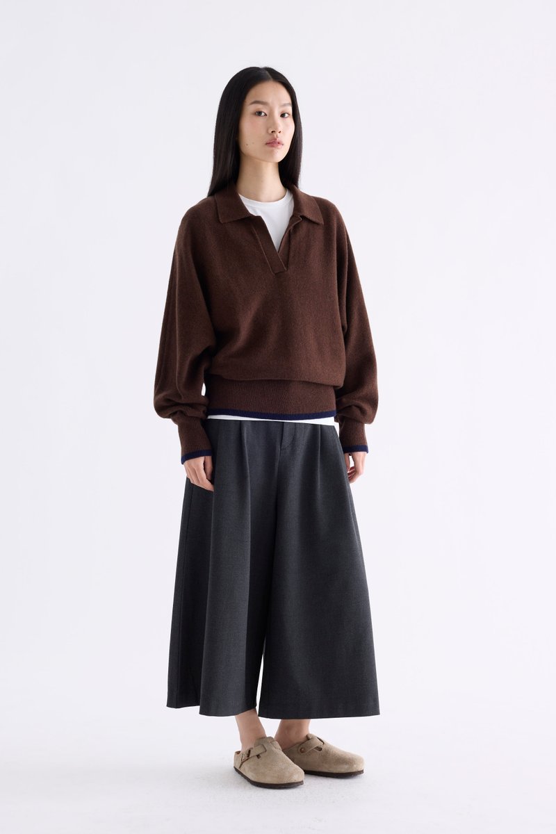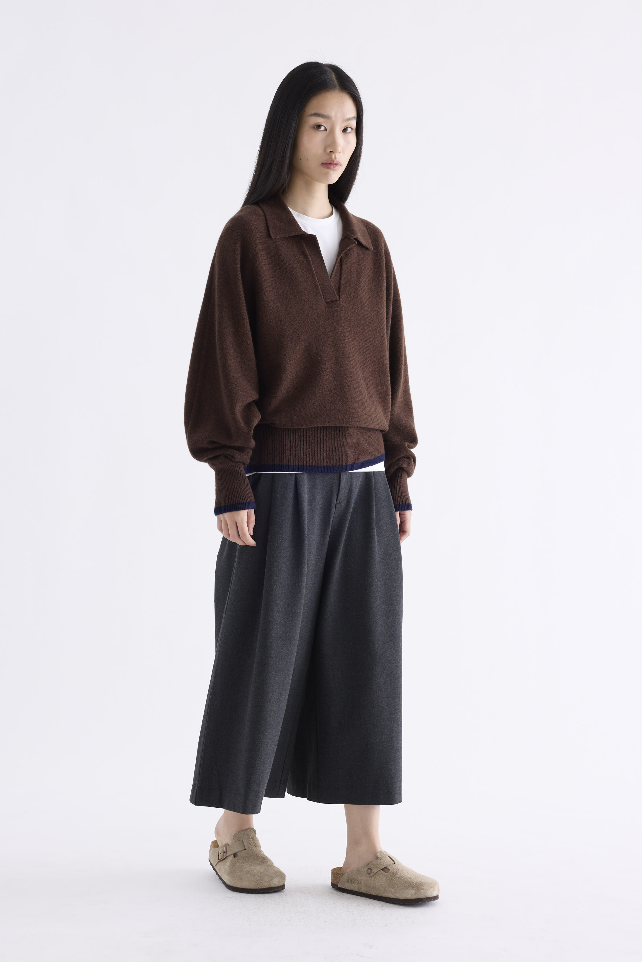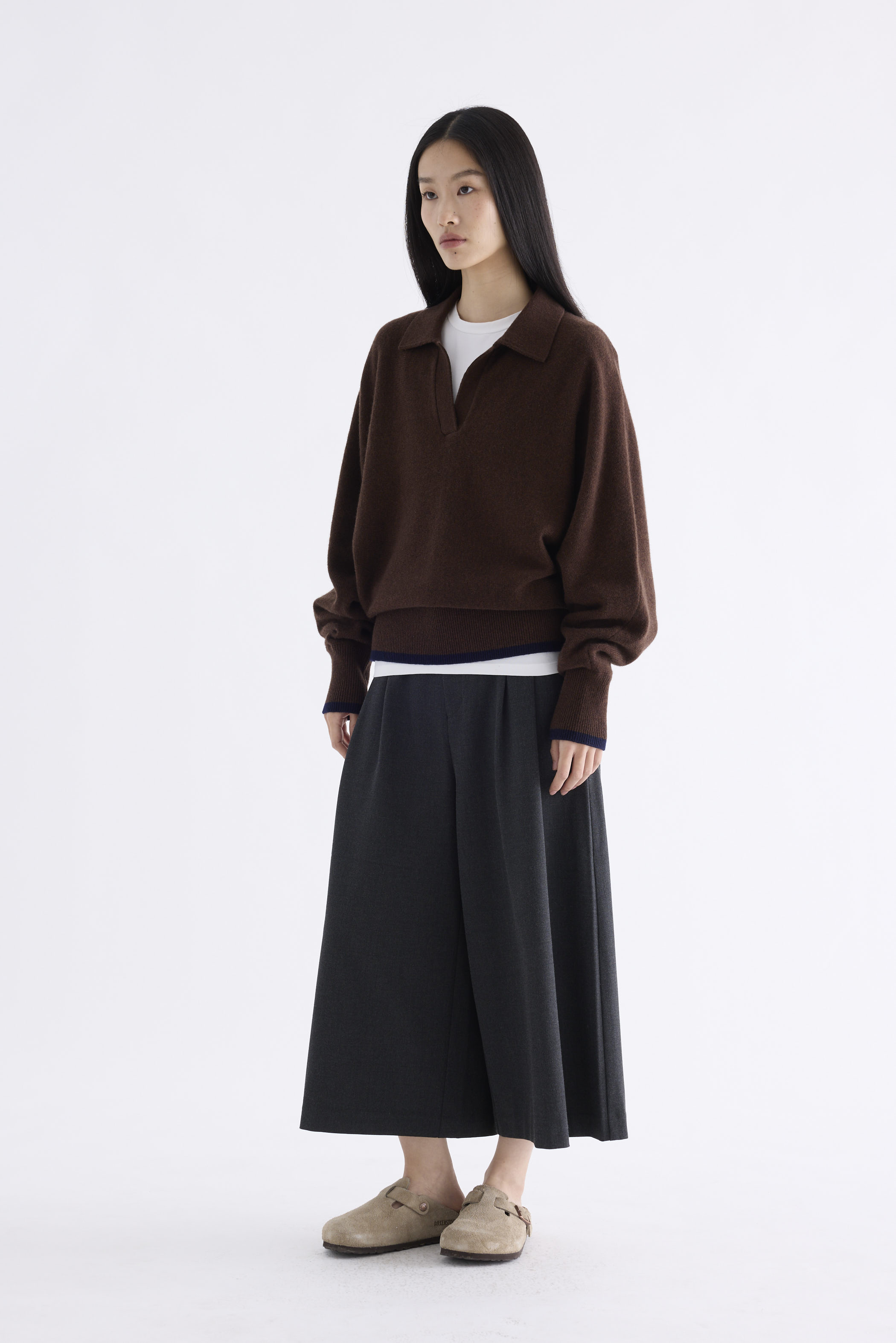 From the Postscript collection. This sweater is made from medium-weight wool with a soft and cosy finish. Features a contrast trim, V-neckline, as well as ribbed hem and cuffs. Fits oversized.