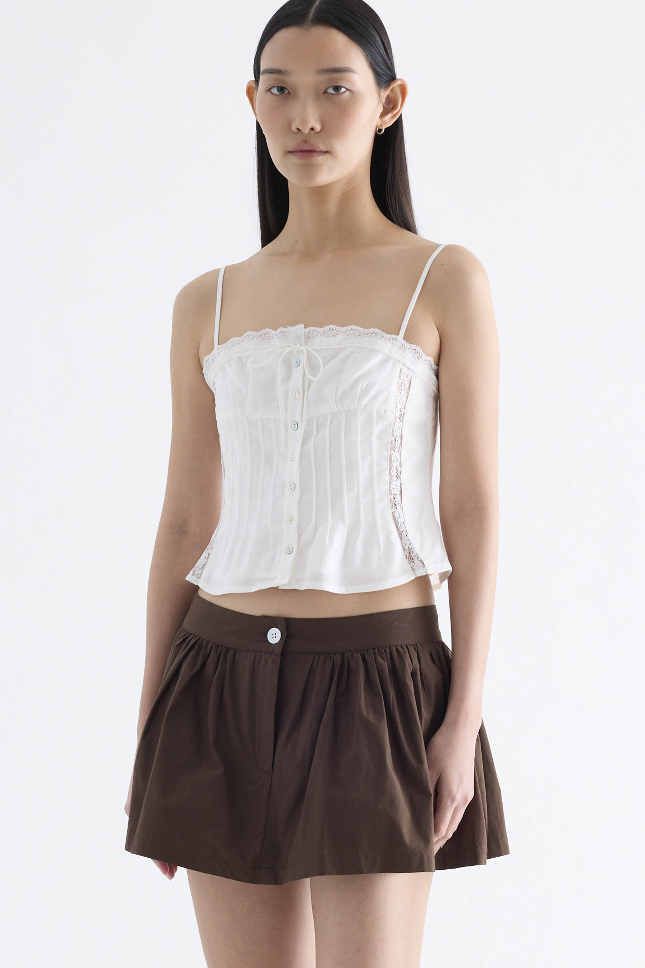 Two in one. Cut from crisp and softly structured cotton, these gathered skorts feature inner shorts, belt loops and a front zip and button closure. Worn in a relaxed fit.